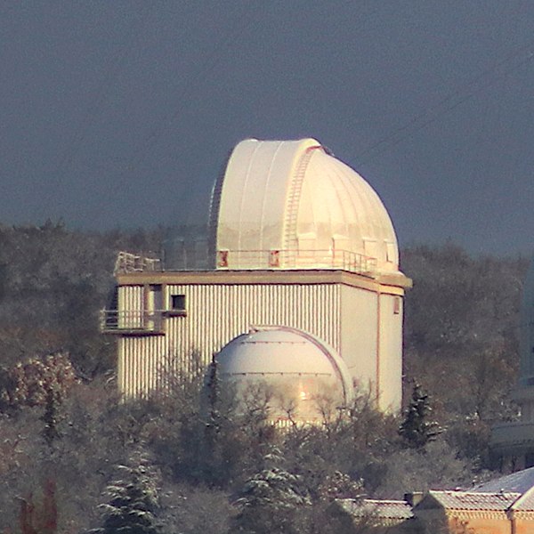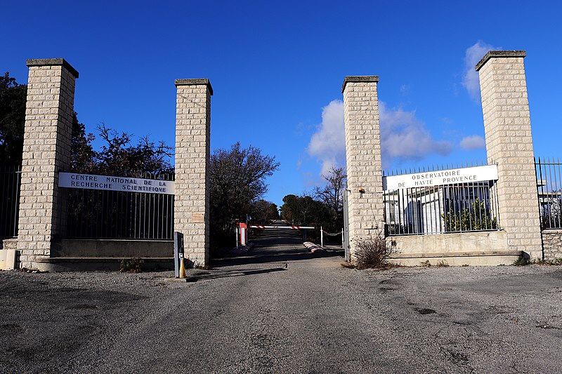 L'Observatoire de Haute‑Provence est implanté sur un plateau à 650 m, dans la commune de Saint‑Michel‑l'Observatoire, entre les monts de Vaucluse et le Luberon oriental, proche de Forcalquier et Manosque. Sa création s'inscrit dans la relance de l'astronomie française : la décision de construire l'observatoire intervient en 1936, il est fondé en 1937 et les travaux débutent en 1938. L'aménagement initial et la construction des premiers bâtiments sont dus à l'architecte Paul‑Robert Houdin, puis poursuivis par Jacques Guilbert et Louis Madeline. La Seconde Guerre mondiale ralentit le chantier ; des ouvriers locaux édifient un mur bas qui aurait visé à protéger le site et à soustraire certains travailleurs au service du travail obligatoire. La grande coupole abritant le plus grand télescope d'Europe est mise en service en 1958 ; son ossature en acier est réalisée par la Société des Forges et Ateliers du Creusot, la couverture en aluminium par la société Prouvé et les établissements STUDAL de Maxéville. Dans les années 1960 est construite la coupole du télescope de 1,52 m, destinée à alléger la charge d'observation du grand instrument. L'observatoire est partiellement inscrit au titre des monuments historiques depuis le 8 février 2017.