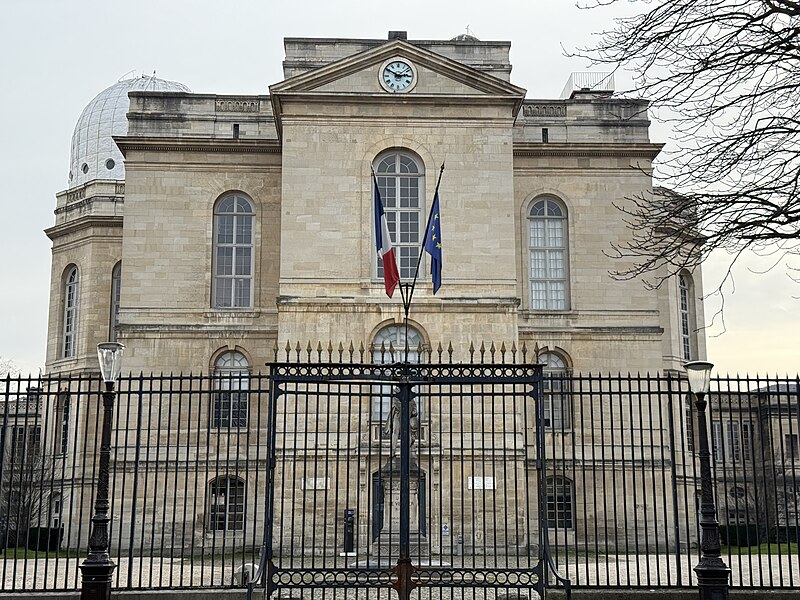 L'Observatoire de Paris a été fondé en 1667 par Colbert sous le règne de Louis XIV et construit par Claude Perrault entre 1667 et 1672. Les astronomes tracèrent alors l'orientation nord-sud du domaine, imposant cet axe comme ligne de symétrie du bâtiment ; il devint le méridien de Paris. L'édifice, vaste rectangle flanqué de deux tours octogonales, présente quatre faces correspondant aux points cardinaux, s'élève sur trois niveaux au nord et deux au sud et se termine par une terrasse. La façade sud est ornée de sculptures de Temporiti et des bâtiments scientifiques ajoutés dans les jardins aux XIXe et XXe siècles abritent plusieurs instruments. Parmi eux figurent le pavillon de la Carte du Ciel (1870 et 1892), le pavillon du grand équatorial (1889), la salle Baillaud et le pavillon de la méridienne réalisé par Jean Prouvé en 1951 sur un projet de l'architecte Remondet. L'observatoire est implanté sur trois sites, à Paris (avenue de l'Observatoire), Meudon et Nançay, et il est le plus ancien observatoire du monde toujours en fonctionnement. Né du projet de 1667 visant à doter la France d'un observatoire astronomique équipé pour établir des cartes de navigation, il complétait l'Académie des sciences fondée en 1666 et a favorisé en France le développement de la géodésie, de la cartographie et de la météorologie. En 1927, le site de Meudon fut rattaché administrativement à l'Observatoire de Paris. Établissement public de recherche et d'enseignement, l'Observatoire a le statut de grand établissement, relève du ministère de l'Enseignement supérieur et de la Recherche, est membre fondateur de l'université PSL et constitue le principal pôle national de recherche en astronomie, tout en dispensant un enseignement supérieur de haut niveau. Il fait partie des observatoires des sciences de l'Univers, groupement de laboratoires associés à l'Institut national des sciences de l'Univers du CNRS, et accueille des unités et laboratoires en tutelle secondaire. Sous la direction des Cassini, la première phase de l'institution connut une longue continuité : la famille Cassini dirigea l'observatoire pendant les cent vingt-cinq premières années, avec Giovanni Domenico Cassini à l'origine de son essor. Après la Révolution, l'observatoire connut d'importantes réorganisations : le Bureau des longitudes fut institué et reçut la mission de développer l'astronomie, l'établissement reçut des instruments provenant des collections royales et participa à la normalisation des mesures, le mètre et le kilogramme, sous la direction de Lalande. Au XIXe siècle, François Arago réaménagea la tour est et fit installer une grande lunette équatoriale dont la coupole principale de Paris fut construite à partir de 1846 ; plus tard, Urbain Le Verrier développa la météorologie et, malgré des tensions internes, étendit l'influence du poste de directeur. Jules Janssen fonda à Meudon l'Observatoire d'Astronomie Physique, y fit réaliser la Grande Coupole et la Grande Lunette qui devinrent des références pour l'étude du Soleil. Sous la direction d'Ernest Mouchez, l'Observatoire participa en 1887 au projet international de la Carte du Ciel, rénova ses instruments et organisa l'ouverture au public ainsi que l'unification de l'heure sur le méridien de Paris. Au XXe siècle, des directeurs comme Benjamin Baillaud, Henri Deslandres, Ernest Esclangon — auteur de la première horloge parlante mondiale présentée en 1932 — puis André Danjon contribuèrent successivement à la modernisation des équipements, à l'expansion des personnels et au rattachement d'autres sites comme Nançay en 1953. Aujourd'hui, l'Observatoire remplit trois missions : la recherche, l'enseignement supérieur et la diffusion des savoirs vers le grand public. Ses recherches couvrent l'ensemble des champs de l'astronomie et de l'astrophysique contemporaines, depuis le Soleil et ses relations avec la Terre jusqu'aux planètes et exoplanètes, la formation des étoiles, le milieu interstellaire, les galaxies, les astroparticules, la cosmologie, la métrologie de l'espace et du temps, ainsi que l'histoire et la philosophie des sciences. Les équipes conçoivent et réalisent des instruments pour télescopes au sol ou sondes spatiales, organisent des campagnes d'observation, traitent et analysent des données, développent des bases de données et réalisent des simulations numériques. Les chercheurs sont regroupés en sept unités de recherche (GEPI, IMCCE, LERMA, LESIA, LUTH, SYRTE et l'USN de Nançay) et l'Observatoire assure la tutelle secondaire de laboratoires associés tels que l'OSUC, l'APC et le LPP. L'enseignement va du master au doctorat avec des formations professionnelles et de recherche, une école doctorale, des diplômes universitaires en présentiel ou à distance et des actions de formation des enseignants, organisés par l'Unité formation-enseignement. La communication vers le grand public s'appuie sur expositions itinérantes, visites des trois sites, parrainages scolaires, journées portes ouvertes, parcours comme le Système Solaire de Meudon et des manifestations publiques d'observation. L'observatoire conserve un riche patrimoine instrumentologique : à Paris la Coupole Arago abrite une grande lunette équatoriale historique de 38 cm, un astrographe conçu pour la Carte du Ciel occupa autrefois une coupole et les instruments méridiens ont été logés sous un abri conçu par Jean Prouvé en 1951. À Meudon, la Grande Lunette, composée d'un objectif visuel de 83 cm et d'un objectif photographique de 62 cm, repose sous une coupole de 18,30 mètres, tandis que d'autres installations comprennent le télescope de 1 m, la Table équatoriale et des instruments solaires comme le spectrohéliographe et la tour solaire. Des instruments modernes et des démonstrateurs technologiques, comme le prototype Schwarzschild-Couder SST-GATE destiné à l'astrophysique des rayons Ch
