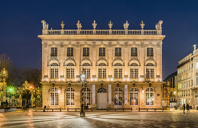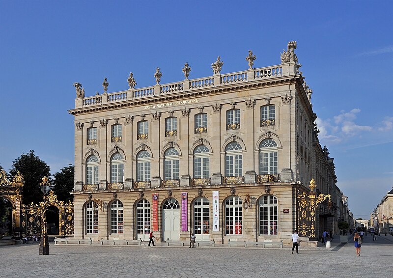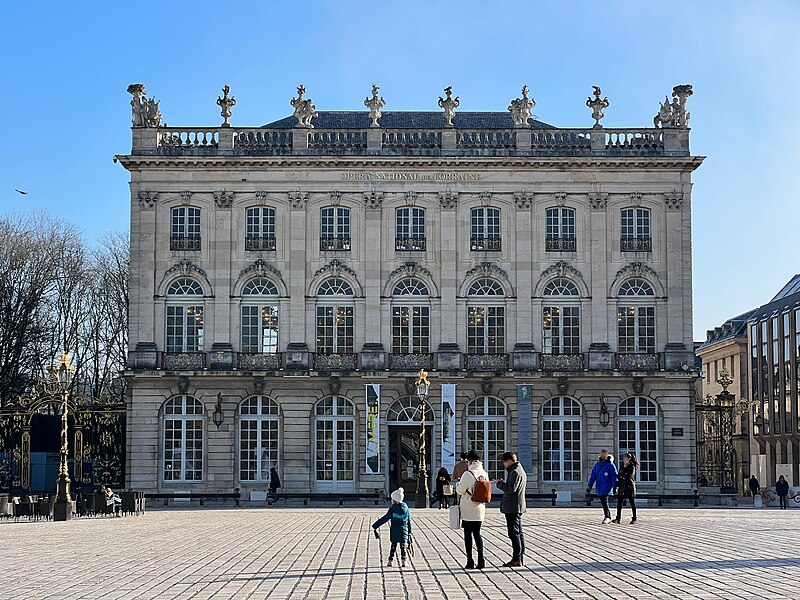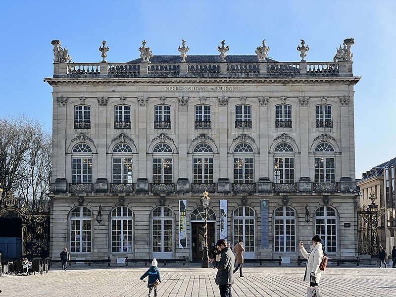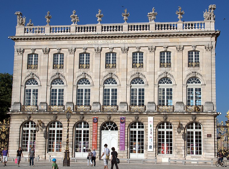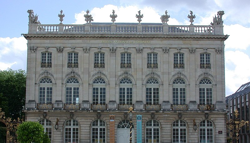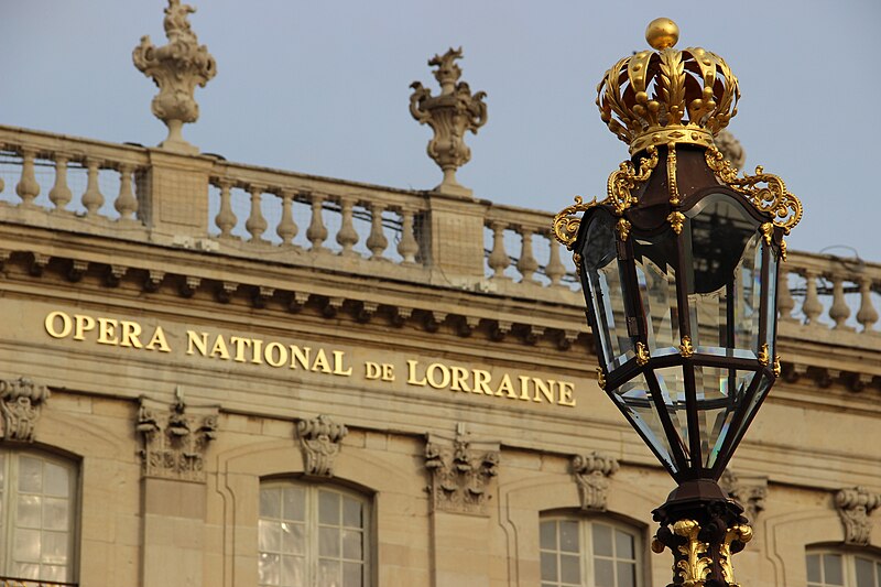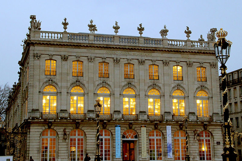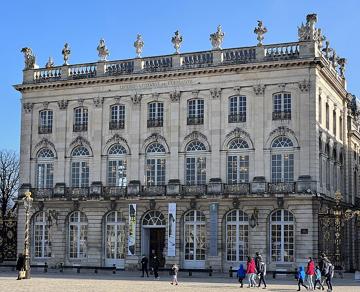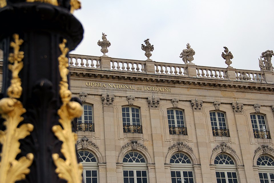 L'Opéra‑théâtre de Nancy, situé place Stanislas, occupe un immeuble élevé au milieu du XVIIIe siècle — l'immeuble de la place Stanislas érigé en 1753 par Jean‑François de La Borde et le théâtre de la Comédie construit sous Stanislas Leszczynski en 1755. Le théâtre ancien fut entièrement détruit par un incendie survenu après une répétition de l'opéra Mignon dans la nuit du 4 au 5 octobre 1906. L'immeuble a connu diverses affectations avant de devenir un opéra au début du XXe siècle. Reconstruit de 1909 à 1919 par l'architecte Joseph Hornecker, le nouvel édifice associe une salle à la française, une scène à l'italienne et une machinerie à l'allemande, conçues avec les techniques modernes de l'électricité et du béton. La façade conservée appartient à l'ancien bâtiment ; l'ossature en béton est masquée par un décor plaqué inspiré de l'Opéra Garnier et recouverte de carton‑pierre. L'emploi du béton a permis de soutenir les balcons sans colonnes, réduisant ainsi le nombre de places aveugles. La salle, unifiée par un décor en rouge, or et blanc orné de stucs et de statues, offre 1 050 places réparties entre parterre avec loges d'orchestre, balcon, deux galeries et poulailler, et présente un plafond dit « décollé ». La scène comprend un plateau de 21,20 m de largeur sur 13,50 m de profondeur, un cadre de scène de dix mètres de haut et des espaces de dix mètres au‑dessus et au‑dessous pour le déplacement vertical et latéral des décors ; la machinerie fonctionne principalement manuellement, seuls le rideau de fer et le rideau rouge étant électriques, et des trappes permettent des apparitions rapides. Entre la place Stanislas et la salle, le foyer du public, décoré dans un style rococo aux murs blanc cassé rehaussés d'or mat, est le lieu de rencontre du public lors des entractes. Le second foyer, appelé « bar oriental » depuis 1982 et destiné aux spectateurs des troisièmes galeries, reflète une influence orientale propre à l'Art nouveau ; il n'est ouvert au public que pour les visites guidées. Conçu dans un langage essentiellement classique malgré l'appartenance de Hornecker à l'École de Nancy, l'édifice est classé au titre des monuments historiques depuis le 26 décembre 1923. Des travaux de restauration entrepris en 1994 ont visé à restituer fidèlement l'aspect de la salle au moment de son inauguration. Le ministère de la Culture et de la Communication a attribué à l'établissement, le 1er janvier 2006, le statut d'opéra national en région. L'Opéra national de Nancy‑Lorraine parcourt l'ensemble des répertoires, de la musique ancienne à la musique contemporaine ; il dispose d'un orchestre, d'un chœur et d'un centre de formation d'apprentis, le CFA métiers des arts de la scène. L'établissement est membre de la Réunion des opéras de France (ROF), des Forces musicales, du Réseau européen pour la sensibilisation à l'opéra et à la danse (RESEO) et d'Opera Europa. À l'occasion du centenaire de l'Opéra, la Ville de Nancy a présenté une programmation et une exposition intitulée « Opéra ! Trois siècles de création à Nancy » à la galerie Poirel, et un gâteau nommé « l'Entracte » a été réalisé pour la célébration par deux étudiants du centre de formation de la chambre des métiers de Laxou. La direction générale et artistique est assurée par Matthieu Dussouillez depuis juin 2019, la direction musicale par Marta Gardolińska depuis janvier 2021. L'équipe compte environ 180 personnes, dont 66 musiciens et 28 artistes du chœur.