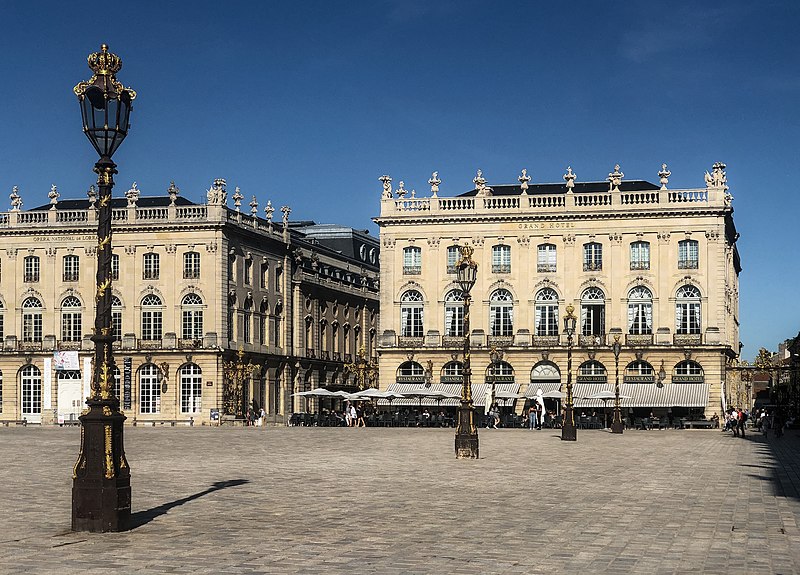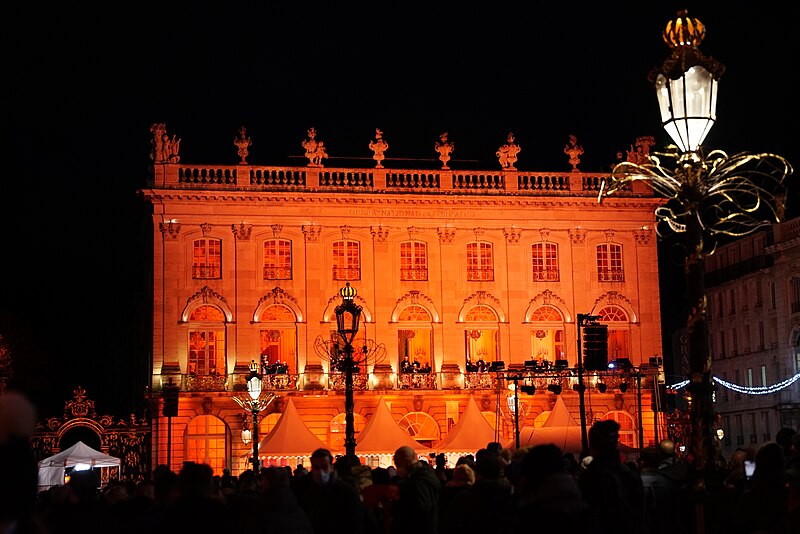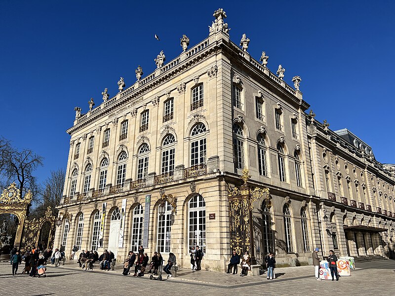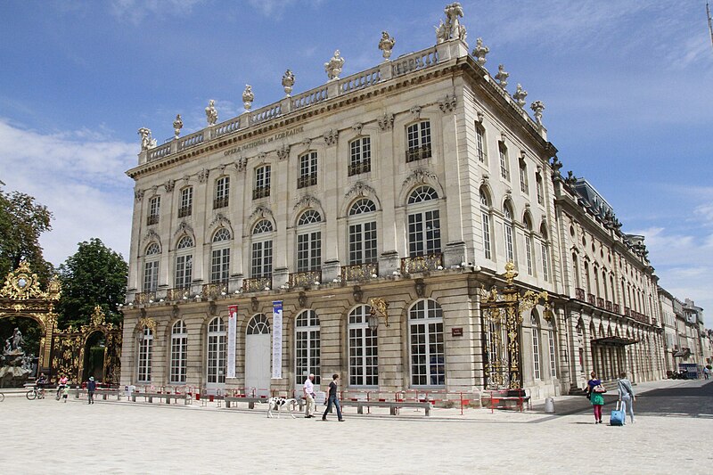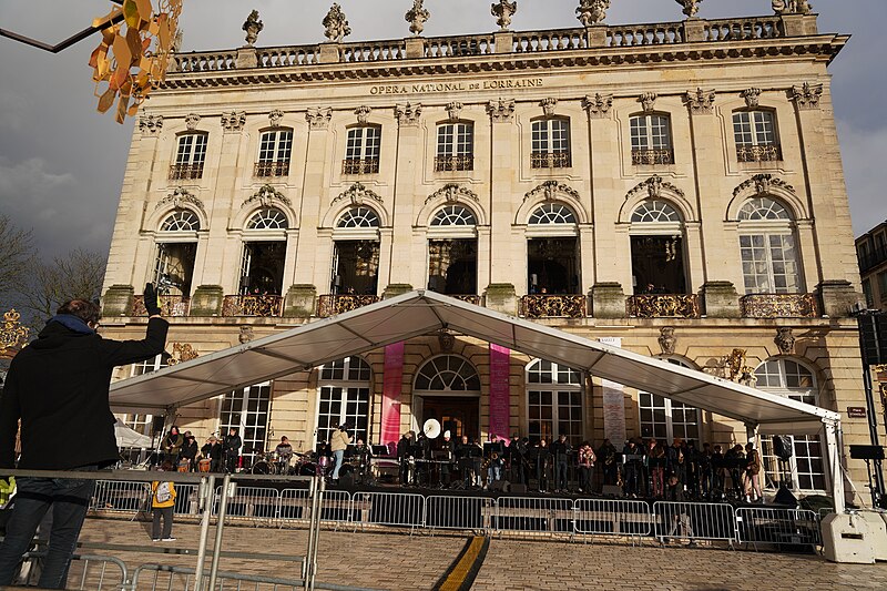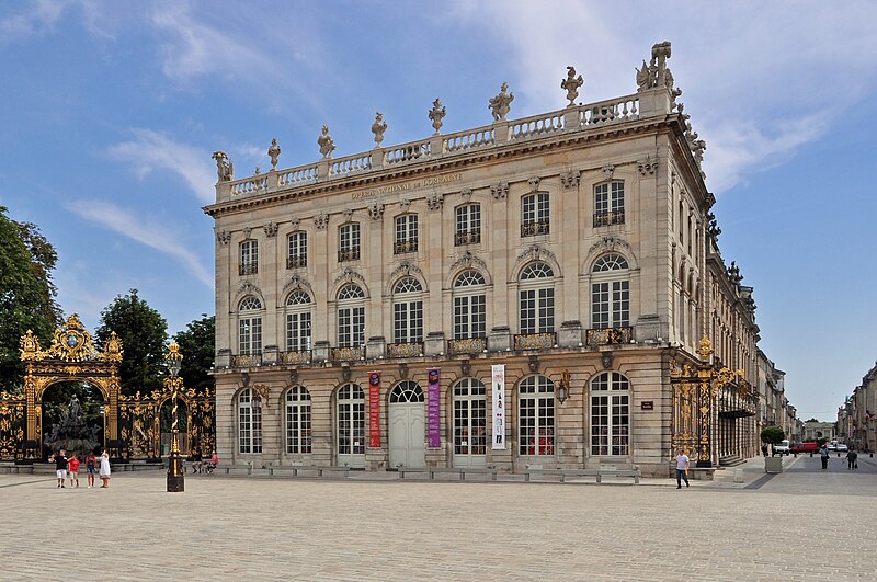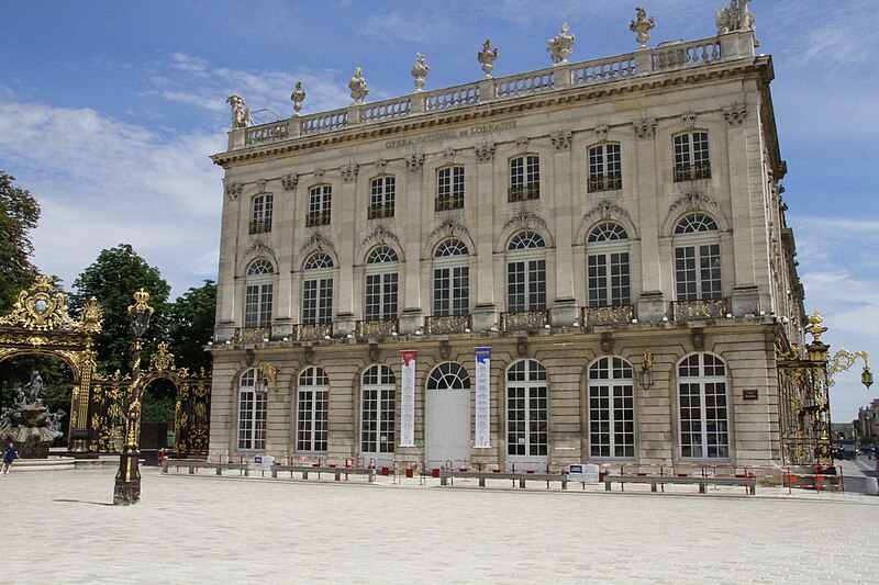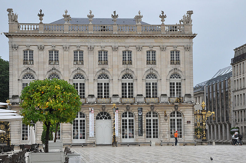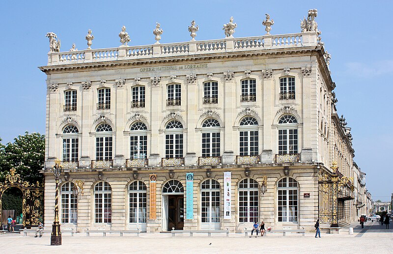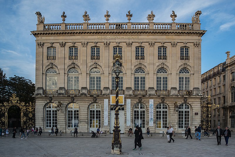 L'Opéra‑théâtre de Nancy, situé place Stanislas, occupe un immeuble élevé au milieu du XVIIIe siècle — l'immeuble de la place Stanislas érigé en 1753 par Jean‑François de La Borde et le théâtre de la Comédie construit sous Stanislas Leszczynski en 1755. Le théâtre ancien fut entièrement détruit par un incendie survenu après une répétition de l'opéra Mignon dans la nuit du 4 au 5 octobre 1906. L'immeuble a connu diverses affectations avant de devenir un opéra au début du XXe siècle. Reconstruit de 1909 à 1919 par l'architecte Joseph Hornecker, le nouvel édifice associe une salle à la française, une scène à l'italienne et une machinerie à l'allemande, conçues avec les techniques modernes de l'électricité et du béton. La façade conservée appartient à l'ancien bâtiment ; l'ossature en béton est masquée par un décor plaqué inspiré de l'Opéra Garnier et recouverte de carton‑pierre. L'emploi du béton a permis de soutenir les balcons sans colonnes, réduisant ainsi le nombre de places aveugles. La salle, unifiée par un décor en rouge, or et blanc orné de stucs et de statues, offre 1 050 places réparties entre parterre avec loges d'orchestre, balcon, deux galeries et poulailler, et présente un plafond dit « décollé ». La scène comprend un plateau de 21,20 m de largeur sur 13,50 m de profondeur, un cadre de scène de dix mètres de haut et des espaces de dix mètres au‑dessus et au‑dessous pour le déplacement vertical et latéral des décors ; la machinerie fonctionne principalement manuellement, seuls le rideau de fer et le rideau rouge étant électriques, et des trappes permettent des apparitions rapides. Entre la place Stanislas et la salle, le foyer du public, décoré dans un style rococo aux murs blanc cassé rehaussés d'or mat, est le lieu de rencontre du public lors des entractes. Le second foyer, appelé « bar oriental » depuis 1982 et destiné aux spectateurs des troisièmes galeries, reflète une influence orientale propre à l'Art nouveau ; il n'est ouvert au public que pour les visites guidées. Conçu dans un langage essentiellement classique malgré l'appartenance de Hornecker à l'École de Nancy, l'édifice est classé au titre des monuments historiques depuis le 26 décembre 1923. Des travaux de restauration entrepris en 1994 ont visé à restituer fidèlement l'aspect de la salle au moment de son inauguration. Le ministère de la Culture et de la Communication a attribué à l'établissement, le 1er janvier 2006, le statut d'opéra national en région. L'Opéra national de Nancy‑Lorraine parcourt l'ensemble des répertoires, de la musique ancienne à la musique contemporaine ; il dispose d'un orchestre, d'un chœur et d'un centre de formation d'apprentis, le CFA métiers des arts de la scène. L'établissement est membre de la Réunion des opéras de France (ROF), des Forces musicales, du Réseau européen pour la sensibilisation à l'opéra et à la danse (RESEO) et d'Opera Europa. À l'occasion du centenaire de l'Opéra, la Ville de Nancy a présenté une programmation et une exposition intitulée « Opéra ! Trois siècles de création à Nancy » à la galerie Poirel, et un gâteau nommé « l'Entracte » a été réalisé pour la célébration par deux étudiants du centre de formation de la chambre des métiers de Laxou. La direction générale et artistique est assurée par Matthieu Dussouillez depuis juin 2019, la direction musicale par Marta Gardolińska depuis janvier 2021. L'équipe compte environ 180 personnes, dont 66 musiciens et 28 artistes du chœur.