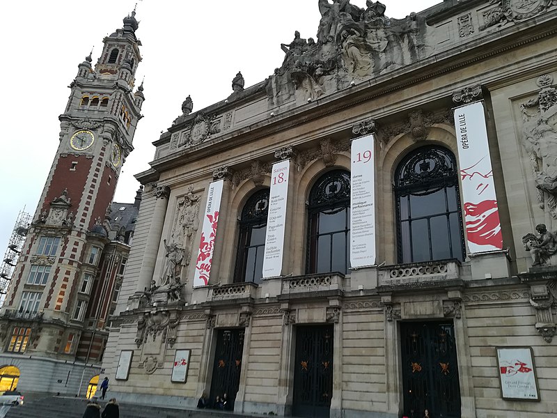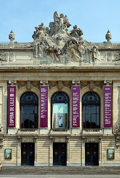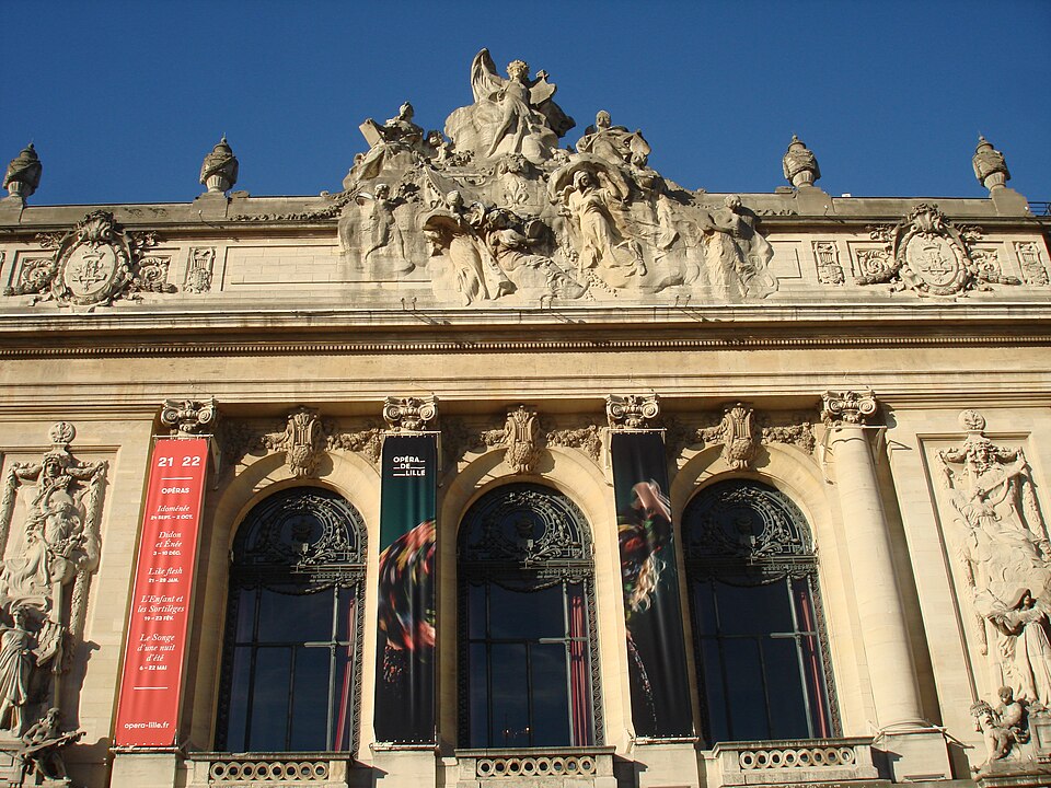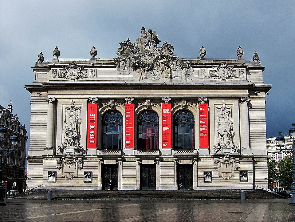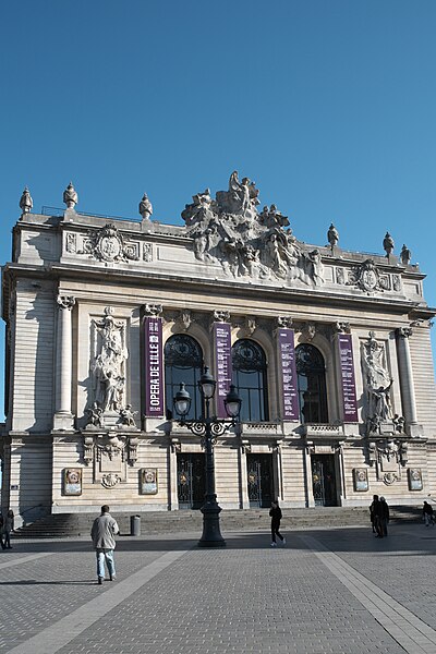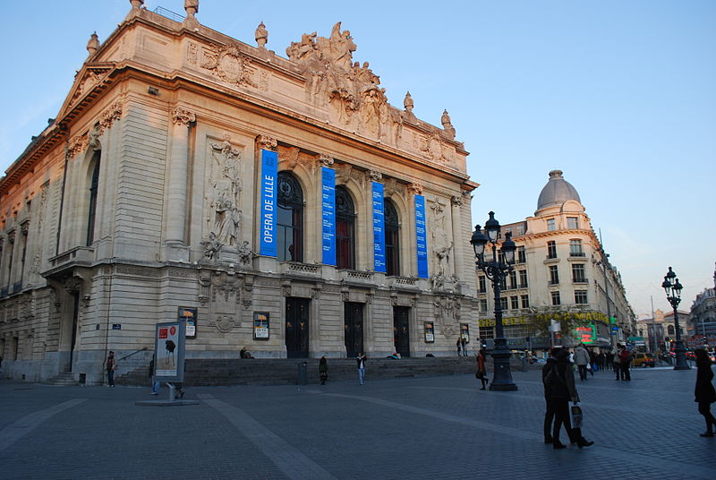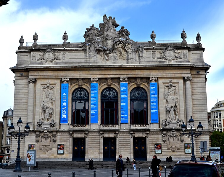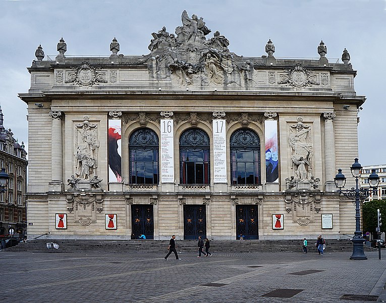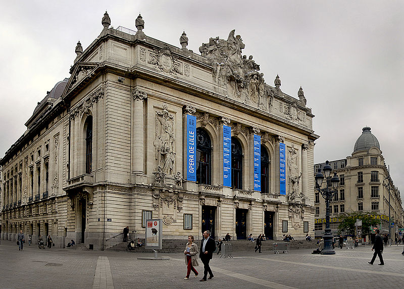 L'Opéra de Lille, bâtiment de style néo‑classique inspiré des théâtres à l'italienne, a été construit entre 1907 et 1913 par l'architecte Louis‑Marie Cordonnier en béton armé et inauguré officiellement en 1923. Il succède à une salle antérieure conçue par Michel Lequeux, ouverte en 1787 après des travaux commencés en 1785, qui fut ravagée par un incendie en 1903. Après l'incendie, la ville fit édifier en urgence un théâtre provisoire place Sébastopol, œuvre de Léonce Hainez, puis lança un concours remporté par Cordonnier. Le nouvel opéra a été bâti en retrait de l'ancien emplacement, sur un sol instable nécessitant l'enfoncement d'environ 1 050 pieux en béton et l'emploi du procédé Hennebique pour le béton armé, habillé de pierres de Soignies et de Savonnières. Sa façade Beaux‑Arts, lumineuse et richement ornée, comporte trois travées et un décor conçu par Cordonnier, couronné par un grand groupe sculpté de Hippolyte Lefèbvre illustrant la Glorification des Arts autour d'Apollon et de neuf muses. Deux reliefs encadrent les baies : à gauche une allégorie de la musique par Alphonse‑Amédée Cordonnier, à droite la tragédie par Hector Lemaire. Occupé par les troupes allemandes dès 1914, l'édifice fut partiellement réquisitionné et inauguré provisoirement lors de représentations en 1915, mais les décors et machineries furent en grande partie détruits lorsque les troupes quittèrent les lieux en 1918 ; l'inauguration française ne put avoir lieu qu'en 1923. Au cours du XXe siècle, l'activité lyrique de Lille connut des hauts et des bas : après une renaissance difficile au lendemain de la Seconde Guerre mondiale, la ville vécut des périodes florissantes sous la direction de Maurice Cottinet puis d'Alexandre Vanderdonckt, accueillant de nombreuses productions nationales et invités prestigieux. À la fin des années 1970 l'activité s'essouffla, puis l'Opéra de Lille fut associé au ballet du Nord et à l'atelier lyrique de Tourcoing pour former l'Opéra du Nord en 1979 ; ce projet rencontra d'abord le succès public mais échoua en 1985 pour des raisons financières et politiques. Retrouvant son indépendance, l'Opéra connut plusieurs fermetures et renaissances ponctuelles dans les années 1980 et 1990, avec des saisons marquées par des productions lyriques, des récitals de grandes voix et des concerts dirigés par des chefs renommés. En 1998, l'édifice fut fermé pour mise en conformité de la sécurité, puis rénové selon un projet confié aux architectes Patrice Neirinck et Pierre‑Louis Carlier, avec les conseils acoustiques de Peutz et la scénographie de dUCKS. La réouverture, anticipée fin 2003 pour l'événement Lille 2004, s'accompagna d'une programmation renaissante : Don Giovanni ouvrit la saison lyrique de 2004, suivi de Madame Butterfly. Depuis, sous la direction de Caroline Sonrier, l'Opéra de Lille a développé un projet d'ouverture aux répertoires, à la création contemporaine, aux artistes émergents et à des publics divers, en tissant des partenariats durables avec des ensembles et orchestres comme le Concert d'Astrée, l'Ensemble Ictus, l'Orchestre National de Lille, l'Orchestre de Picardie et Le Balcon. Le Chœur de l'Opéra, créé en 2003 et dirigé par Yves Parmentier, réunit selon les productions de 26 à 36 chanteurs professionnels non permanents, majoritairement régionaux, et participe aux productions ainsi qu'aux Concerts du Mercredi. La production de Carmen en 2010, avec Stéphanie d'Oustrac, fit l'objet d'éloges médiatiques, et en 2017 l'établissement reçut l'appellation de Théâtre lyrique d'intérêt national. Le bâtiment, inscrit à l'inventaire des monuments historiques en 1999, fonctionne aujourd'hui comme établissement public de coopération culturelle depuis le 1er janvier 2008 et est membre de la Réunion des opéras de France, de RESEO et d'Opera Europa ; il est desservi par les stations de métro Gare Lille‑Flandres et Rihour.