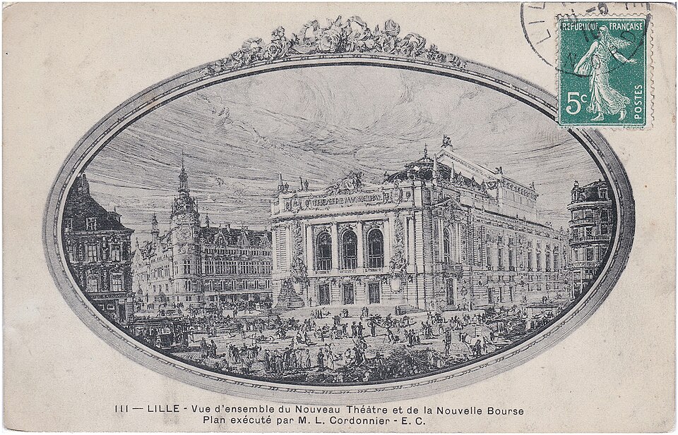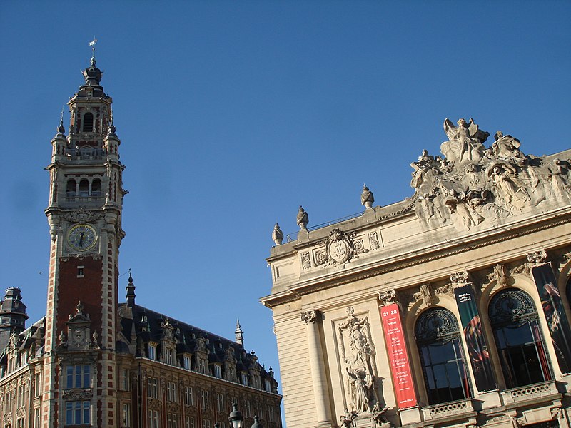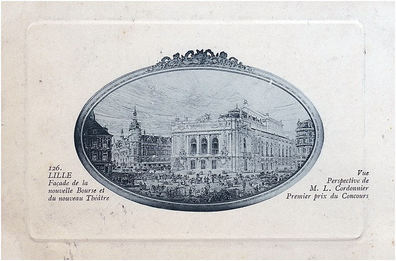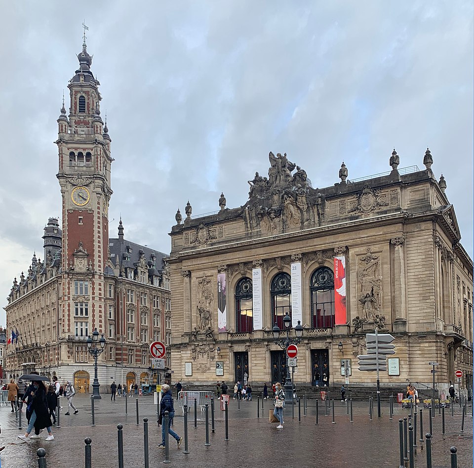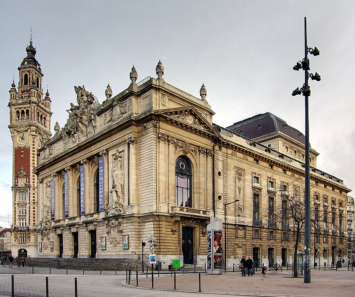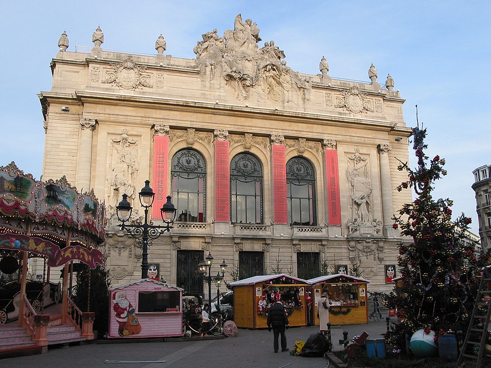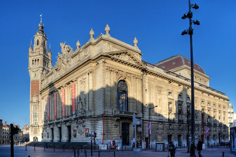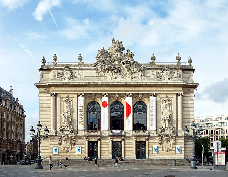 L'Opéra de Lille, bâtiment de style néo‑classique inspiré des théâtres à l'italienne, a été construit entre 1907 et 1913 par l'architecte Louis‑Marie Cordonnier en béton armé et inauguré officiellement en 1923. Il succède à une salle antérieure conçue par Michel Lequeux, ouverte en 1787 après des travaux commencés en 1785, qui fut ravagée par un incendie en 1903. Après l'incendie, la ville fit édifier en urgence un théâtre provisoire place Sébastopol, œuvre de Léonce Hainez, puis lança un concours remporté par Cordonnier. Le nouvel opéra a été bâti en retrait de l'ancien emplacement, sur un sol instable nécessitant l'enfoncement d'environ 1 050 pieux en béton et l'emploi du procédé Hennebique pour le béton armé, habillé de pierres de Soignies et de Savonnières. Sa façade Beaux‑Arts, lumineuse et richement ornée, comporte trois travées et un décor conçu par Cordonnier, couronné par un grand groupe sculpté de Hippolyte Lefèbvre illustrant la Glorification des Arts autour d'Apollon et de neuf muses. Deux reliefs encadrent les baies : à gauche une allégorie de la musique par Alphonse‑Amédée Cordonnier, à droite la tragédie par Hector Lemaire. Occupé par les troupes allemandes dès 1914, l'édifice fut partiellement réquisitionné et inauguré provisoirement lors de représentations en 1915, mais les décors et machineries furent en grande partie détruits lorsque les troupes quittèrent les lieux en 1918 ; l'inauguration française ne put avoir lieu qu'en 1923. Au cours du XXe siècle, l'activité lyrique de Lille connut des hauts et des bas : après une renaissance difficile au lendemain de la Seconde Guerre mondiale, la ville vécut des périodes florissantes sous la direction de Maurice Cottinet puis d'Alexandre Vanderdonckt, accueillant de nombreuses productions nationales et invités prestigieux. À la fin des années 1970 l'activité s'essouffla, puis l'Opéra de Lille fut associé au ballet du Nord et à l'atelier lyrique de Tourcoing pour former l'Opéra du Nord en 1979 ; ce projet rencontra d'abord le succès public mais échoua en 1985 pour des raisons financières et politiques. Retrouvant son indépendance, l'Opéra connut plusieurs fermetures et renaissances ponctuelles dans les années 1980 et 1990, avec des saisons marquées par des productions lyriques, des récitals de grandes voix et des concerts dirigés par des chefs renommés. En 1998, l'édifice fut fermé pour mise en conformité de la sécurité, puis rénové selon un projet confié aux architectes Patrice Neirinck et Pierre‑Louis Carlier, avec les conseils acoustiques de Peutz et la scénographie de dUCKS. La réouverture, anticipée fin 2003 pour l'événement Lille 2004, s'accompagna d'une programmation renaissante : Don Giovanni ouvrit la saison lyrique de 2004, suivi de Madame Butterfly. Depuis, sous la direction de Caroline Sonrier, l'Opéra de Lille a développé un projet d'ouverture aux répertoires, à la création contemporaine, aux artistes émergents et à des publics divers, en tissant des partenariats durables avec des ensembles et orchestres comme le Concert d'Astrée, l'Ensemble Ictus, l'Orchestre National de Lille, l'Orchestre de Picardie et Le Balcon. Le Chœur de l'Opéra, créé en 2003 et dirigé par Yves Parmentier, réunit selon les productions de 26 à 36 chanteurs professionnels non permanents, majoritairement régionaux, et participe aux productions ainsi qu'aux Concerts du Mercredi. La production de Carmen en 2010, avec Stéphanie d'Oustrac, fit l'objet d'éloges médiatiques, et en 2017 l'établissement reçut l'appellation de Théâtre lyrique d'intérêt national. Le bâtiment, inscrit à l'inventaire des monuments historiques en 1999, fonctionne aujourd'hui comme établissement public de coopération culturelle depuis le 1er janvier 2008 et est membre de la Réunion des opéras de France, de RESEO et d'Opera Europa ; il est desservi par les stations de métro Gare Lille‑Flandres et Rihour.