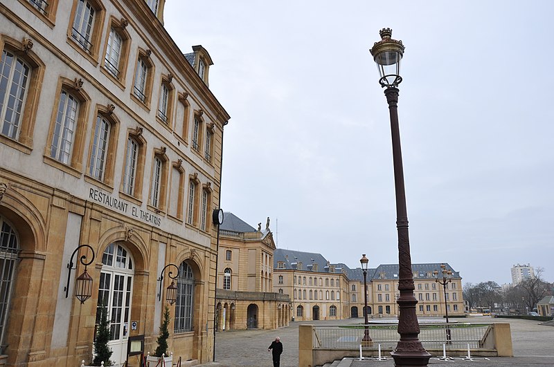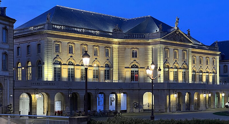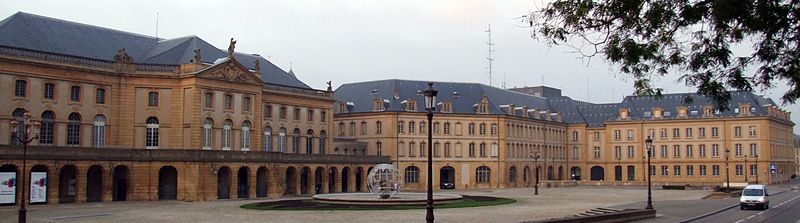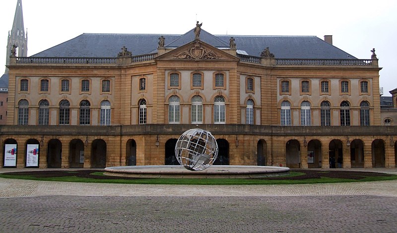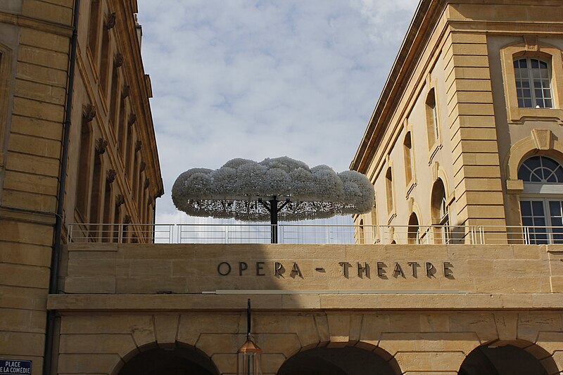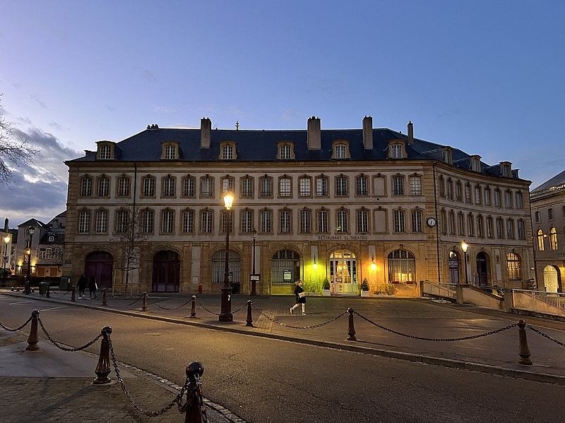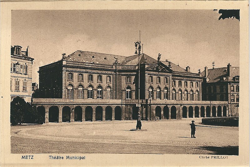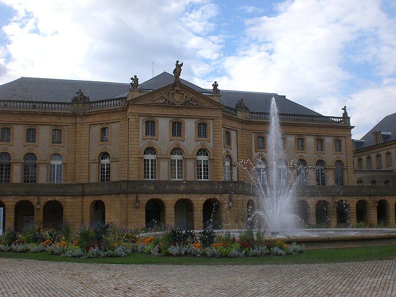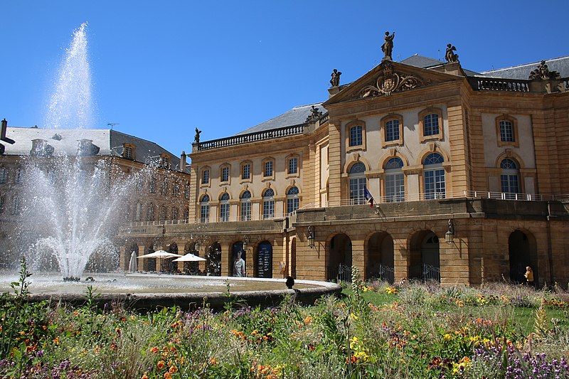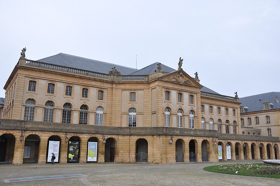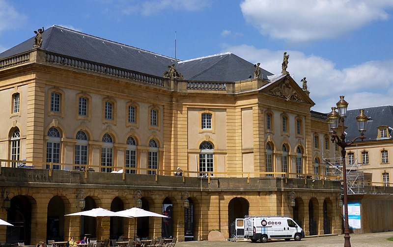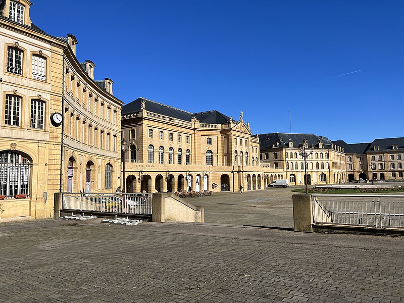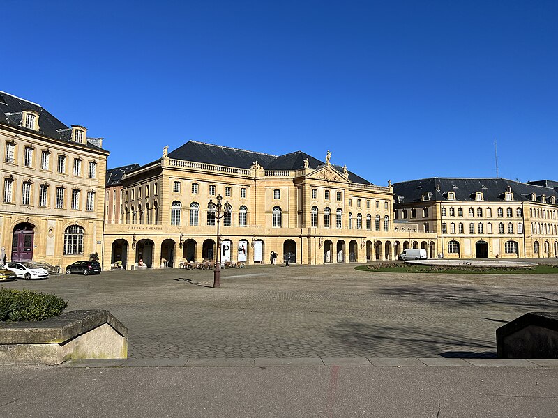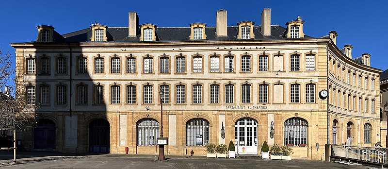 L’Opéra‑Théâtre de Metz, anciennement Hôtel des Spectacles puis Opéra‑Théâtre de Metz, est situé place de la Comédie sur l’île du Petit Saulcy. Avant sa construction, la salle de jeu de paume « Chatin », à côté de l’hôtel Gargan en Nexirue, servait de lieu de théâtre. L’île du Petit Saulcy, nommée d’après les saules plantés sur ses rives, était autrefois une lande boueuse utilisée comme dépôt de bois de chauffage. La ville la pave en 1732, y dote des quais, fait édifier l’Hôtel des Spectacles et relie l’île au quartier des Roches, à la ville haute et à l’extrémité de l’île Chambière par de nouveaux ponts. Dès l’origine, le théâtre forme, avec le pavillon Saint‑Marcel et celui de la Douane, la façade de la nouvelle place conçue par le gouverneur, le duc de Belle‑Isle, dans le cadre d’un projet urbain aboutissant notamment à la place d’Armes. Construit de 1738 à 1752 dans un style classique d’influence toscane, l’édifice est élevé en même temps que l’hôtel de l’Intendance. Après des errements de l’architecte Charles‑François Roland dit « Le Virloys », le projet est repris par l’architecte messin Jacques Oger, avec les conseils techniques du machiniste Landot et du décorateur Pierre Deleuze. Les travaux furent interrompus pendant huit ans en raison de la guerre de Succession d’Autriche. Inauguré par un bal public le 3 février 1752, ce théâtre à l’italienne est le plus ancien théâtre encore en activité en France. En 1754, un péristyle de vingt‑et‑une arcades réunit les trois pavillons et crée une terrasse au centre de la composition architecturale. Sous le fronton se lit une inscription révolutionnaire, « PLACE DE L'EGALITE » ; les pierres qui la portent ont été déplacées et apparaissent aujourd’hui, de gauche à droite, dans cet ordre : « PLAC » (le C partiellement coupé), « LITE », « L » (coupé), « E DE », « _EGA ». Entre février et juillet 1794, une guillotine surnommée La Louise fut dressée sur la place et provoqua trente‑trois exécutions. En 1858, le sculpteur Charles Pêtre orna le couronnement de la façade d’allégories représentant la Tragédie, l’Inspiration, la Poésie lyrique, la Comédie et la Musique ; l’intérieur actuel date aussi de cette époque, avec des agrafes d’arcades au rez‑de‑chaussée ornées de figures féminines et de têtes de satyres. En 1868 une grande fontaine, aujourd’hui disparue, fut érigée au centre de la place pour célébrer l’arrivée des eaux de Gorze. En 1887, pour réduire le risque d’incendie lié aux lampes à huile, la ville électrifia le théâtre et équipe le moulin des Thermes de turbines, faisant de lui la première usine de production électrique et assurant aussi l’éclairage public des places de Metz. L’Hôtel des Spectacles, devenu Opéra‑Théâtre, n’a pas changé d’affectation depuis son inauguration et a accueilli de nombreuses troupes et artistes, notamment Sarah Bernhardt dans Tosca (1905) et La Dame aux camélias (1909), Kathleen Howard qui débuta en 1907 dans Les Contes d’Hoffmann, et Jean Cocteau pour les décors de Pelléas dans les années 1960. Otto Brucks fut directeur de 1906 à 1914 ; son mariage avec la comtesse Marie von Wallersee‑Larisch suscita un scandale qui porta atteinte à sa carrière, et il mourut à Metz en janvier 1914. Sous la direction de Paul‑Emile Fourny depuis 2011, l’établissement fonctionne en permanence avec plus de 103 personnes, dont un chœur de 24 choristes et un corps de ballet de 14 danseurs. Il conserve ses propres ateliers de fabrication de décors et de costumes et propose chaque année un programme mêlant opéras, pièces de théâtre, ballets, opérettes, nouvelles productions lyriques et créations du Théâtre de Metz. Les façades et les toitures sont classées au titre des monuments historiques depuis le 6 janvier 1930 ; l’Opéra‑Théâtre, placé sous la tutelle de la communauté d’agglomération de Metz Métropole, est membre de la Réunion des opéras de France.