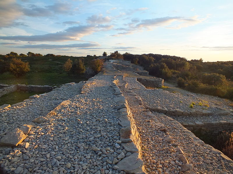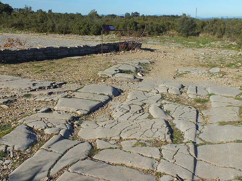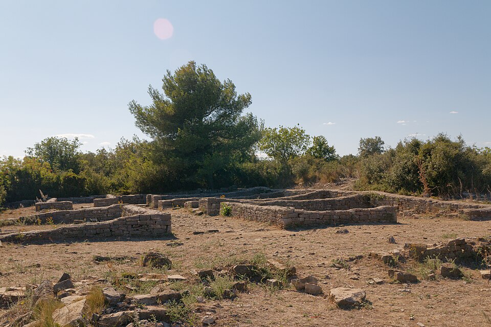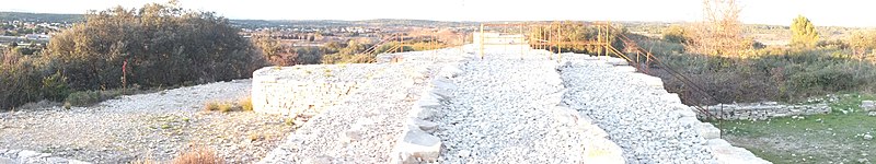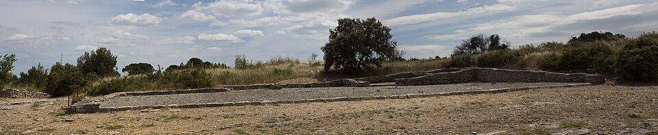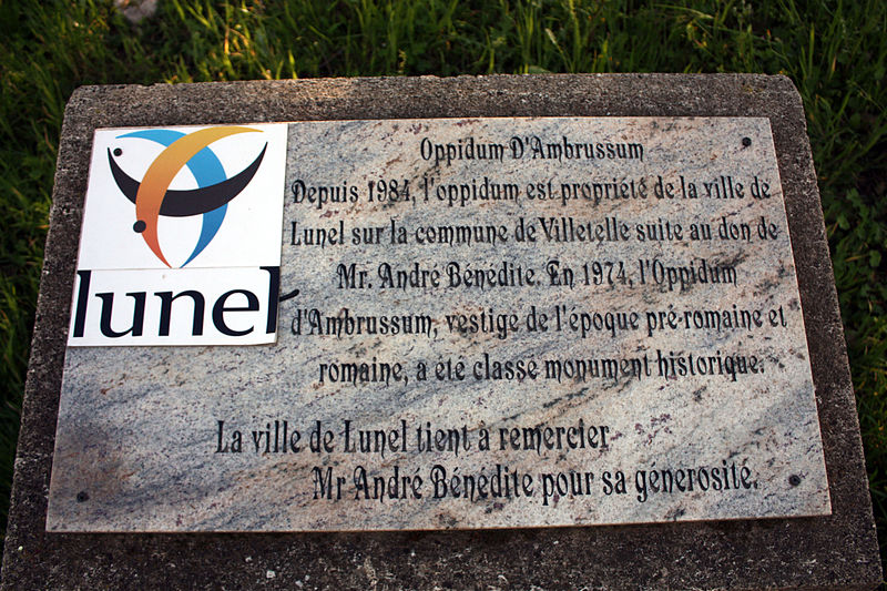 Ambrussum est un site archéologique sur la commune de Villetelle (Hérault), entre Nîmes et Montpellier, connu pour son oppidum et son agglomération gallo‑romaine ainsi que pour le pont Ambroix franchissant le Vidourle. L'origine du toponyme Ambrussum reste incertaine : la racine ambr‑, fréquente en Gaule, en Espagne et en Italie, pourrait relever d'un substrat pré‑indoeuropéen, et Plutarque signale un ethnonyme voisin, les Ambrones. Le nom est par ailleurs attesté dans l'Antiquité par des monnaies frappées AMBR en caractères grecs et latins, par des gobelets de Vicarello mentionnant Ambrussum/Ambrussio, par l'Itinéraire d'Antonin, la table de Peutinger et d'autres itinéraires. Le site occupe la colline du Devès et la plaine bordant le Vidourle, position qui lui permettait de contrôler les axes de circulation entre les Cévennes et la Méditerranée. Il se développe en deux entités distinctes : l'oppidum sur la colline et, en contrebas, une station routière liée à la voie Domitienne. Rattachée à la cité des Volques Arécomiques dont Nîmes est le chef‑lieu, l'agglomération a cependant frappé sa propre monnaie et présente des indices de droit latin ou romain dans des inscriptions funéraires. L'occupation du sommet du Devès remonte au Néolithique final et se poursuit au Bronze et au premier Âge du fer, comme l'attestent outils en silex, céramiques, une fibule d'origine italique et des tessons d'amphore étrusque et de vaisselle grecque. L'oppidum se structure à la période de La Tène avec un premier rempart à tours quadrangulaires, puis un second rempart à tours rondes incorporant des éléments antérieurs ; ces fortifications, restaurées au IIe siècle av. J.-C., servent à la fois de défense et de marqueur social. Une nécropole à incinération installée en zone basse livre plusieurs tombes d'enfants et d'adultes, et des découvertes d'armes gauloises en aval suggèrent une extension funéraire vers le pont. À l'époque gallo‑romaine, la ville haute est traversée par une artère pavée identifiée comme le tracé de la voie Domitienne au moins au Ier siècle apr. J.-C.; cette rue, étroite et pentue, débouche sur un forum portique daté du Ier siècle. Sous Tibère, le rempart sommitale sert de dépôt d'objets votifs ; des maisons de type domus, occupées de la seconde moitié du Ier siècle apr. J.-C. jusqu'à l'abandon, ont été mises au jour. La voie Domitienne assure les échanges est‑ouest et permet l'importation de produits éloignés, tels que huiles et saumures de Bétique ou vins d'Italie du Sud et d'Afrique. Le quartier bas, station routière développée sous Auguste, s'organise autour d'une rue parallèle au fleuve et comprend plusieurs îlots d'étape construits autour de cours, des boutiques, des auberges, un établissement thermal alimenté par quatre puits et des bâtiments rehaussés pour se protéger des crues. Un îlot augustéen a livré une remise riche en objets métalliques et monnaies, des installations agricoles et métallurgiques (moulin à bras, grand foyer, four), indiquant une double fonction d'étape et d'exploitation, tandis qu'un autre îlot de plan orthonormé paraît résidentiel et montre des réoccupations jusqu'à la seconde moitié du IVe siècle apr. J.-C. Une grande hôtellerie de près de 1000 m2, interprétée comme liée au cursus publicus, offrait des prestations pour une clientèle officielle. Le site a livré un autel votif dédié à Fortuna et la « maison de charron », forge spécialisée dans la réparation des véhicules ; la présence d'armes suggère aussi une possible garnison de contrôle. L'abandon du quartier commence entre la fin du IIe et le IIIe siècle apr. J.-C., avec une réorganisation de l'hôtellerie au IVe siècle et un départ définitif des occupations au Ve siècle. Le pont Ambroix a durablement marqué la réputation du lieu ; après l'Antiquité il reste utilisé, l'église Sancte Marie de Ponte Ambrosio y étant attestée au XIIe siècle et des bâtiments médiévaux repérés lors des fouilles. La voie Domitienne est progressivement délaissée au profit de tracés voisins et le pont subit des destructions liées aux récupérations de matériaux et aux crues, comme l'attestent des actes notariaux. Les premières connaissances modernes proviennent de dessins et plans aux XVIIe‑XVIIIe siècles, de fouilles au XIXe siècle puis d'opérations plus systématiques après 1967, dirigées notamment par Jean‑Luc Fiches (1969–1985) et Maxime Scrinzi à partir de 2016, avec des campagnes poursuivies en 2019‑2020. L'ensemble de l'oppidum est classé au titre des monuments historiques depuis le 26 février 1974 ; un parcours archéologique, des visites guidées et un musée archéologique gratuit, ouvert en 2011, assurent la valorisation et l'accueil du public.