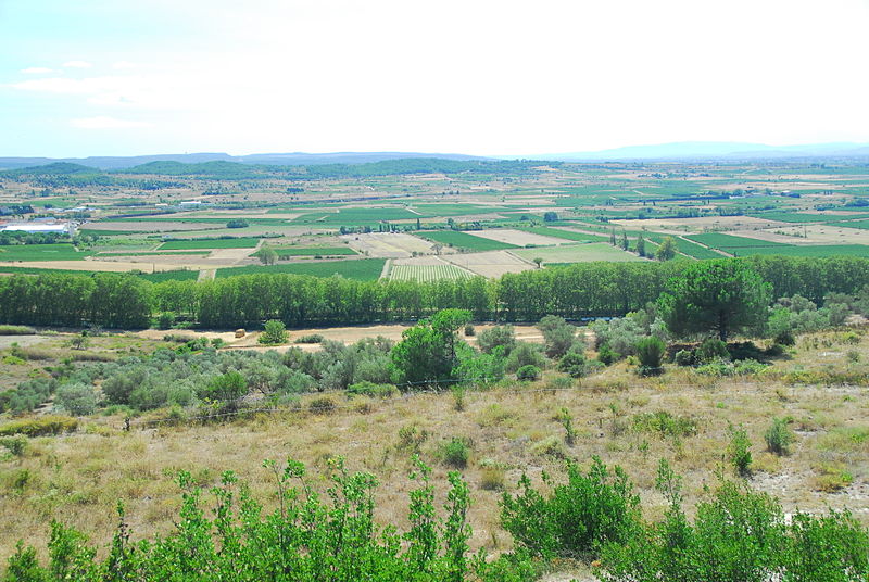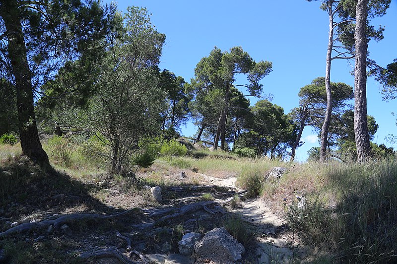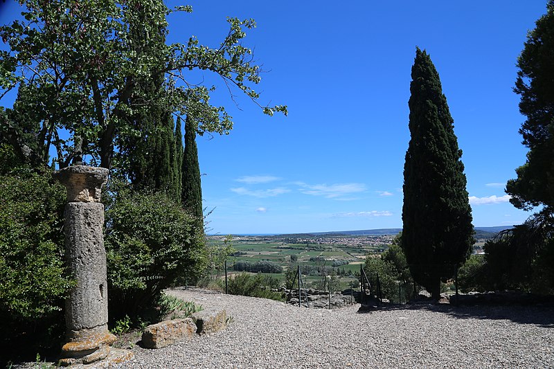 La colline domine d'environ cent mètres les plaines environnantes et offre une vue panoramique sur une partie des régions de Béziers et de Narbonne, jusqu'aux Pyrénées; elle surplombe l'étang de Montady au nord et le canal du Midi passe au sud depuis la fin du XVIIe siècle, en provenance du tunnel de Malpas. Le site se situe à environ huit kilomètres à l'ouest de Béziers et à deux kilomètres et demi au nord du vieux village de Nissan-lez-Enserune, à la limite des territoires de Colombiers, Montady et Poilhes. La colline est formée de sédiments du Miocène — des sables marins littoraux — dont la faible dureté a permis le creusement des silos.