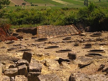 Ensérune est célèbre pour le nombre et la qualité de ses silos creusés dans la roche : on recense près de 300 fosses sur la colline et ses abords, généralement de forme ovoïde et présentant des capacités estimées entre 10 000 et 85 000 litres. Ces structures, construites au fil de l'occupation du site, ont longtemps été interprétées comme des réserves de céréales, mais l'utilisation comme réservoirs d'eau est désormais considérée comme vraisemblable pour un très grand nombre d'entre elles; la plupart appartiennent à la dernière phase du site, principalement datée entre le IIe et le Ier siècle av. J.-C. Le stockage des céréales, apparu autour de la révolution néolithique, reste un élément central dans l'organisation des sociétés et explique en partie l'importance de ces aménagements.