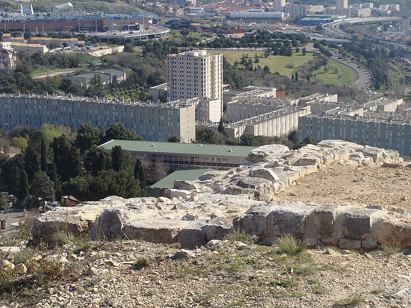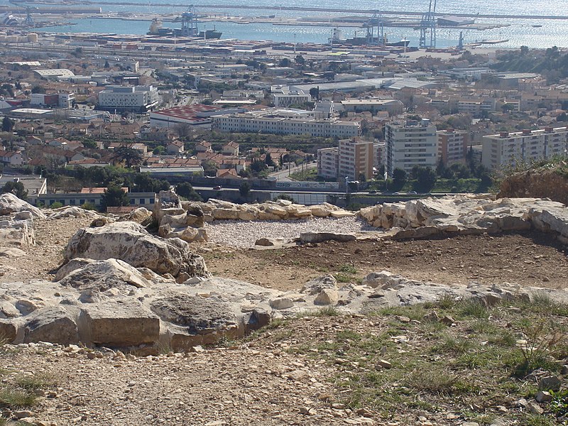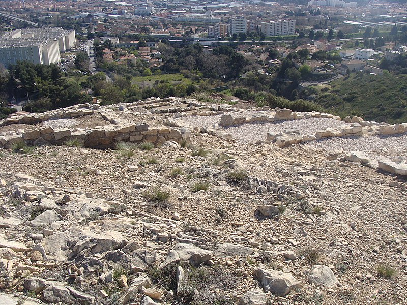 L’oppidum du Verduron est un habitat fortifié celto-ligure situé sur la colline du Verduron, dans le 15e arrondissement de Marseille, dominé par un éperon rocheux culminant à environ 195 m et localement appelé « pain de sucre ». Fondé à la fin du IIIe siècle av. J.-C. et abandonné au début du IIe siècle av. J.-C., il contrôlait une voie protohistorique menant à Saint-Blaise et à l’étang de Berre. Le site, de faible superficie (environ 1 200 m2), présente un plan régulier centré sur un enclos sub-rectangulaire contenant quatre séries de cellules disposées en terrasses le long des côtés et dans l’axe, séparées par deux voies. Au sommet se trouve un bloc carré de 12 x 12 m, souvent qualifié à tort de « tour », accolé au petit côté d’un trapèze qui s’étire le long de la pente ; cet appendice nord, organisé en quatre cellules, ne correspond vraisemblablement pas à une tour. L’intérieur de l’enceinte comprend au total 36 cellules d’habitat mises en place après d’importants travaux de terrassement pour compenser la forte pente du substrat. Les archéologues ont relevé des zones de pierres chauffées, interprétées comme la trace de feux utilisés pour faciliter le débitage des roches, et ont rassemblé une importante collection d’objets en fer ainsi que des pierres gravées. L’accès au site se faisait par une porte fortifiée située au sud-est, dans la partie basse, et le flanc de la croupe est divisé par un mur longitudinal nord-sud qui sépare deux zones desservies chacune par une rue longeant les cellules adossées à l’enceinte ou au mur de partage. Le mur d’enceinte, large de 0,8 à 1 m, est un mur à double parement construit en pierres brutes ou légèrement dégrossies liées à l’argile ; à l’ouest, il comprend de très gros blocs disposés en boutisse. Découvert en 1905 par le sculpteur Stanislas Clastrier lors d’un défrichement, l’oppidum a fait l’objet de fouilles presque complètes entre 1906 et 1911, puis de nouvelles campagnes entre 2000 et 2005. Aucune reprise architecturale ou transformation notable n’a été observée, ce qui suggère une occupation brève ; le site a été détruit violemment par une armée dotée de catapultes, sans que l’identification des agresseurs — Grecs et/ou Romains — puisse être établie. L’influence grecque dans l’architecture n’est pas évidente, et la destruction est souvent interprétée comme liée à des tensions autour des limites de la chôra massaliète. La parcelle contenant les vestiges bénéficie d’un classement au titre des monuments historiques depuis le 24 août 2004.