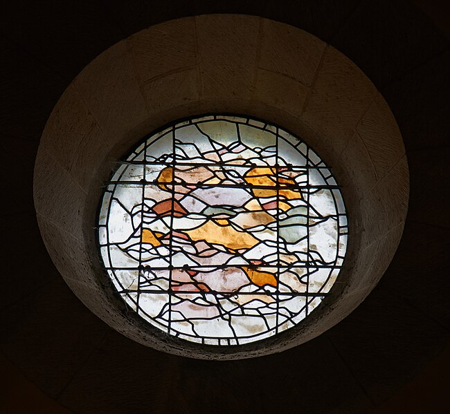 L'étude technique rapproche la mosaïque de pièces byzantines et ravennates : tesselles de verre bleu cobalt, bleu clair, vert, gris-vert, jaune crème et noir, ainsi que tesselles or et argent composées d'une feuille métallique appliquée sur un support vitré et protégée par une mince lamelle de verre. Certains matériaux semblent liés aux productions de Ravenne et aux déblais d'Aix-la-Chapelle, ce qui plaide pour l'intervention d'un mosaïste byzantin ou formé à la tradition byzantine. Sur le plan iconographique, l'arche d'alliance, rare dans la décoration d'église, occupe la place traditionnellement réservée à la Vierge trônante ; cette substitution symbolique et l'emploi d'images et de symboles reflètent une position intermédiaire face à la crise iconoclaste, conforme aux débats théologiques carolingiens.