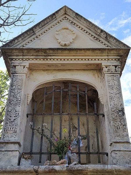 Son appellation varie selon l'usage et l'histoire : il porte le nom du domaine, rappelle la scène de la gravure représentant sainte Marie‑Madeleine à Béthanie, et est aussi connu sous le surnom « oratoire de Miette » en mémoire d'un drame survenu à l'époque révolutionnaire, lorsque la jeune Miette, poursuivie par un assassin qui avait tué ses parents, se réfugia près de l'oratoire et fut miraculeusement épargnée. L'édicule représente Marie‑Madeleine associée à Marie de Béthanie, aux pieds du Christ auprès de sainte Marthe, selon la tradition provençale.