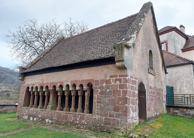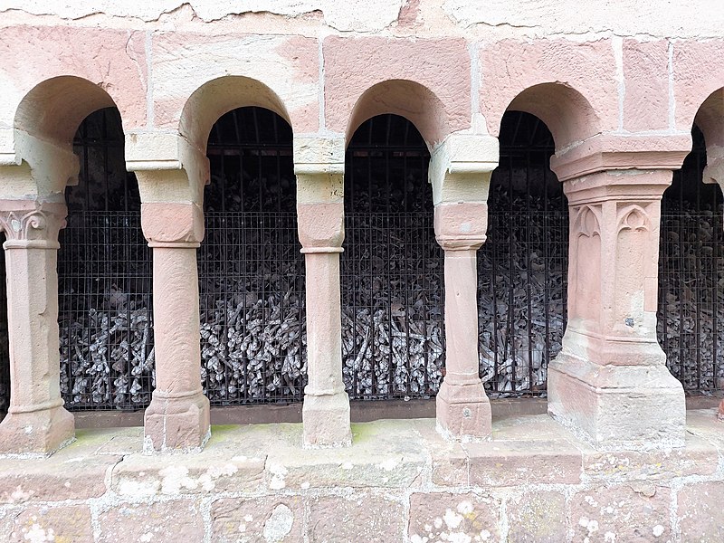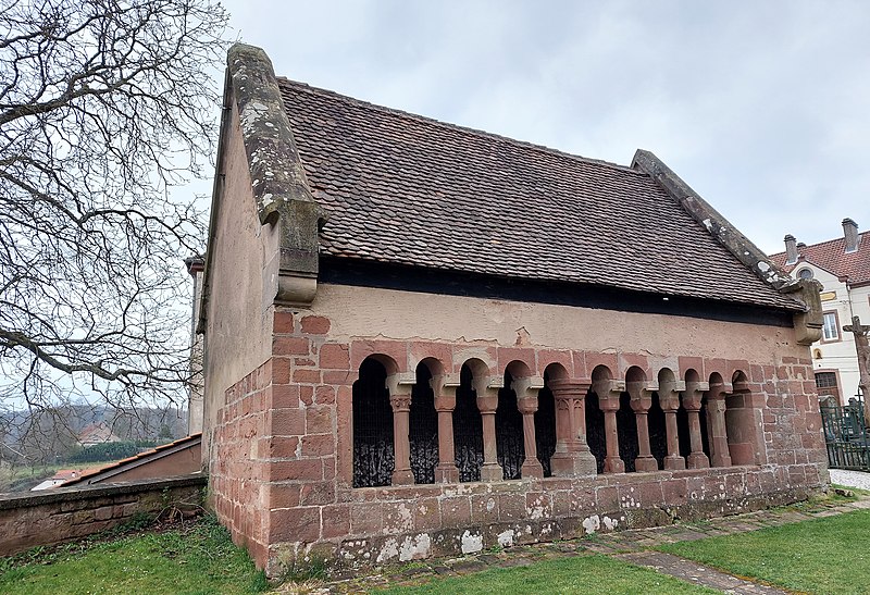 L'ossuaire, de style roman, se trouve dans le cimetière de Schorbach, en Moselle, entourant encore l'église paroissiale Saint-Rémi. Son datation varie selon les auteurs : certains le situent au XIIe siècle, d'autres au XVe siècle. Il présente l'aspect d'une châsse flanquée de colonnes, toutes différentes, et serait né de l'exiguïté du cimetière ; des ossements y furent déposés de 1136 jusqu'à la Révolution française, voire au XIXe siècle. Une arcature de onze arcs en plein cintre orne l'édifice ; elle est soutenue par des colonnes reposant sur un mur-bahut à deux assises. Le pilier central, de plan quadrangulaire, est décoré de trilobes. Sur l'entrave de la cinquième colonne et sur la courbe concave du dernier arc figurent deux visages grotesques, vraisemblablement des têtes de mort. Après une restauration au début du XXe siècle, l'ossuaire a perdu le pan-de-bois de ses pignons et les demi-croupes de sa toiture. Il est classé monument historique depuis 1929.