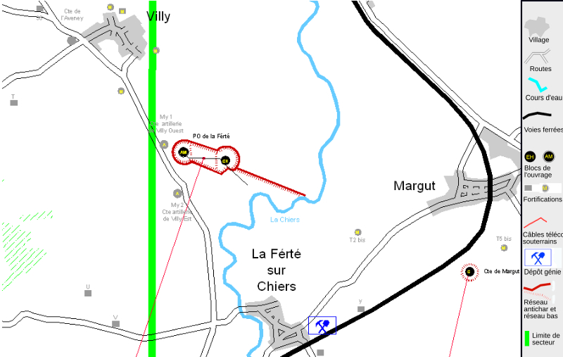 Sur la ligne Maginot, La Ferté faisait partie du sous‑secteur de la tête de pont de Montmédy, entre la casemate d’intervalle de l’Aveney à l’ouest et la casemate CORF de Margut à l’est, à portée de feu de l’ouvrage du Chesnois ; à proximité se trouvaient également les casemates STG de Villy‑Ouest et Villy‑Est, chacune équipée d’un canon de 75 mm modèle 1897/1933. La tête de pont de Montmédy comprenait quatre ouvrages — Le Chesnois, Thonnelle, Vélosnes et La Ferté — complétés par une douzaine de casemates, les deux premiers étant des ouvrages d’artillerie et les deux autres des ouvrages d’infanterie ; La Ferté et Le Chesnois constituaient les ouvrages les plus au nord de la continuité défensive.