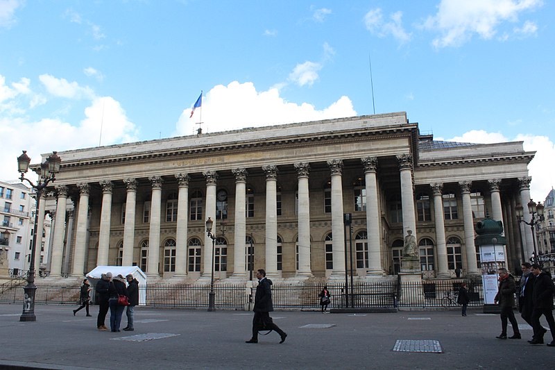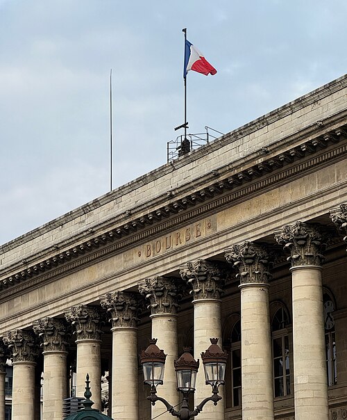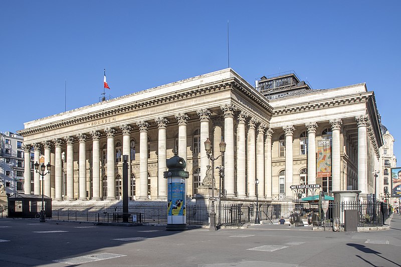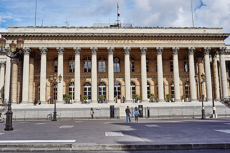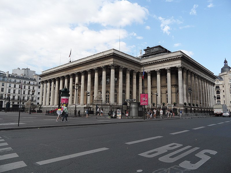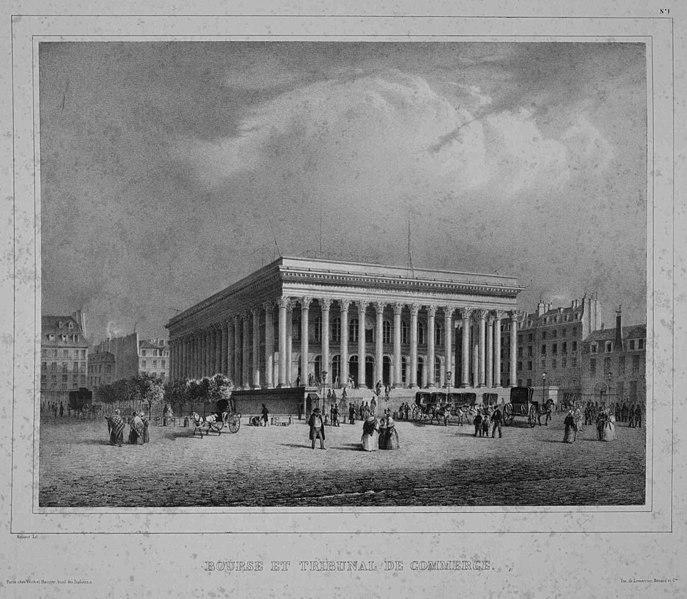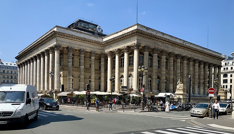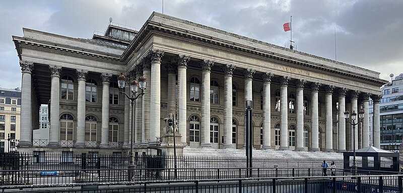 Le palais Brongniart, ancien palais de la Bourse, est un édifice périptère de style néoclassique élevé sur l'ordre de Napoléon Ier pour abriter la Bourse de Paris. Conçu par Alexandre-Théodore Brongniart, qui proposa six projets et retint l'idée d'un "temple grec", les travaux commencèrent en 1808. Brongniart mourut en 1813 ; Éloi Labarre prit la succession et poursuivit l'ouvrage, qui fut inauguré après la chute de l'Empire en 1826 et achevé quelques années plus tard. Le bâtiment s'élève sur l'emplacement de l'ancien couvent des Filles-Saint-Thomas, délimité alors par les rues Feydeau, Notre-Dame-des-Victoires et le passage Feydeau. Brongniart avait régularisé la place et ménagé de nouveaux accès afin d'intégrer la Bourse au tissu urbain et d'en faire un élément d'articulation de la voirie. Plusieurs aménagements prévus par l'architecte ne furent pas réalisés tels quels : l'ordre corinthien remplaça l'ordre ionique prévu, le grand relief fut remplacé par un niveau d'arcades, et l'étage des magasins fut transformé en bureaux. À l'origine, le bâtiment reçut un toit à double pente, modification que Brongniart n'avait pas imaginée, tandis que la grande inscription monumentale de la façade fut bien réalisée. Les gravures de 1814 montrent un monument entouré d'une double rangée d'arbres ; en pratique, seule une double allée longeant le bâtiment fut créée et conservée jusqu'à l'agrandissement de 1902–1903. L'agrandissement réalisé par Cavel en 1903 dota le rectangle originel de deux ailes, transformant l'ensemble en croix grecque ; à la mort de Cavel en 1905, Eustache, premier inspecteur des travaux, lui succéda et termina certaines restaurations. D'autres projets, notamment de Bernier et de Bernier et Azema, n'ont pas été exécutés. L'achèvement par Labarre a aussi modifié la décoration intérieure et les aménagements extérieurs : la décoration monochrome imitée de motifs sculptés fut remplacée par des peintures. Le plafond à caissons avec verrière centrale de la grande salle accueillit des peintures de Charles Meynier et d'Alexandre Denis Abel de Pujol représentant des allégories des villes de France et une frise figurant les différentes bourses d'Europe. La salle du tribunal de commerce, devenue salle de réunion des agents de change, fut aménagée en cinq travées séparées par des pilastres corinthiens ; les portes sont surmontées de bas-reliefs de Caillouette et de Bay, et la voûte a été peinte en grisaille par Vinchon et Blondel. Les décors comprennent par ailleurs des statues et bas-reliefs de Louis-Denis Caillouette et de Jean-Baptiste Joseph De Bay. Inspiré du temple de Vespasien à Rome, le palais est pourvu d'un péristyle de soixante-six colonnes corinthiennes selon certaines descriptions contemporaines, et son intérieur comprend une grande salle, une galerie et de nombreux bureaux. À l'inauguration, le fronton portait l'inscription "Bourse et tribunal de commerce" : le tribunal y tint audience et le lieu abrita aussi la Bourse de commerce qui occupa les locaux à partir de 1885. Un décret impérial de 1856 institua un droit d'entrée perçu par des tourniquets, ce qui fit couler beaucoup d'encre, notamment à propos des contributions quotidiennes exigées de certains acteurs du marché. Au fil du XIXe siècle la Bourse de Paris prit une place internationale, le péristyle servant aux coulissiers et aux négociants de valeurs étrangères. À partir de 1987 les cours au comptant furent gérés informatiquement hors du palais ; le marché à terme y subsista jusqu'en 1998. Géré par Euronext entre 1999 et 2009, le palais fut concédé à GL Events pour trente ans à partir de 2010 et se transforma en lieu de conférences, salons, réceptions et expositions. Il accueillit par ailleurs des initiatives en faveur des start-ups, avec notamment des promotions du programme Le Camping entre 2011 et 2013 et l'ouverture en 2014 d'un nouvel incubateur et espace de coworking, le Planetic Lab. Des expositions photographiques sont régulièrement présentées sur les grilles du palais, comme celle consacrée à la chanteuse Barbara à l'hiver 2017–2018, qui associait photographies, archives et modules vidéo interactifs. Propriété de la Ville de Paris, le palais Brongniart a fait l'objet d'un bail emphytéotique à la Compagnie des agents de change et a été inscrit au titre des monuments historiques en 1987. Ses agrandissements et transformations témoignent, sans le dévaloriser, de l'évolution du goût architectural et du néo-classicisme urbain ; le bâtiment reste l'un des monuments capitaux de Paris pour son intérêt historique et archéologique.