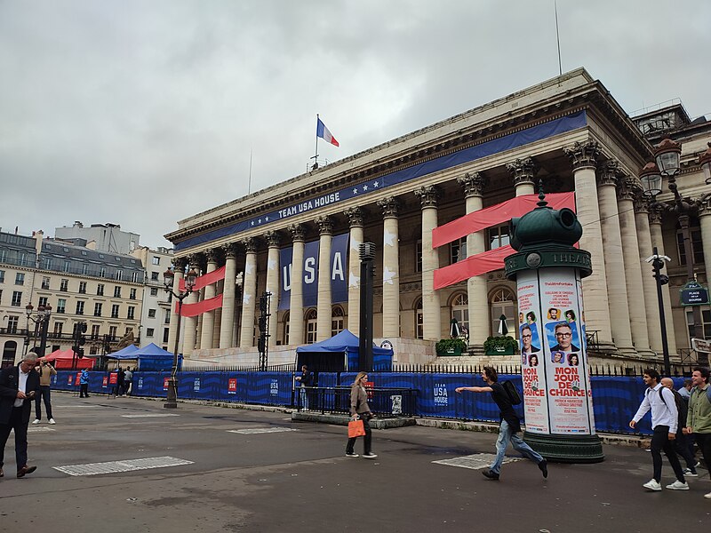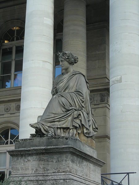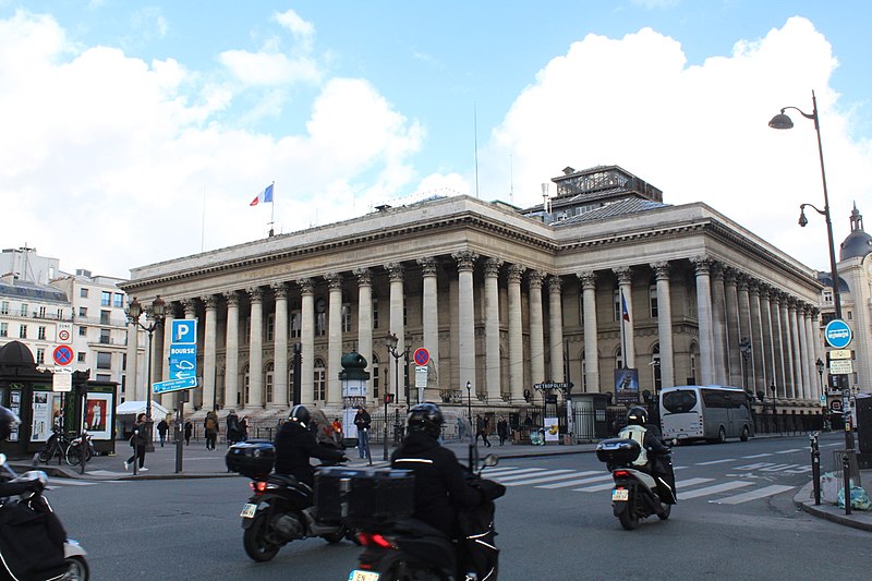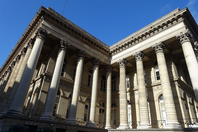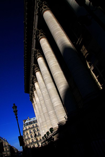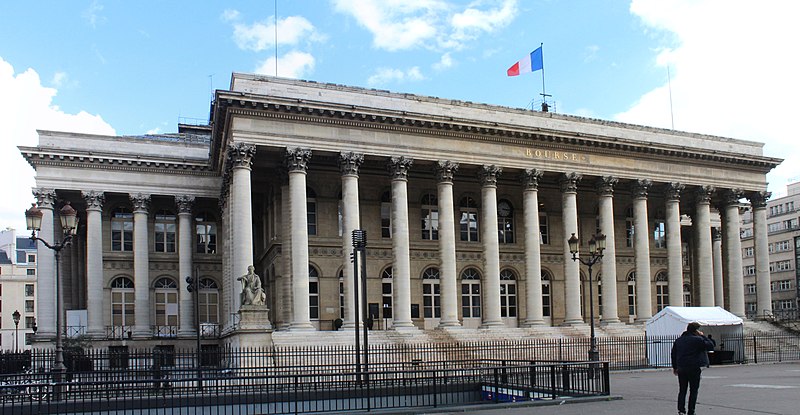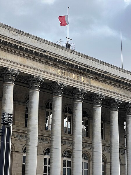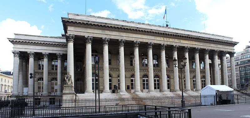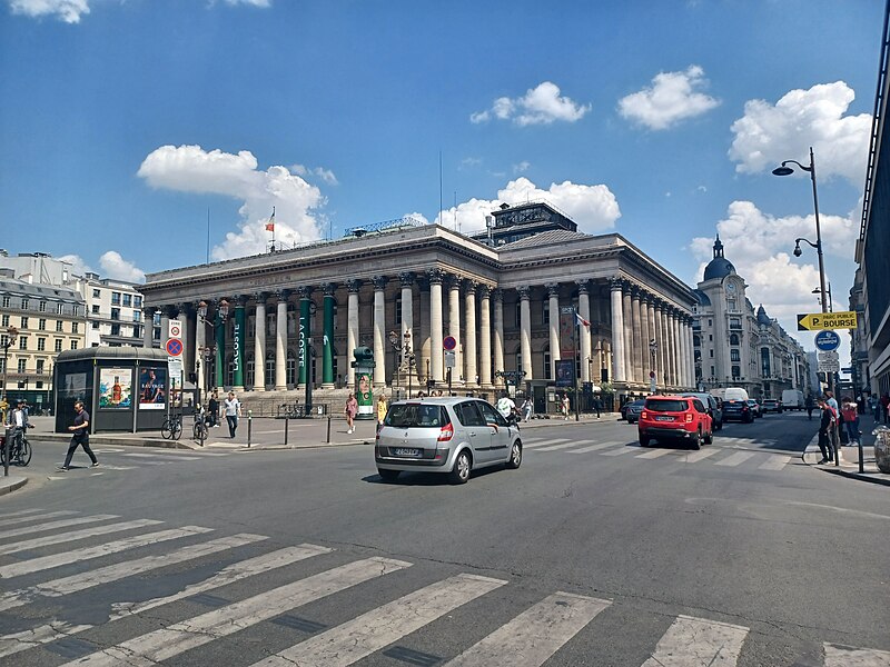 Le palais Brongniart, ancien palais de la Bourse, est un édifice périptère de style néoclassique élevé sur l'ordre de Napoléon Ier pour abriter la Bourse de Paris. Conçu par Alexandre-Théodore Brongniart, qui proposa six projets et retint l'idée d'un "temple grec", les travaux commencèrent en 1808. Brongniart mourut en 1813 ; Éloi Labarre prit la succession et poursuivit l'ouvrage, qui fut inauguré après la chute de l'Empire en 1826 et achevé quelques années plus tard. Le bâtiment s'élève sur l'emplacement de l'ancien couvent des Filles-Saint-Thomas, délimité alors par les rues Feydeau, Notre-Dame-des-Victoires et le passage Feydeau. Brongniart avait régularisé la place et ménagé de nouveaux accès afin d'intégrer la Bourse au tissu urbain et d'en faire un élément d'articulation de la voirie. Plusieurs aménagements prévus par l'architecte ne furent pas réalisés tels quels : l'ordre corinthien remplaça l'ordre ionique prévu, le grand relief fut remplacé par un niveau d'arcades, et l'étage des magasins fut transformé en bureaux. À l'origine, le bâtiment reçut un toit à double pente, modification que Brongniart n'avait pas imaginée, tandis que la grande inscription monumentale de la façade fut bien réalisée. Les gravures de 1814 montrent un monument entouré d'une double rangée d'arbres ; en pratique, seule une double allée longeant le bâtiment fut créée et conservée jusqu'à l'agrandissement de 1902–1903. L'agrandissement réalisé par Cavel en 1903 dota le rectangle originel de deux ailes, transformant l'ensemble en croix grecque ; à la mort de Cavel en 1905, Eustache, premier inspecteur des travaux, lui succéda et termina certaines restaurations. D'autres projets, notamment de Bernier et de Bernier et Azema, n'ont pas été exécutés. L'achèvement par Labarre a aussi modifié la décoration intérieure et les aménagements extérieurs : la décoration monochrome imitée de motifs sculptés fut remplacée par des peintures. Le plafond à caissons avec verrière centrale de la grande salle accueillit des peintures de Charles Meynier et d'Alexandre Denis Abel de Pujol représentant des allégories des villes de France et une frise figurant les différentes bourses d'Europe. La salle du tribunal de commerce, devenue salle de réunion des agents de change, fut aménagée en cinq travées séparées par des pilastres corinthiens ; les portes sont surmontées de bas-reliefs de Caillouette et de Bay, et la voûte a été peinte en grisaille par Vinchon et Blondel. Les décors comprennent par ailleurs des statues et bas-reliefs de Louis-Denis Caillouette et de Jean-Baptiste Joseph De Bay. Inspiré du temple de Vespasien à Rome, le palais est pourvu d'un péristyle de soixante-six colonnes corinthiennes selon certaines descriptions contemporaines, et son intérieur comprend une grande salle, une galerie et de nombreux bureaux. À l'inauguration, le fronton portait l'inscription "Bourse et tribunal de commerce" : le tribunal y tint audience et le lieu abrita aussi la Bourse de commerce qui occupa les locaux à partir de 1885. Un décret impérial de 1856 institua un droit d'entrée perçu par des tourniquets, ce qui fit couler beaucoup d'encre, notamment à propos des contributions quotidiennes exigées de certains acteurs du marché. Au fil du XIXe siècle la Bourse de Paris prit une place internationale, le péristyle servant aux coulissiers et aux négociants de valeurs étrangères. À partir de 1987 les cours au comptant furent gérés informatiquement hors du palais ; le marché à terme y subsista jusqu'en 1998. Géré par Euronext entre 1999 et 2009, le palais fut concédé à GL Events pour trente ans à partir de 2010 et se transforma en lieu de conférences, salons, réceptions et expositions. Il accueillit par ailleurs des initiatives en faveur des start-ups, avec notamment des promotions du programme Le Camping entre 2011 et 2013 et l'ouverture en 2014 d'un nouvel incubateur et espace de coworking, le Planetic Lab. Des expositions photographiques sont régulièrement présentées sur les grilles du palais, comme celle consacrée à la chanteuse Barbara à l'hiver 2017–2018, qui associait photographies, archives et modules vidéo interactifs. Propriété de la Ville de Paris, le palais Brongniart a fait l'objet d'un bail emphytéotique à la Compagnie des agents de change et a été inscrit au titre des monuments historiques en 1987. Ses agrandissements et transformations témoignent, sans le dévaloriser, de l'évolution du goût architectural et du néo-classicisme urbain ; le bâtiment reste l'un des monuments capitaux de Paris pour son intérêt historique et archéologique.