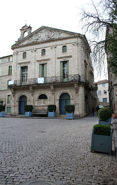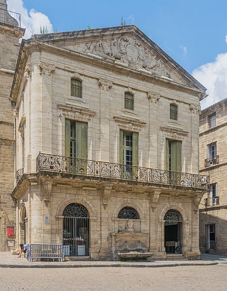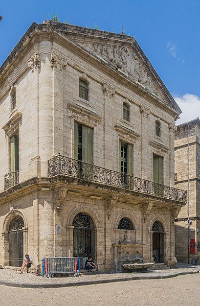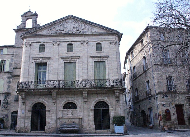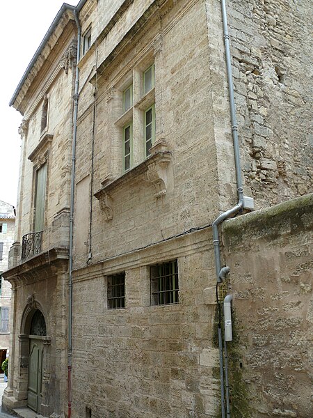 L'ancien palais consulaire a accueilli la Cour des Aides de Montpellier en 1622. Les États du Languedoc s'y assemblèrent à plusieurs reprises et y votèrent, le 22 juillet 1632, la Révolte du Languedoc. Le consulat, attesté en 1241, occupa ce même emplacement jusqu'à la Révolution. La construction actuelle résulte de plusieurs campagnes de travaux. L'édifice comporte deux parties distinctes : la façade sur la place, élevée à la fin du XVIIe siècle, a été construite devant la façade de l'ancienne construction du XVIe siècle, dont toutes les parties subsistent. D'importants remaniements furent réalisés en 1552 ; la fenêtre à croisée ouverte sur la rue Canabasserie pourrait être un vestige de cette campagne. La reconstruction du XVIe siècle remplaça l'hôtel de ville médiéval par un bâtiment connu grâce à trois documents figurés anciens. À l'intérieur, l'escalier, orné de colonnes et de motifs sculptés, conduit à la salle de délibération et date des premières années du XVIIe siècle. D'autres travaux de ce siècle comprirent la chapelle Saint-Roch, édifiée en 1652 en ex-voto après la peste de 1645, et le beffroi communal en 1693. Le bâtiment abritait également une prison, un arsenal et, depuis 1625, une chambre destinée aux archives jusque-là conservées dans une pièce haute du clocher de l'église Saint-Jean. La coupure est visible en façade sur la petite rue latérale droite ; cette façade présente à droite des fenêtres à meneaux de la Renaissance et à gauche un appareillage différent avec une ordonnance du XVIIe siècle. L'avant-corps monumental, menacé de ruine, a été reconstruit sur les plans et devis de Jacques Cavalier, collaborateur de l'architecte avignonnais Jean-Baptiste Franque, et la dernière campagne a notamment porté sur l'avant-corps élevé en bordure de la place. Le bâtiment a ensuite abrité le Tribunal de Commerce, puis la Maison des Métiers d'Art.