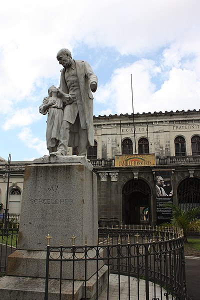 Le palais de justice de Fort-de-France, bâtiment néo-classique, occupe un îlot entre les rues Perrinon, Schœlcher et Moreau-de-Jones et abrite aujourd'hui l'Espace Camille Darsières, palais des arts et des cultures. Il a été édifié sur l'emplacement du couvent des Filles de la Providence, transformé en gendarmerie au début du XIXe siècle, puis d'abord reconstruit après le tremblement de terre du 11 janvier 1839 qui détruisit une grande partie de la ville. La première pierre du nouvel édifice fut posée en 1855 par l'amiral Louis Henri de Gueydon et le bâtiment, au plan en U, fut inauguré en 1857 par le gouverneur Denis de Fitte de Soucy. Construit dans un style néo-classique colonial, il présentait un rez-de-chaussée en pierre surmonté d'un étage en bois sur le corps central et l'aile droite, cette dernière étant coiffée d'un toit de tuiles importées de Marseille. Un petit square ombragé agrémentait la façade ; la fontaine qui s'y trouvait fut remplacée par une statue de Victor Schœlcher, œuvre d'Anatole Marquet de Vasselot, inaugurée le 22 septembre 1904 au centre de la cour et portant l'inscription « Nulle terre française ne peut plus porter d'esclaves ». Cette statue a été détruite le 22 mai 2020. Un incendie ravagea entièrement le palais en 1905 ; il fut reconstruit en 1906 par Gustave de Laguarigue dans un style néo-classique italien, avec toits en terrasse, et inauguré en 1907 par le gouverneur Charles Lépreux. Les prétoires ont vu plaider des avocats martiniquais renommés, dont les noms figurent aujourd'hui sur des plaques de rues : Victor Sévère, Joseph Lagrosillière et Camille Darsières. Inscrit à l'inventaire des monuments historiques par arrêté du 31 décembre 1991, le bâtiment accueillit ses dernières audiences en novembre 2001 avant d'être remplacé en 2002 par le nouveau tribunal de grande instance du Boulevard Général de Gaulle. Propriété de la ville, il a ensuite été réhabilité et transformé en Espace Camille Darsières, en hommage à cet avocat foyalais, homme de lettres et compagnon d'Aimé Césaire. Des ateliers d'artistes se sont installés autour de la cour intérieure, que le bâtiment en pierre, de plan rectangulaire, entoure. Devant le palais subsistait le square qui accompagnait son entrée, où s'était dressée la statue de Schœlcher jusqu'à sa destruction en 2020.