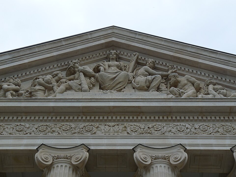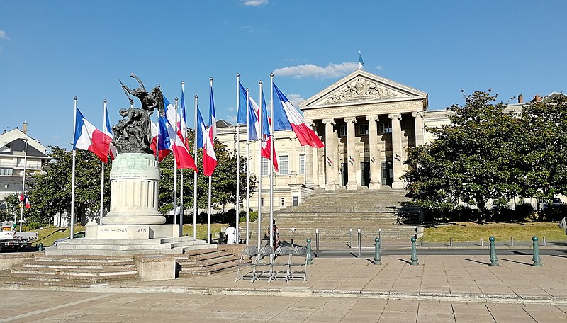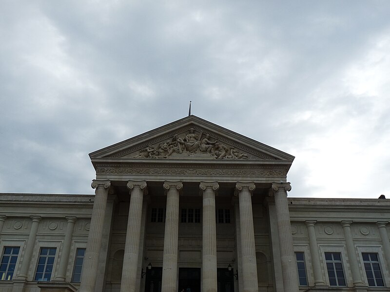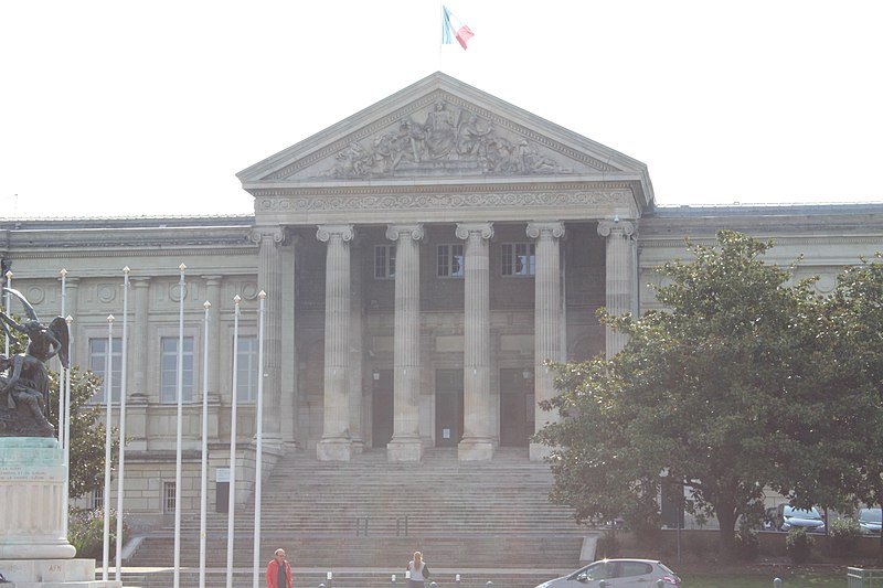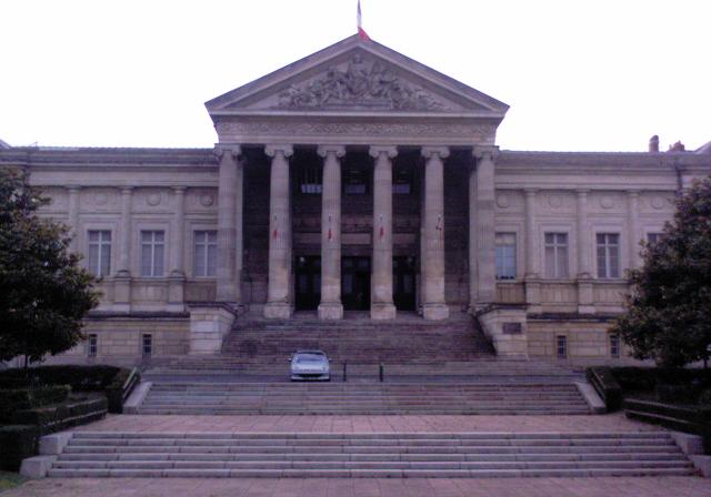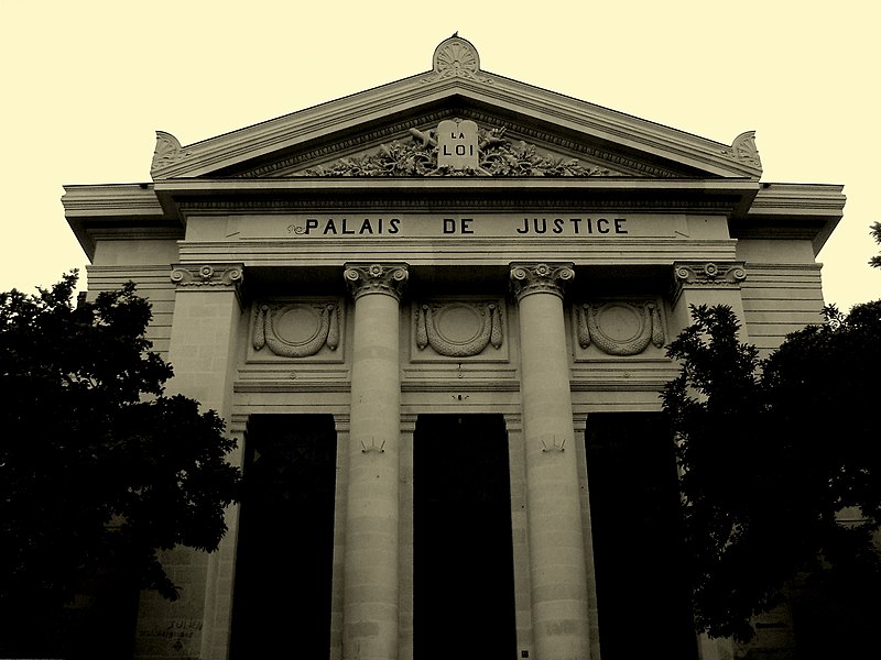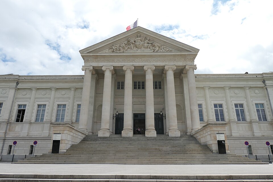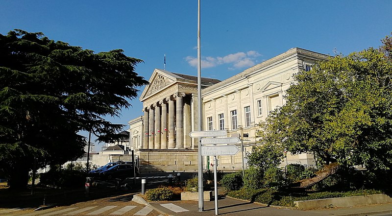 Le palais de justice d'Angers se situe face à la place du Maréchal‑Leclerc, au 1 rue Waldeck‑Rousseau. Conçu à partir de 1863 sur les plans de l'architecte Charles‑Edmond Isabelle, le projet a été mené en maîtrise d'œuvre par son beau‑fils Paul Mültzer Isabelle et le bâtiment a été inauguré en 1875. Il remplace l'ancien présidial de la place des Halles (actuelle place Louis‑Imbach) ; le portail de cet ancien édifice a été déplacé dans les jardins de l'ancien hôpital Saint‑Jean. Les façades et les toitures du palais sont inscrites au titre des monuments historiques depuis le 29 octobre 1975. L'architecture se caractérise par la sévérité des élévations, un avant‑corps rythmé par six colonnes ioniques et un fronton sculpté qui traduit la solennité de l'institution. Disposé de façon à fermer l'esplanade du Champ‑de‑Mars, il s'inscrit dans l'ensemble urbain qui forme aujourd'hui le jardin du Mail. Le bâtiment abrite la Cour d'appel d'Angers et le Tribunal judiciaire. Pour aller plus loin : voir la liste des monuments historiques d'Angers et les ressources en ligne (Mérimée, Structurae, portail d'Angers, portails consacrés à l'architecture et à l'urbanisme, au néo‑classicisme, au droit français et aux monuments historiques).