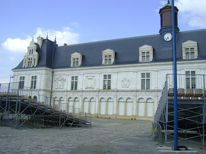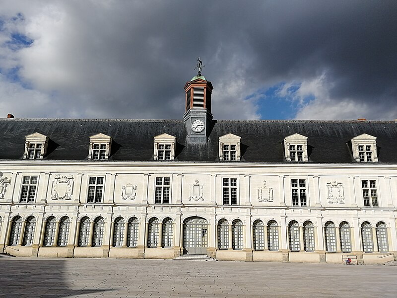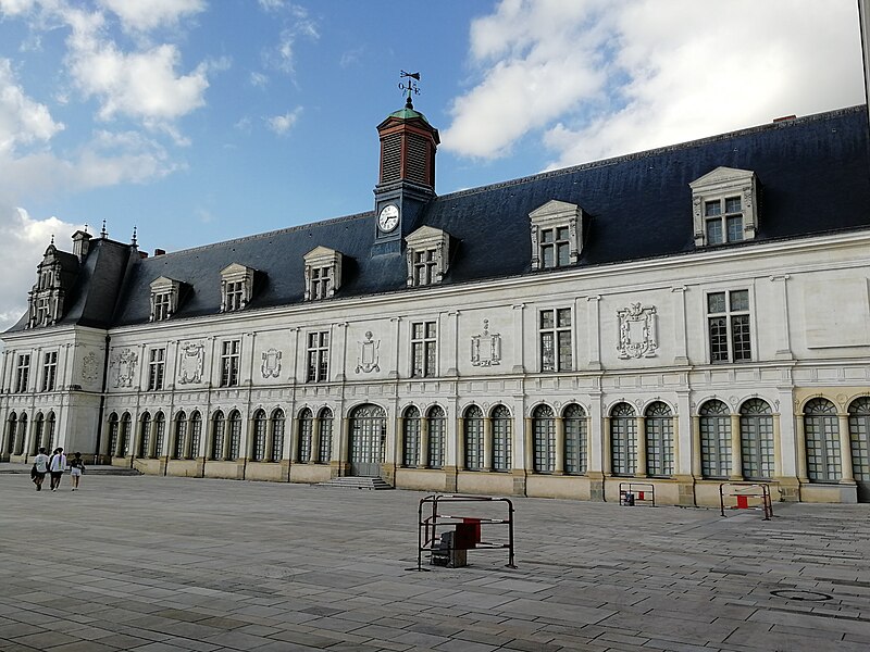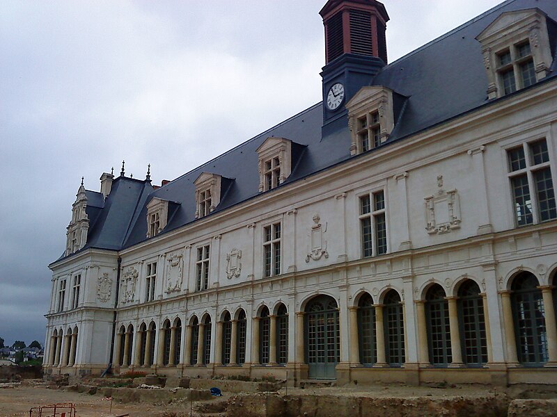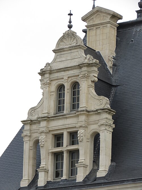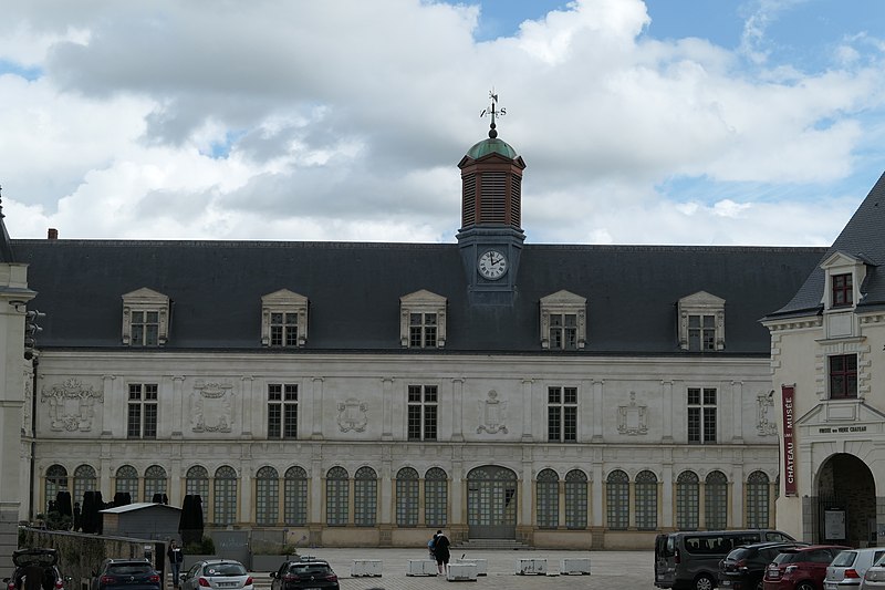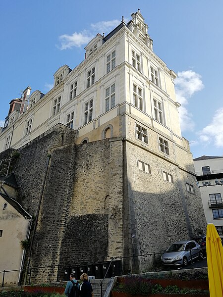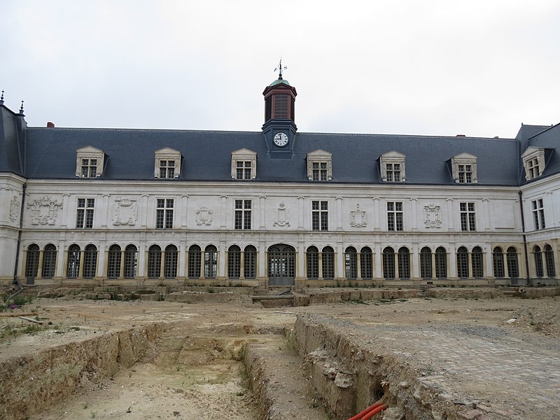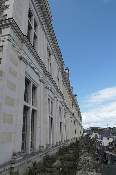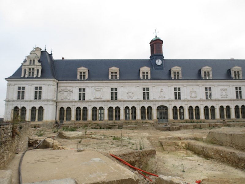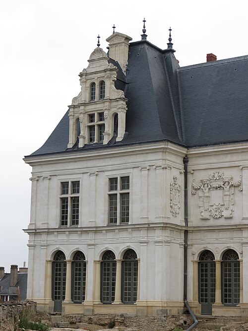 Le Château-Neuf de Laval est une galerie de la Renaissance édifiée pour Guy XVII et dirigée vers 1542 par Jean Garnyer ; elle domine la Mayenne et a été construite en pierre de tuffeau. Conçue comme une promenade privée plus que comme une résidence, la galerie se présente comme un long couloir à deux niveaux, reposant sur une cave voûtée qui s'étend sur toute sa longueur. La travée méridionale côté Mayenne et la façade côté cour respectent les ordres classiques : pilastres ioniques et composites sur la face fluviale, dorique au rez-de-chaussée et ionique à l'étage sur la cour, avec des trumeaux sculptés et des cartouches autrefois armoriés. L'élévation du rez-de-chaussée offre des arcades jumelées en plein cintre et un mur-bahut orné à l'origine de sgraffites ; les arcades géminées du rez-de-chaussée constituent un exemple rare dans l'architecture de la Renaissance française. Le décor sculpté comporte atlantes, putti, figures animales et vases, tandis que des éléments du xixe siècle reprennent la composition des travées du xvie siècle. Au nord se trouvait le pavillon du « cabinet doré » bâti sur la tour de la Poterne, aujourd'hui détruite, et plusieurs pavillons ont été ajoutés ou remaniés aux xviie, xixe et xxe siècles. La ville acquit l'horloge en 1837 et fit édifier son campanile en 1856 ; l'architecte Pierre-Aimé Renous a ensuite réalisé l'aile sud entre 1851 et 1856 et reconstruit le pavillon nord dans les décennies suivantes. L'installation du palais de justice a profondément transformé l'intérieur : la galerie étroite (6,5 m) et longue (53 m) fut cloisonnée en bureaux et les niveaux divisés pour accueillir les services judiciaires, la cour d'assises prenant place dans un pavillon. La façade sur la place de la Trémoille est en pierre de calcaire de taille, le reste de l'édifice étant en moellons enduits ; le campanile est couvert de cuivre. Diverses mutilations anciennes ont affecté la galerie, notamment la réduction des corniches et la suppression du couronnement des fenêtres des combles au début du xixe siècle. Après la Révolution la galerie fut transformée en palais de justice et elle a abrité les tribunaux jusqu'en 1998, date à laquelle les services judiciaires ont déménagé. Les extérieurs ont fait l'objet d'opérations de restauration et l'aile sud a été utilisée comme lieu de stockage, tandis qu'une partie du monument reste étayée en attente d'aménagements intérieurs. Lors des travaux de requalification de la place de la Trémoille en 2012-2013, les grilles et la conciergerie du xixe siècle ont été supprimées pour ouvrir la cour sur l'espace public. La municipalité a exprimé le projet d'y installer un centre d'interprétation de l'architecture et du patrimoine et d'ouvrir le site au public, une réouverture étant envisagée pour 2025. Le Château-Neuf illustre la transition entre l'architecture de la Renaissance et les adaptations ultérieures liées à son usage public, et ses travées restent un témoignage majeur du goût classique cultivé par les comtes de Laval.