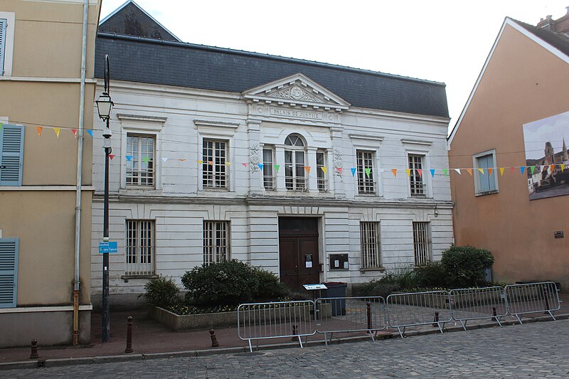 Le Palais de justice d'Étampes, situé place du Tribunal dans l'Essonne, occupe l'ancien palais royal capétien appelé maison du séjour. Les corps principaux datent de la première moitié du XIVe siècle et du XVe ou du XVIe siècle. En 1518, l'édifice a été transformé pour abriter le tribunal, la prison et le logement du receveur. Un bâtiment de la rue de la Juiverie a été reconstruit en 1776-1777 par Michel Gabriel Pommeret, puis remanié. Les corps principaux ont été remaniés par Pierre Toussaint Michau entre 1807 et 1812. La prison a été reconstruite par Pierre Magne en 1846-1848 et démolie en 1978. La façade antérieure du tribunal a été remaniée entre 1890 et 1909 et l'aile postérieure reconstruite en 1891 par Anjubert, tandis que le logement des gendarmes a été remanié au XXe siècle. Le palais conserve une fresque du XIVe siècle. Il est inscrit au titre des monuments historiques par arrêté du 12 novembre 1926. Ces transformations successives reflètent son rôle judiciaire et son évolution architecturale au fil des siècles.