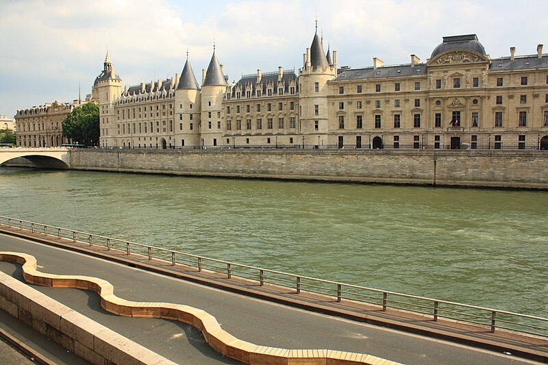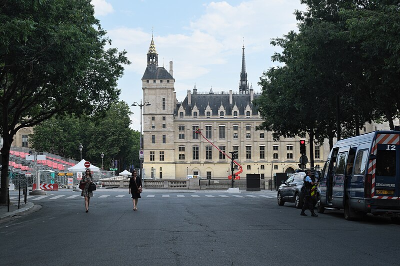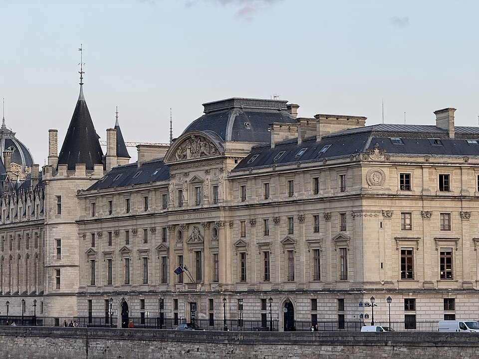 Le Palais de Justice, associé à la Conciergerie, est situé sur l’île de la Cité dans le 1er arrondissement de Paris et occupe une emprise d’environ quatre hectares. Il entoure la Sainte-Chapelle, est attenant au 36 quai des Orfèvres et voisin du tribunal de commerce, de la préfecture de police et du Barreau de Paris. Il abrite la Cour de cassation, la cour d'appel de Paris et la cour d'assises spéciale, tandis que le Tribunal judiciaire de Paris y était installé avant son déménagement en 2018 vers le nouveau Tribunal de Paris. Issu de la curia regis, le Palais de Justice prend place au sein du Palais de la Cité, résidence des rois de France du Xe au XIVe siècle, dont subsistent la grande salle et sa cuisine, la Conciergerie, la Sainte-Chapelle, plusieurs tours et l’emprise d’anciens bâtiments. Lorsque le roi Charles V transféra sa résidence à l’hôtel Saint-Pol, les institutions judiciaires restèrent à la Cité, notamment le parlement de Paris, la Chambre des comptes et la Chancellerie. Le palais a été frappé à plusieurs reprises par des incendies qui ont détruit ou endommagé des parties importantes : la salle des pas perdus en 1601, la Grand’Salle en 1618 dont la reconstruction fut confiée à Salomon de Brosse, la flèche de la Sainte-Chapelle en 1630, la Cour des comptes en 1737 et un secteur entre la Conciergerie et la Sainte-Chapelle en 1776. La façade principale donnant sur la cour du Mai fut reconstruite en style néo‑classique avec colonnade à la fin du XVIIIe siècle et la grille monumentale ouvragée en fer forgé réalisée par le serrurier Bigonnet date de 1776. Sous la Révolution, le palais hébergea le Tribunal révolutionnaire, remplacé ensuite par le Tribunal de cassation. À partir de la Restauration puis sous la monarchie de Juillet et le Second Empire, l’augmentation des affaires judiciaires entraîna d’importants travaux d’agrandissement et de restauration, menés à partir d’un projet confié à Jean‑Nicolas Huyot puis repris par Joseph‑Louis Duc et Étienne‑Théodore Dommey. Les travaux, modifiés en 1846, se poursuivirent sous Napoléon III et furent illustrés par des sculptures comme celles de Charlemagne et Philippe Auguste réalisées par Henri Lemaire en 1860. Le chantier, presque achevé, fut ensuite ravagé par l’incendie allumé par la Commune en 1871, ce qui entraîna une reprise des travaux confiée après 1879 à Honoré Daumet ; la Conciergerie fut achevée lors de cette reprise et de nouveaux plans furent dressés en 1883. Depuis 1914, le palais n’a pas connu de travaux d’une pareille ampleur, mais il a été transformé au XXe siècle, notamment par la démolition en 1907 des maisons du quadrilatère pour une extension conçue par Albert Tournaire. La façade sud porte encore des impacts de balles de la Libération d’août 1944 et une fissure dans une verrière, visible en 2018, résulte d’un coup de feu tiré en 1975 lors de l’évasion de Jean‑Charles Willoquet. Après les attentats de 1986, des mesures de sécurité modifièrent l’organisation du palais, avec la fermeture de l’accès direct depuis la station de métro Cité. En 2009, le palais restait le centre névralgique de l’ordre judiciaire français en accueillant la Cour de cassation, la cour d’appel de Paris, le tribunal de grande instance alors présent, ainsi que les services du parquet et de nombreux locaux pour les avocats. Le tribunal de grande instance occupait, en plus d’espaces au palais, plusieurs annexes pour des services spécialisés et les avocats disposaient d’environ 4 500 m² de bibliothèques, vestiaires et bureaux. Trois lieux de détention existaient au palais : le « dépôt » sous le contrôle de la préfecture de police pour les personnes à l’issue de la garde à vue, la « souricière » sous la responsabilité de l’administration pénitentiaire comprenant 75 cellules, et un centre de rétention administrative pour les personnes en situation irrégulière ; le palais recevait chaque jour environ 13 000 personnes. La question du déménagement du tribunal de grande instance, discutée depuis la fin des années 1990, aboutit au choix du site des Batignolles et au transfert progressif qui vit l’installation du nouveau Tribunal de Paris en 2018, tandis que la direction régionale de la police judiciaire quitta le 36 quai des Orfèvres pour rester voisine au 36 rue du Bastion. En décembre 2016, un rapport proposa de renforcer l’attractivité culturelle et touristique de l’île de la Cité en transformant la cour du Mai et la Galerie en pôle public reliant la Conciergerie et la Sainte‑Chapelle, avec la couverture de certaines cours par des verrières. La rénovation prévue vise à améliorer l’accueil de la Cour de cassation et de la cour d’appel de Paris : la Cour de cassation doit réinvestir la grand‑chambre et y installer la chambre sociale, avec un calendrier de réhabilitations par quartiers étalé entre 2021 et 2040. Une construction provisoire installée dans la salle des pas perdus après treize mois de travaux en 2020‑2021, et prévue pour être démontée en 2025, a accueilli plusieurs grands procès liés aux attentats, à l’affaire du Mediator et à l’assassinat de Samuel Paty, tandis que le procès des attentats de janvier 2015 s’est tenu en 2020 au nouveau palais. Le Palais de Justice a également servi de lieu de tournage pour de nombreux films, du Clan des Siciliens à J’accuse et Le Comte de Monte‑Cristo, et pour des séries telles qu’Alice Nevers, Boulevard du Palais ou Engrenages.