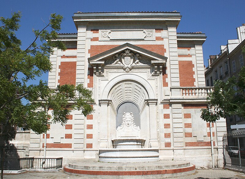 Pour l'angle formé par les rues de la Bibliothèque et des Trois-Mages, l'annexe donnant sur un jardin public reçoit une fontaine sculptée par Jules Cavalier, dotée d'une perspective en trompe-l'œil et d'un masque à l'antique. Dans ce jardin se trouvait autrefois une colonne de granit provenant de l'abbaye de Saint-Victor, surmontée du génie de la santé par Barthélémy-François Chardigny, figure d'un amour joufflu relevant un flambeau et couronnant les noms des héros de la peste de 1720.