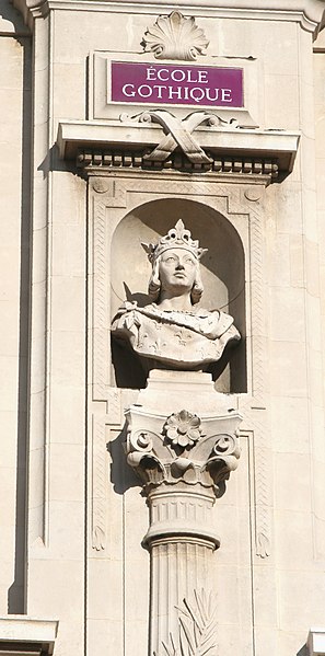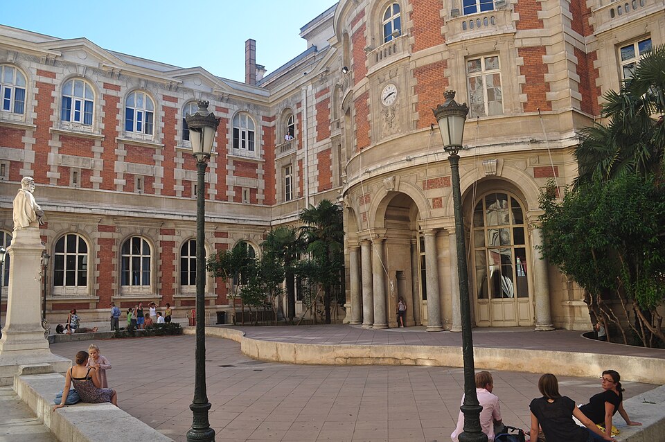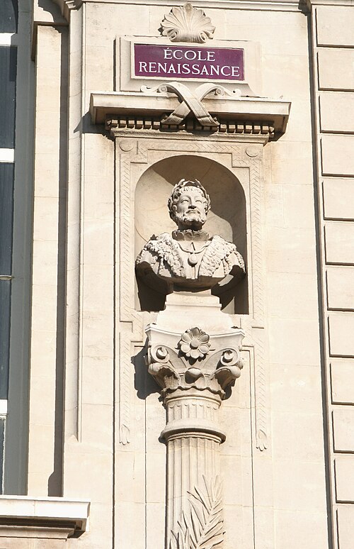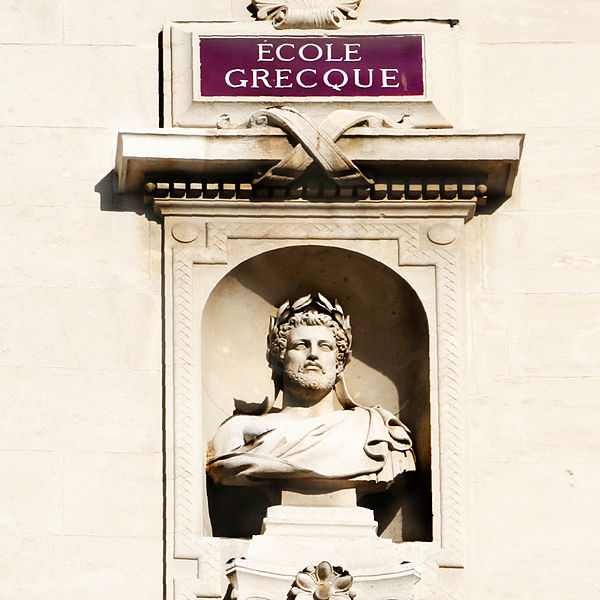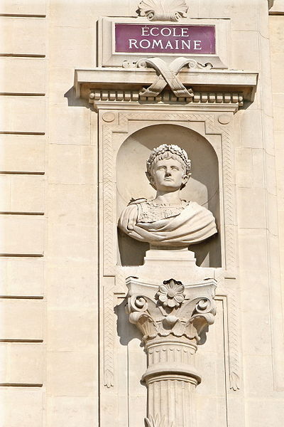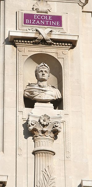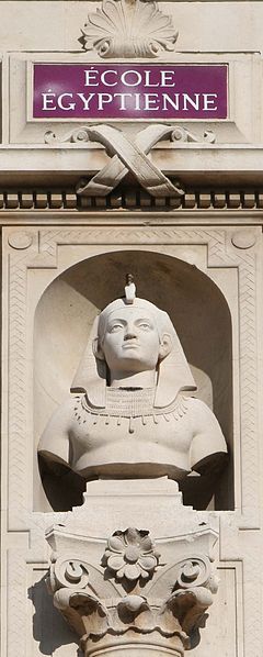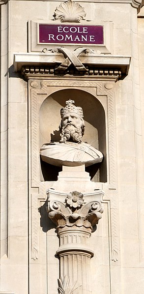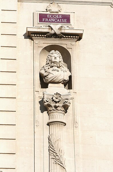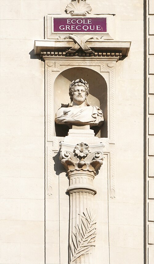 Espérandieu a également inscrit sur la façade les grandes époques de l'art par une série de dix bustes, chacun soutenu par un piédouche ionique orné d'une palme et surmonté, dans un tympan, de la représentation d'une œuvre emblématique ; ces bustes figurent Sésostris, Périclès, Auguste, Constantin, Charlemagne, Saint-Louis, Léon X, François Ier, Louis XIV et Napoléon Ier. Dans la cour d'honneur, construite en petites briques rouges et pierre, un hémicycle en saillie est soutenu par des colonnes en granit du lac Majeur ; en face se dresse le monument commémoratif à Espérandieu, réalisé après un concours national financé par souscription, avec un buste d'André-Joseph Allar et un piédestal orné de médaillons par Joseph Letz représentant les principales réalisations de l'architecte. Sous les fenêtres, des cartouches portent les noms de grands architectes, sculpteurs et peintres, parmi lesquels figurent Brunelleschi, Bramante, Michel-Ange, Le Titien et Rembrandt.