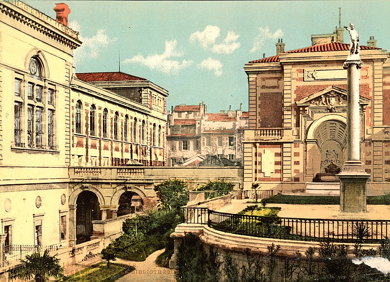 Avant la construction, les locaux de l'ancien couvent des Bernardines abritaient, à partir de 1802, le lycée impérial, la bibliothèque municipale, l'École des beaux-arts, l'Académie de Marseille et le musée des Beaux-Arts ; la croissance des effectifs rendit nécessaire leur relogement. Une convention signée le 22 juillet 1859 prévoyait la rétrocession des locaux au lycée et la remise à la mairie d'un terrain dit du « talus » ; face à l'insuffisance de cette parcelle, le conseil municipal décida de regrouper certaines institutions au plateau Longchamp et d'édifier sur le talus un bâtiment pour la bibliothèque et l'École des beaux-arts. La bibliothèque, constituée d'ouvrages issus de communautés religieuses après la Révolution, et l'École des beaux-arts, fondée au XVIIIe siècle puis reconstituée en 1796 sous le nom d'école de dessin, trouvèrent ainsi leur nouvel emplacement.