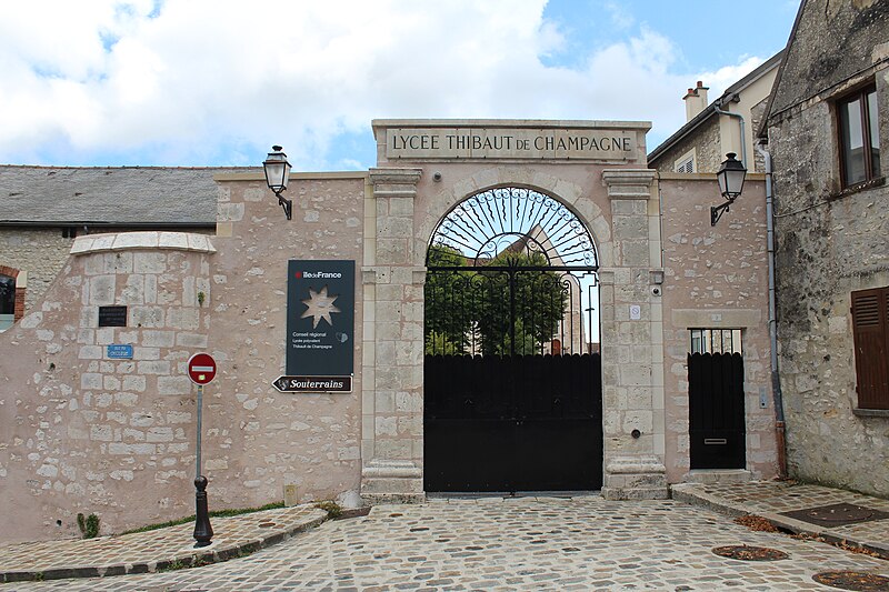 L'ensemble correspond pour grande part aux vestiges du palais des comtes de Champagne, situé dans la ville haute de Provins. Il réunit le portail d'accès au lycée, issu des aménagements des oratoriens, l'enceinte médiévale du palais, des jardins et glacis, des murs de soutènement et les terrasses des jardins. Le bâtiment des oratoriens, appelé « dortoir Thibault », ferme la cour à l'est, tandis que la chapelle, l'une des plus anciennes chapelles palatiales à deux niveaux, en occupe une place centrale. À l'angle sud se trouve le bâtiment dit « logis comtal » ou « grande salle neuve », attribué au XIIIe siècle et conservant des traces de décors peints dans les combles. Le quartier canonial, au sud‑ouest de la cour, comprend une maison désignée ancien tribunal ecclésiastique ou chapelle Sainte‑Lucence, et au nord‑ouest se trouve l'ouvrage souterrain dit « cave aux chevaux ». La position en éperon barré du site en a fait un lieu administratif et militaire dès l'époque carolingienne ; une « tour du comte » est mentionnée en 1137 et le « palais du comte » en 1161, lorsque Provins jouait le rôle de seconde capitale des comtes de Champagne. L'édifice a été construit aux XIIe et XIIIe siècles par Henri Ier le Libéral pour les comtes de Champagne. En 1670, il a été confié aux oratoriens pour y établir un collège ; des restructurations en 1671, 1883 et 1963 ont fortement modifié son aspect. La grande salle a disparu, mais la chapelle et l'aile en retour conservent une partie de leur élévation ancienne. Aujourd'hui, le site abrite une partie du lycée Thibaut‑de‑Champagne et l'édifice est inscrit au titre des monuments historiques.