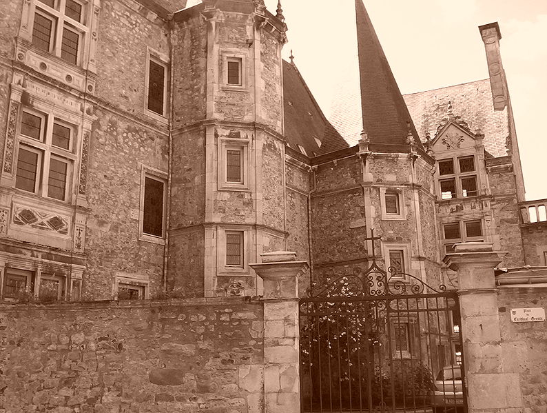 Élevé à partir des années 1520 pour un membre du Chapitre Saint-Julien, sa construction, étirée sur plus de vingt ans, a pu s'achever grâce à une transaction du 30 décembre 1542 entre Anselme Taron, héritier de Jacques de Courthardy, et le chapitre ; la pleine propriété fut acquise l'année suivante. Dès son achèvement, la maison canoniale fut louée au chanoine M. de Quincé contre un loyer annuel. Après le sac de la cathédrale en 1562, une salle capitulaire y fut installée, et en 1567 ses greniers servirent au stockage de grains pour le ravitaillement de la ville. Divers chanoines et dignitaires s'y succédèrent : Anselme Taron s'y installa en 1572, puis Étienne Roy, qui y mourut en 1579. En 1585 la ville devint locataire et y logea le gouverneur de la province. En 1612 le maréchal de Lavardin y reçut le jeune Louis XIII et sa mère Marie de Médicis, cette dernière y ayant été hospitalisée. Après le passage de plusieurs gouverneurs, qui laissèrent parfois le bâtiment en mauvais état, la ville dut rembourser des sommes au chapitre. Lorsque le fils du duc de Tresmes renonça à s'installer, le chapitre y relogea deux de ses membres jusqu'en 1791.