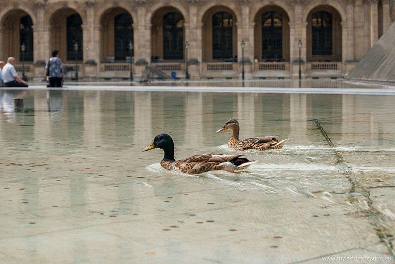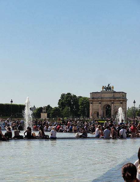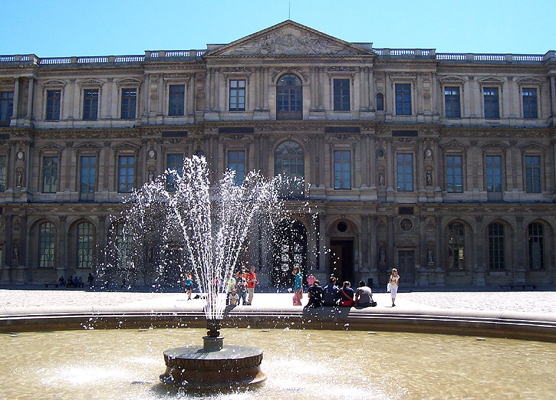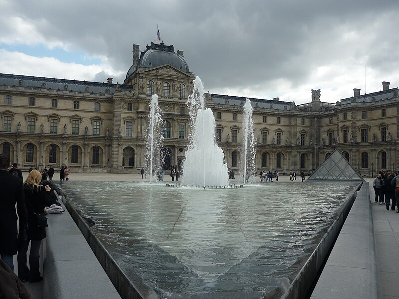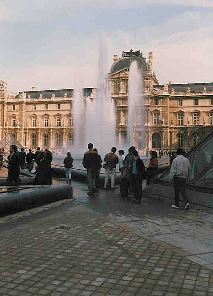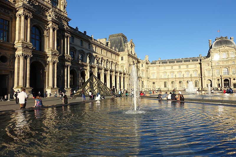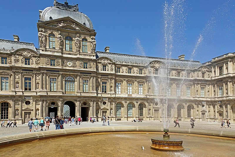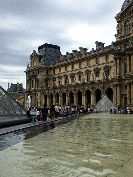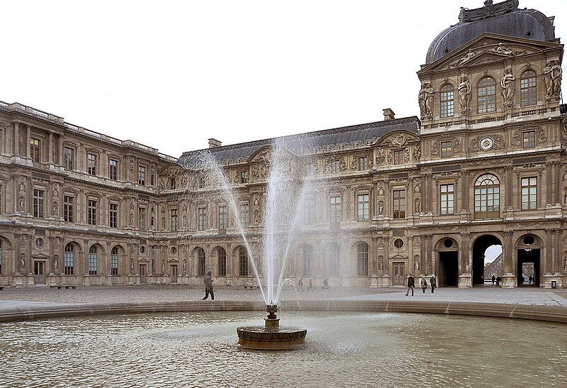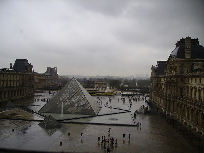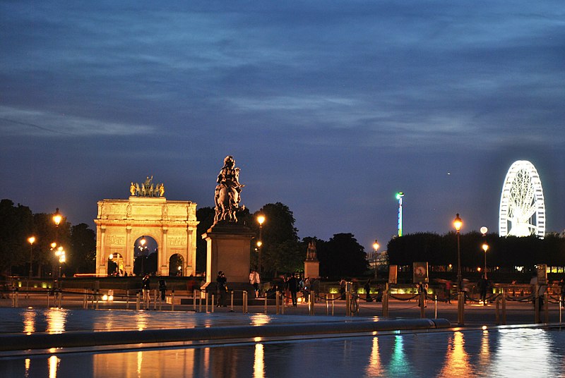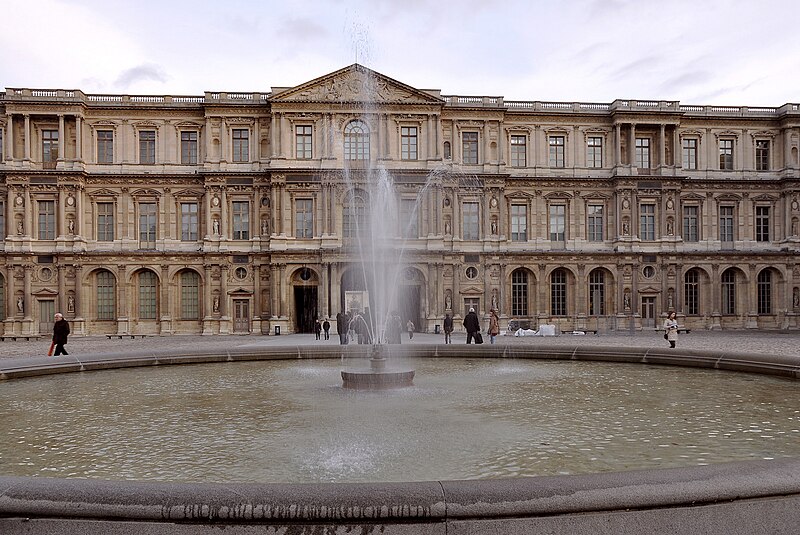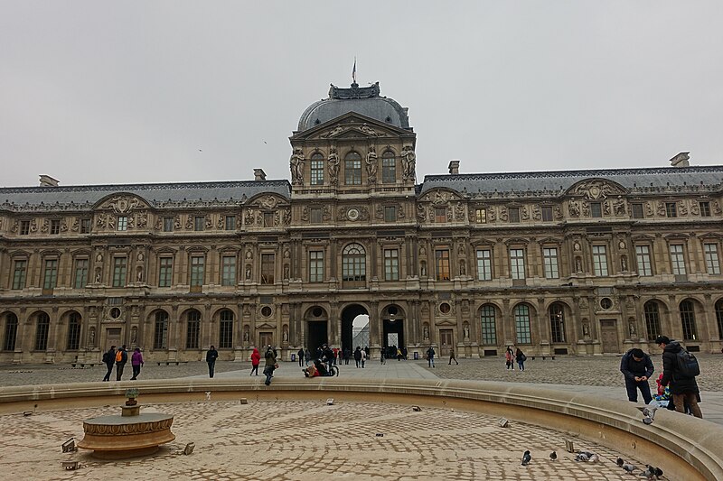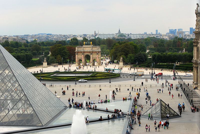 L'arc du Carrousel date du premier quart du XIXe siècle ; il a été conçu par Percier et Fontaine. Le palais du Louvre, ancien palais royal situé dans le 1er arrondissement de Paris sur la rive droite de la Seine, s'étend entre le jardin des Tuileries et l'église Saint-Germain-l'Auxerrois. Résidence des souverains français du Moyen Âge au Second Empire, il accueille depuis le XVIIIe siècle le musée du Louvre, ainsi que le musée des Arts décoratifs et l'École du Louvre. La construction de cet ensemble architectural, indissociable de l'histoire de Paris, s'étend sur plus de huit cents ans. Édifié d'abord comme forteresse dans l'enceinte de Philippe Auguste, le château du Louvre devint résidence et symbole du pouvoir royal sous Charles V, abritant la bibliothèque et le Trésor. À la Renaissance, le donjon médiéval fut progressivement démoli et François Ier introduisit des formes nouvelles d'architecture à Paris en confiant des travaux à Pierre Lescot. Henri IV poursuivit le « Grand Dessein » en réunissant le Louvre et les Tuileries par la Grande Galerie, et ses successeurs développèrent la Cour carrée, tandis que Louis XIV fit réaliser la monumentale colonnade orientale. Après le transfert de la Cour à Versailles, le palais conserva des collections et des académies, et le projet d'ouvrir au public les chefs-d'œuvre de la Cour, issu du siècle des Lumières, fut accompli par la Révolution avec l'inauguration du musée en 1793. Le Louvre-musée se développa ensuite tandis que le palais des Tuileries resta la résidence des chefs d'État ; Napoléon III acheva la réunion des deux ensembles par une aile le long de la rue de Rivoli, mais le palais des Tuileries fut incendié pendant la Commune et ses ruines rasées, laissant le Louvre ouvert sur le jardin des Tuileries. Les aménagements du Grand Louvre dans les années 1980 et 1990 ont recentré le palais sur sa vocation muséale : une entrée souterraine signalée par la pyramide de verre d'I. M. Pei mène à un hall central, un centre commercial a été créé et d'importants vestiges médiévaux ont été mis au jour. Avec 10,2 millions de visiteurs en 2018, dont la majorité d'étrangers, le Louvre est le musée le plus visité au monde ; il couvre aujourd'hui 210 000 mètres carrés, ce qui en fait le plus grand palais d'Europe occidentale. L'origine du nom Louvre renvoie au bas-latin Lupara et au latin lupus, évoquant selon certaines analyses un lieu fréquenté par les loups ; d'autres hypothèses invoquent des origines celtiques, des termes germaniques signifiant « tour de guet » ou encore une dérivation de roboretum, « bois de chêne rouvre ». Le Louvre médiéval occupait le quart sud‑ouest de l'actuelle cour Carrée et, construit par Philippe Auguste pour renforcer la défense de Paris, comprenait une grosse tour centrale entourée d'une enceinte renforcée de tours et de fossés. La tour servit aussi de prison pour des personnalités et le château fut agrandi sous Louis IX par des salles non défensives ; il prit un caractère plus résidentiel sous Charles V, qui y fit aménager les ailes et installer une riche bibliothèque. La bibliothèque royale, organisée en plusieurs pièces et décrite comme contenant près de mille manuscrits, fut conservée avec grand soin dans la tour de la Librairie et contribue à faire du Louvre un lieu de savoir. À partir du XVIe siècle Pierre Lescot éleva une aile de style Renaissance et créa une façade et un décor nouveaux, introduisant notamment la mansarde ; l'œuvre de Lescot, poursuivie sous Henri II, devint un classique de l'architecture française. Catherine de Médicis fit édifier le palais des Tuileries et aménager des jardins ; les guerres de religion ralentirent cependant les travaux et laissèrent subsister des parties médiévales du château. Aux XVIIe et XVIIIe siècles, le projet du Grand Dessein fut repris à plusieurs reprises par Henri IV, Louis XIII, Louis XIV et leurs ministres et architectes, aboutissant notamment à la Grande Galerie et à la colonnade de la façade orientale, œuvre collective à laquelle Claude Perrault participa. Abandonné comme résidence royale au profit de Versailles, le Louvre connut des usages institutionnels, hébergea académies et ateliers d'artistes, puis fit l'objet de campagnes de restauration et d'aménagement sous divers surintendants, tandis que la question d'un musée public gagnait en importance. La Révolution transforma le palais en musée national, rassemblant et protégeant des œuvres confisquées au clergé et aux émigrés, et le Louvre devint un lieu pédagogique ouvert au public, objet de débats muséographiques et conservatoires animés par des figures comme David et Lebrun. Sous les régimes impériaux et royaux du XIXe siècle, les architectes Percier, Fontaine, Visconti puis Lefuel poursuivirent les travaux : la cour Carrée fut achevée, la grande galerie et des façades furent décorées et la réunion physique du Louvre et des Tuileries fut enfin réalisée au Second Empire. Après l'incendie des Tuileries en 1871 et la décision républicaine de raser ses ruines, le palais demeura centre culturel et administratif, et des projets ultérieurs ont varié entre reconstruction et conservation de l'état ouvert sur le jardin des Tuileries. Des interventions modernes ont aussi modifié le site : la recréation des fossés devant la colonnade dans les années 1960 fit l'objet de controverses, et le programme du Grand Louvre des années 1980 a transformé l'accès et l'organisation du musée. Aujourd'hui le palais abrite, outre le musée du Louvre, les Arts décoratifs, l'École du Louvre, le Centre de recherche et de restauration des musées de France, des galeries commerciales et des espaces d'exposition, et il reste un lieu central du patrimoine et de la vie culturelle parisienne. L'esplanade du palais a par exemple servi en 2017 de lieu de célébration de la victoire pr