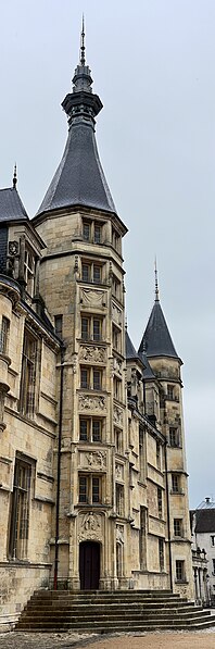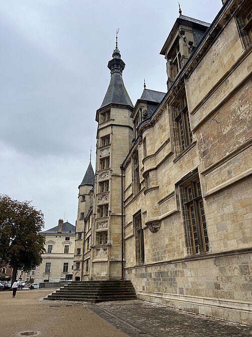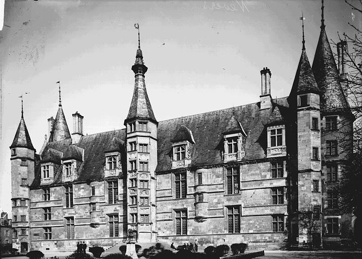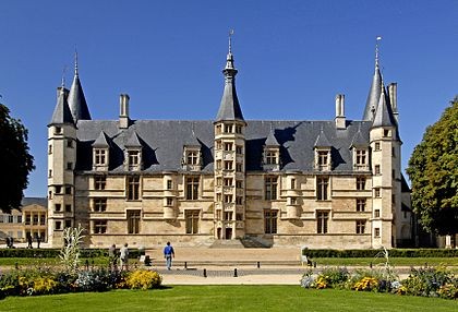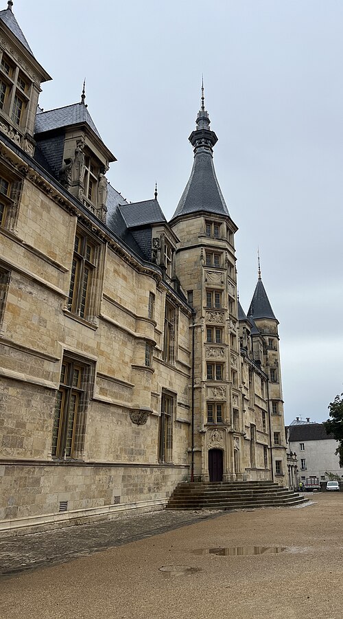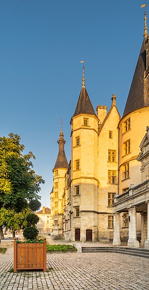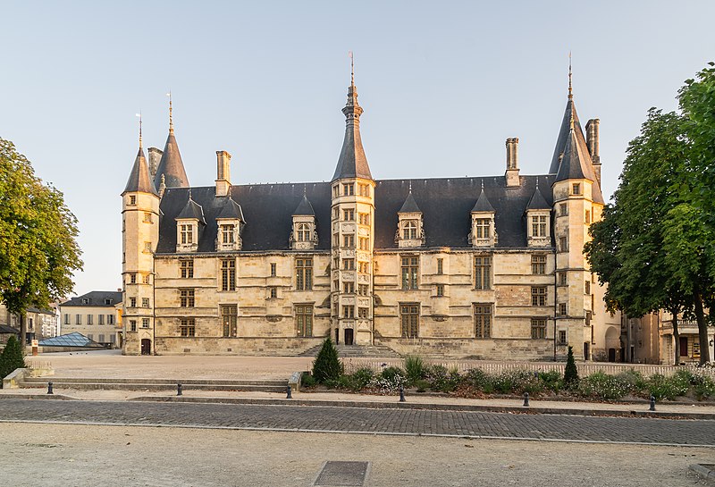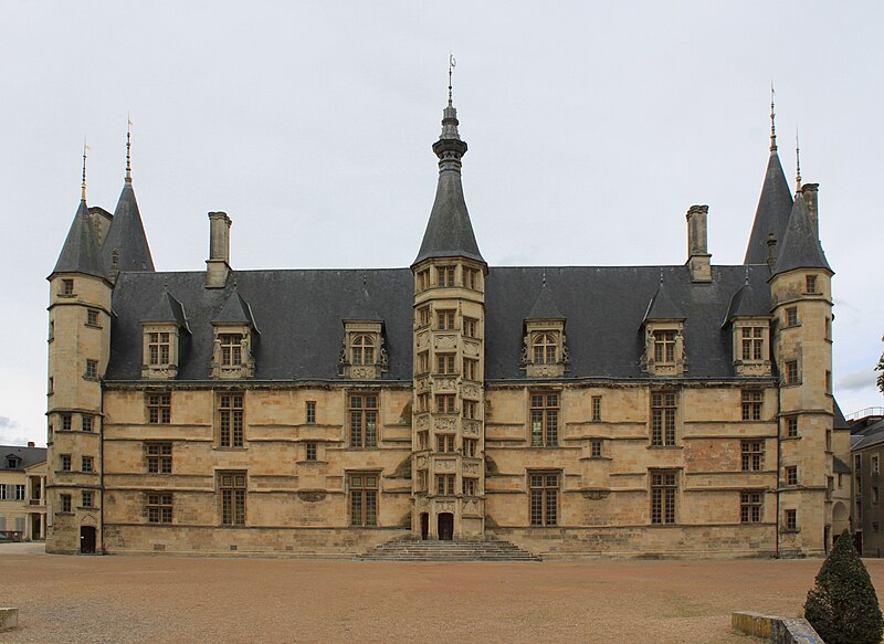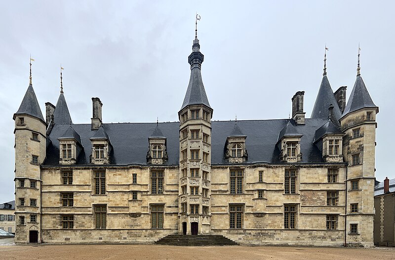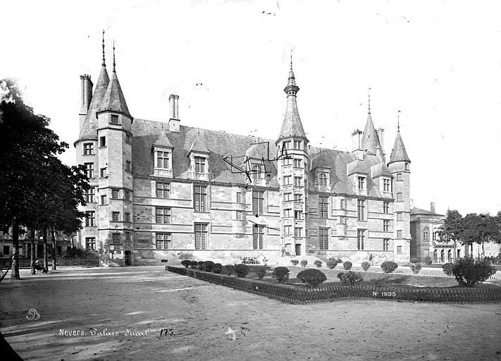Le Palais ducal de Nevers, château des XVe et XVIe siècles situé à Nevers (Nièvre), est classé au titre des monuments historiques par la liste de 1840. Perché sur la butte qui domine le centre de la vieille ville, il est considéré comme le premier des châteaux de la Loire ; sa large façade Renaissance, encadrée de tourelles polygonales, donne sur la place de la République et un vaste parc. Édifié pour Jean de Clamecy en lieu et place d’une ancienne forteresse, l’édifice conserve deux grosses tours postérieures, les plus anciennes, datant du XVe siècle, tandis que la famille de Clèves le remania au XVIe siècle en y ajoutant notamment le splendide escalier d’honneur logé dans la tourelle centrale. On note une harmonie de proportions entre la façade ocre et les toitures d’ardoise ; depuis le château, une longue esplanade bordée d’arbres s’étire jusqu’aux bords de la Loire qu’elle surplombe, offrant un joli panorama. Héritière du dernier duc de Nevers, Mme de Cossé-Brissac vend le palais et ses dépendances à la ville et au département en 1810 ; le bâtiment est alors partagé entre la mairie et le tribunal de justice. En 1850, la municipalité s’installe dans un nouvel hôtel de ville conçu par Paillard et la justice occupe désormais la totalité du palais, qu’elle transforme profondément pour répondre à ses besoins fonctionnels ; la distribution intérieure et la décoration des salles sont remaniées, ainsi que la façade, qui, entièrement restaurée et rapprochée de son état primitif, reçoit des sculptures conçues par François Jouffroy. À la fin des années 1970, la ville propose le transfert du palais de justice dans l’ancien palais épiscopal et lance un nouveau programme de restauration visant à conserver la distribution du XIXe siècle tout en ajoutant un escalier monumental à l’extrémité ouest et une entrée latérale réalisée avec des matériaux contemporains associés aux décorations antérieures. Restauré sur ordre de Pierre Bérégovoy dans les années 1980, le palais abrite aujourd’hui l’hôtel de ville (bureau du maire et salle des conseils), une partie de l’office de tourisme, des salles d’expositions et de réception, une exposition permanente sur l’histoire et les atouts de la ville (Formule 1, faïence, etc.) ainsi qu’un aquarium consacré aux poissons ligériens. Des fouilles menées pendant la restauration, principalement en 1988, ont mis au jour de nombreuses pièces d’artillerie ; l’une d’elles, une pièce du XIVe siècle dite « chambre à poudre de veuglaire », est conservée au dépôt archéologique municipal de Nevers et constitue une pièce unique en France. Le 4 mai 1993, devant le Palais ducal, le président de la République François Mitterrand prononça l’éloge funèbre de Pierre Bérégovoy, discours resté célèbre pour cette phrase : « Toutes les explications du monde ne justifieront pas qu'on ait pu livrer aux chiens l'honneur d'un homme et finalement sa vie au prix d'un double manquement de ses accusateurs aux lois fondamentales de notre République : celles qui protègent la dignité et la liberté de chacun d'entre-nous. »