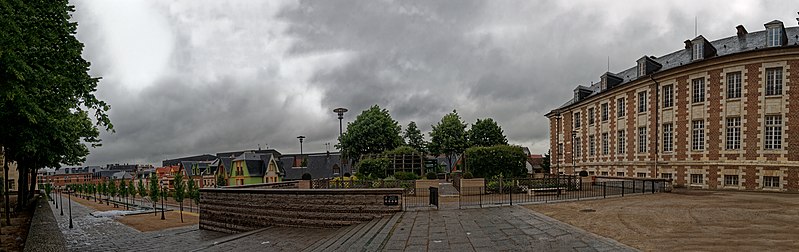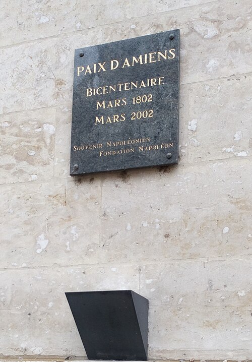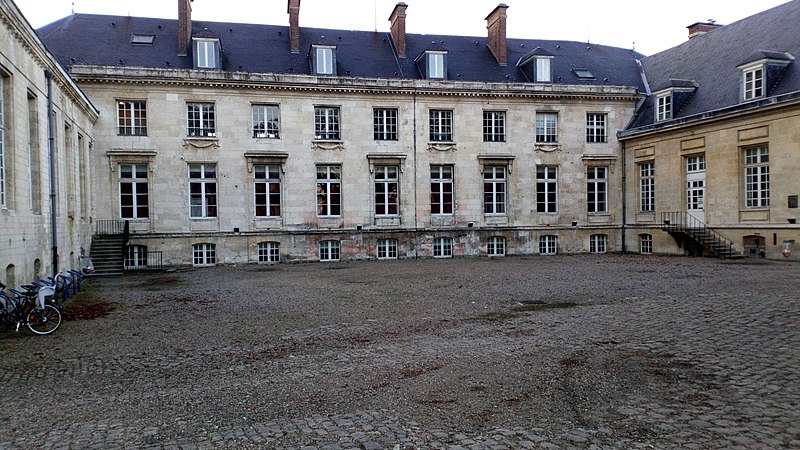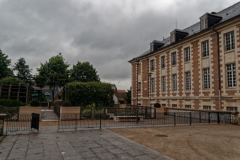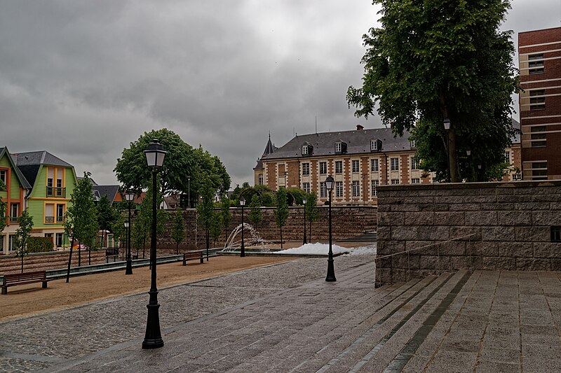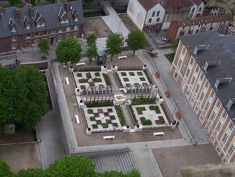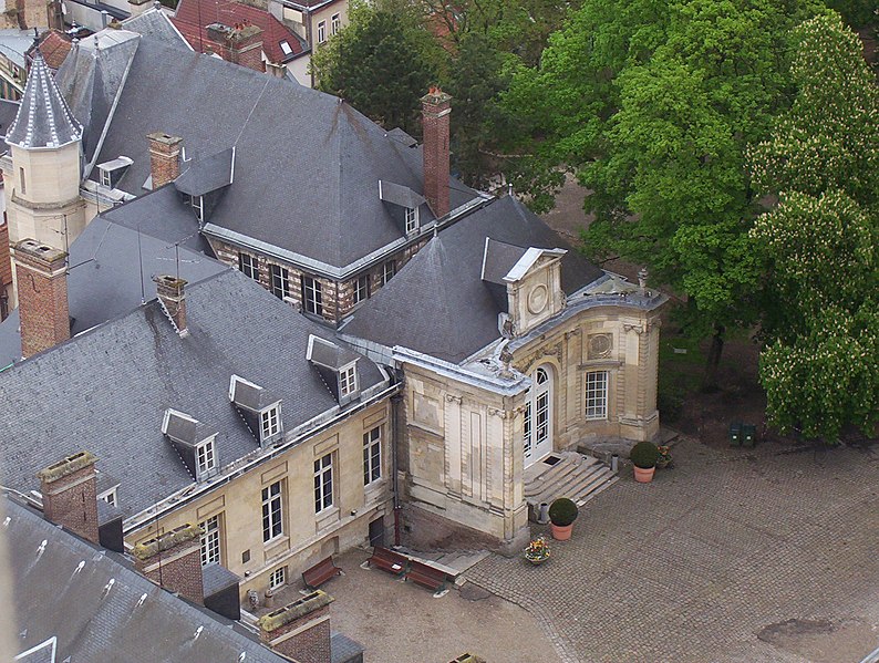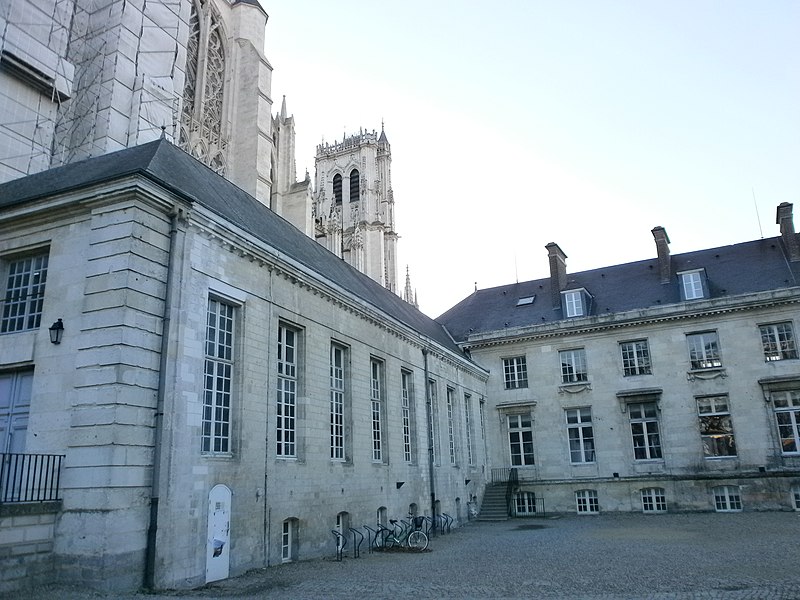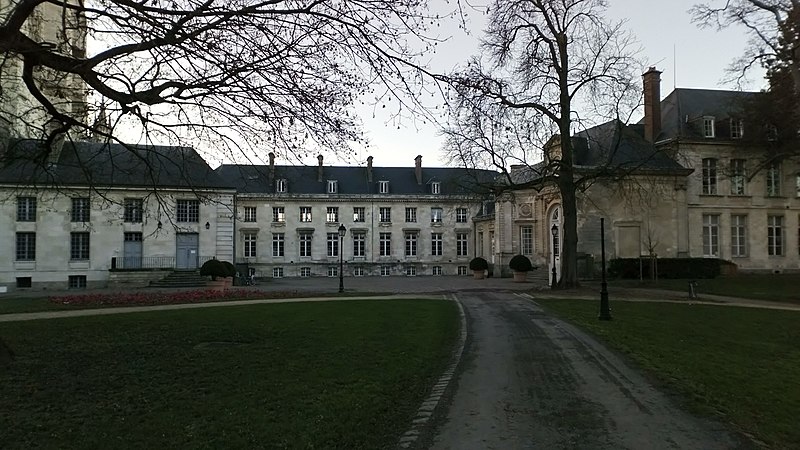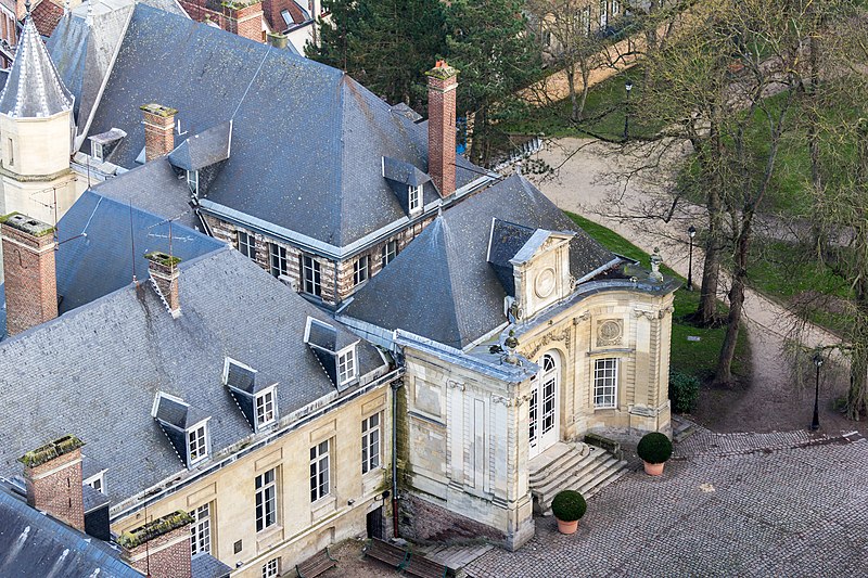 L'ancien évêché d'Amiens, situé dans le parc de l'Évêché près de la cathédrale Notre‑Dame, est l'ancienne résidence des évêques de la ville. Bâti au XIIIe siècle au fond d'un parc, il jouxte la face nord de la cathédrale et fut occupé par l'évêque et ses services jusqu'en 1906. En 1508, les célèbres stalles du chœur, chef‑d'œuvre de sculpture sur bois comportant 4 700 figurines, furent sculptées dans un atelier de l'évêché par six maîtres huchiers, ajustées sur place et assemblées par tenons et mortaises entre 1508 et 1519; deux stalles maîtresses de 13,50 m, destinées respectivement à l'évêque et au roi, furent financées par le doyen Adrien de Hénencourt. L'évêque de l'époque, François de Halluin, fit refaire la flèche de la cathédrale entre 1528 et 1530 et fut ensuite tué par un sanglier, selon les sources mentionnées. Le palais, édifié en même temps que la cathédrale, connut une première destruction à la fin du XVIIe siècle puis fut presque entièrement reconstruit par François Lefebvre de Caumartin au cours du XVIIe siècle. Le roi Louis XIII y logea en 1638 et Louis XIV y séjourna en 1667. Un incendie menaça gravement le palais le 19 décembre 1762 et le logis de l'évêque Louis‑François‑Gabriel d'Orléans de la Motte fut complètement brûlé; à droite du péristyle se trouvait alors une chapelle qui fut détruite en 1802 sous l'épiscopat de Jean de Villaret. Conformément à la loi de nationalisation des biens de l'Église, la cathédrale et le palais passèrent à l'État après 1789; l'évêché fut successivement occupé par des évêques nommés en vertu de la constitution civile du clergé jusqu'au Concordat de 1801. Le palais reçut encore Bonaparte, alors Premier Consul, en 1803, puis Napoléon III pour l'inauguration de la chapelle Sainte‑Théudosie en 1854. La fonction épiscopale cessa le 17 janvier 1906 à la suite de la loi de séparation des Églises et de l'État: Jean‑Marie Dizien dut quitter la demeure, l'évêché étant transféré rue de Constantine, aujourd'hui rue Jean‑XXIII. Longtemps laissé à l'abandon, le bâtiment hébergea divers services municipaux; il aurait été proposé par le général de Gaulle en 1945 pour réaffectation au diocèse, proposition que Lucien Martin aurait refusée. Après 1946, l'ancien évêché accueillit l'École de médecine, l'École de droit et un bureau de bienfaisance. Par arrêté du 16 décembre 1965, les façades et toitures de l'ensemble des bâtiments ainsi que le jardin furent inscrits au titre des monuments historiques. En 1966, l'École supérieure de commerce d'Amiens s'y installa; aujourd'hui les locaux abritent le Groupe Sup de Co Amiens Picardie. Le bâtiment, en brique et pierre, a la forme d'un L dont l'extrémité orientale est occupée par l'entrée d'honneur. Le péristyle, reconstruit par François Faure et portant la date 1684 sur son fronton, assure la desserte des bâtiments et bénéficie depuis peu d'une illumination. Le corps de logis qui borde à l'est le bas parvis fut élevé au XVIIIe siècle par Louis‑Charles de Machault d'Arnouville, dernier évêque avant la Révolution.