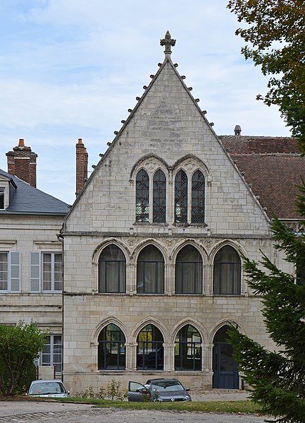 Guy de Mello, évêque au milieu du XIIIe siècle, fit construire au‑dessus des celliers une vaste salle synodale avec un pignon ogival à trois niveaux ; l'étage inférieur était voûté en pierre, les étages supérieurs formaient un vaste espace couvert d'un berceau en bois et éclairé par de grandes fenêtres ogivales et des lancettes. Il édifia en outre une double chapelle palatine dédiée à Saint‑Nicolas, surmontée d'une tourelle, reconstruisit la chambre épiscopale et fit border la demeure, côté Yonne, de remparts crénelés et de tourelles, aujourd'hui disparus.