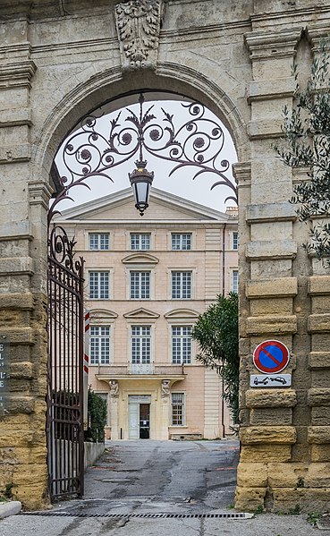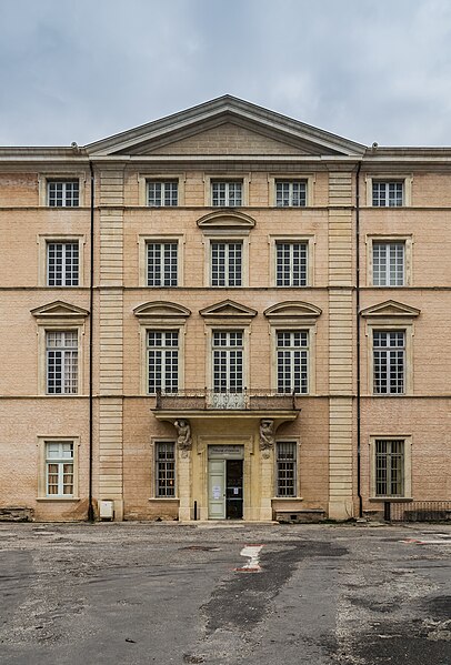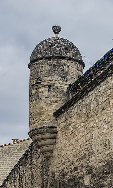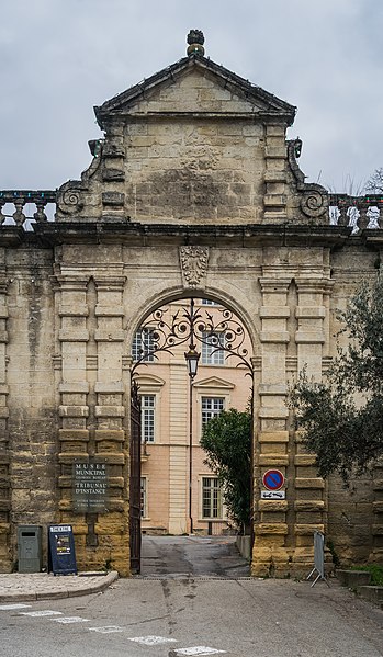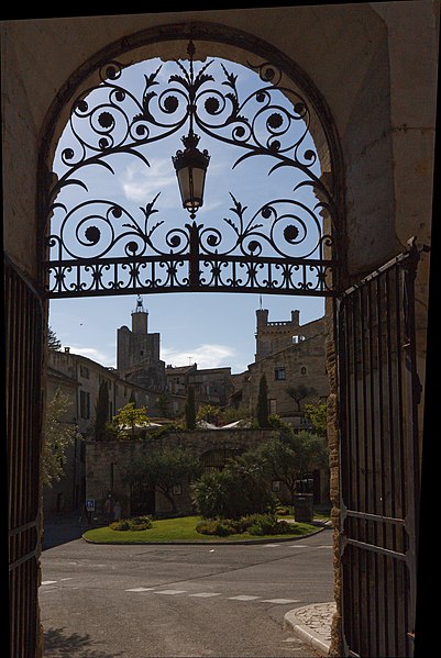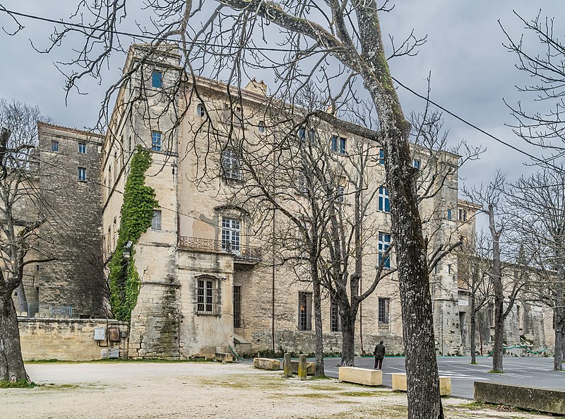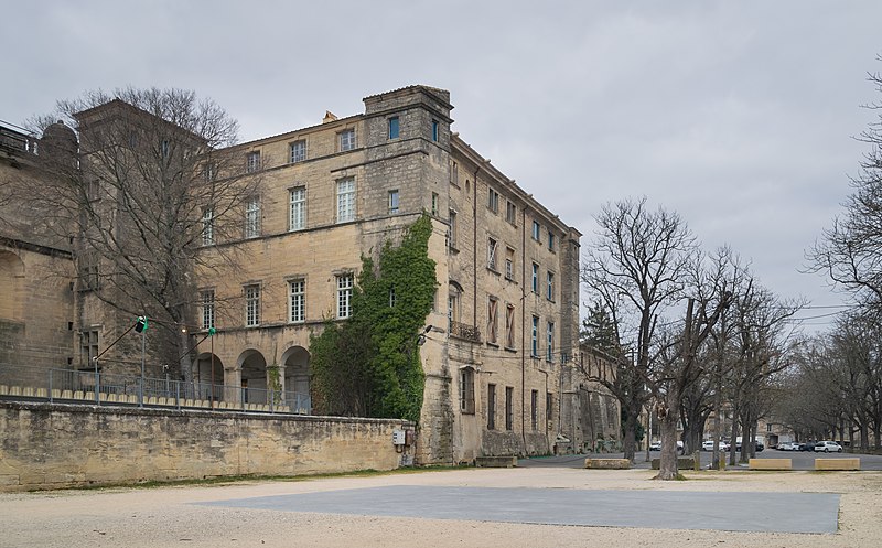 L'ancien évêché, palais épiscopal d'Uzès, se situe place de l'évêché, dans la commune d'Uzès (Gard). Sa reconstruction a été engagée après celle de la cathédrale, sous l'épiscopat de Jacques Adhémar de Monteil de Grignan, à partir de 1662. Elle a commencé par la démolition des vestiges de l'ancien palais, contraint dans un espace étroit entre l'enceinte de la ville et le quartier canonial, et a nécessité l'acquisition de maisons pour dégager une cour d'honneur. Le nouveau palais empiète sur l'enceinte qui a été partiellement détruite pour permettre les travaux. L'édifice a été entièrement bâti entre 1663 et 1674 par les maçons Mathieu Jarquet et Balthazar Petit, sur les plans du sieur Roché (ou Rochié), prieur de la Souche puis de Vénéjan. Les atlantes du balcon sont l'œuvre des sculpteurs Jean et Guillaume Croisé, de Bourg-Saint-Andéol. Les fenêtres, à l'origine à meneaux, ont été supprimées en 1678 à l'arrivée de l'évêque Michel Poncet de La Rivière. Vendu comme bien national pendant la Révolution, le palais a été revendu plusieurs fois et a appartenu au baron de Castille. Le bâtiment a été désaffecté en 1926 après le départ de la sous-préfecture ; lors d'une restauration, le plancher du premier étage du corps central s'est effondré en 1973. Depuis 1978, l'ancien palais accueille en partie le musée Georges Borias, les archives municipales, le tribunal d'instance et des salles d'exposition ; il abrite aussi l'association pour le théâtre populaire et un club de bridge. L'édifice est inscrit au titre des monuments historiques le 23 décembre 1981.