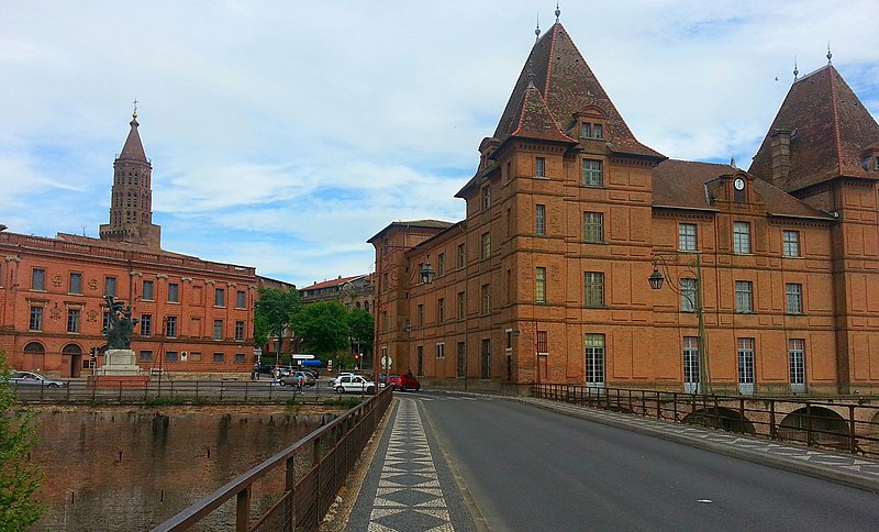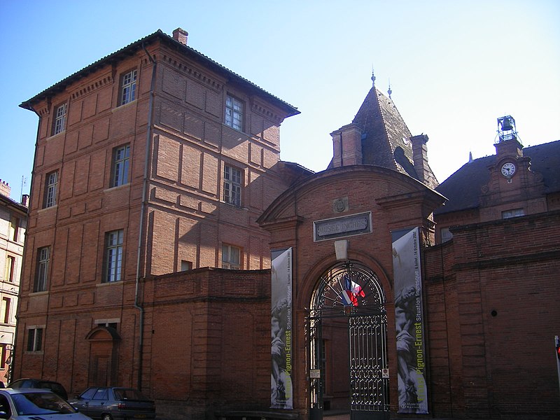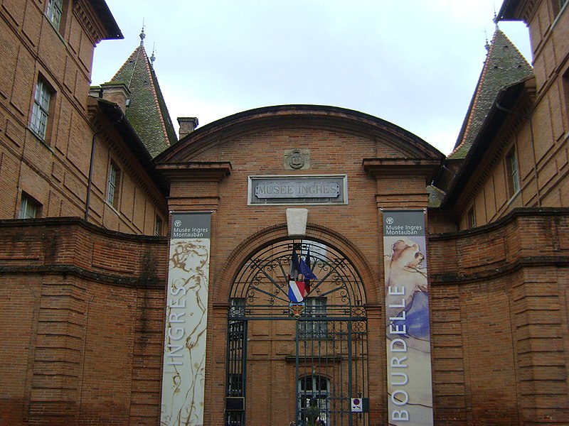 L'ancien palais épiscopal de Montauban, situé 17 rue de l'Hôtel-de-Ville, jouxte le Pont Vieux et repose sur des vestiges de constructions romaines et médiévales. Le site a d'abord constitué la terre allodiale dite Cantaloube, vendue au XIIe siècle à l'abbaye de Montauriol, puis intégrée à la fondation de la ville par le comte de Toulouse en 1144, qui y fit édifier un château comtal et prévoyait la construction d'un pont sur le Tarn. Le château comtal, appelé Castellare, est mentionné au siècle suivant et des vestiges romans subsistent dans les parties basses du site. Au XIVe siècle, sous la domination anglaise, on entreprit un Château-Neuf à l'emplacement du château comtal ; ce bâtiment resta inachevé après la révolte de 1369 et servit pendant longtemps de lieu mal famé. Au fil des XVIe et XVIIe siècles, l'ensemble subit des transformations liées aux guerres de religion, aux occupations et aux travaux de fortification et de démolition décidés après la capitulation de la ville. Au milieu du XVIIe siècle, l'évêque Pierre de Bertier entreprit la construction d'un nouveau palais épiscopal sur les assises du Château-Neuf ; les plans et devis de Bernard de Campmartin datent de 1664 et s'inspirent d'exemples contemporains de la région. L'implantation respecte l'ancienne emprise : un quadrilatère flanqué de quatre pavillons et d'une cour centrale, avec une aile perpendiculaire au bord du Tarn et un grand escalier de pierre desservant les étages et ouvrant sur des salles basses voûtées. La construction se poursuivit dans la seconde moitié du XVIIe siècle ; Pierre de Bertier s'y installe alors que les travaux ne sont pas entièrement achevés, et son successeur Michel Colbert de Saint-Pouange en poursuit l'achèvement, notamment la chapelle et les finitions extérieures. Pendant la Révolution, le palais devint bien national et fut acquis par la commune aux enchères en 1791 pour servir d'hôtel de ville. Au XIXe siècle les collections municipales vinrent s'y installer : donation de 68 tableaux en 1843, puis les dons importants de Jean-Auguste-Dominique Ingres en 1852 et à sa mort en 1867, qui enrichirent notablement les collections. Face à l'accroissement des œuvres, les locaux devinrent insuffisants ; des aménagements pour le musée Ingres commencèrent en 1911. L'ancien palais épiscopal a été classé au titre des monuments historiques le 11 mars 1910.