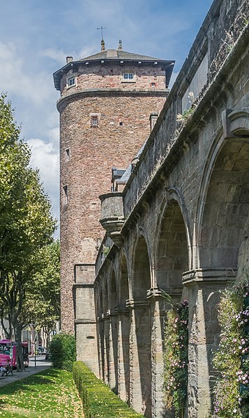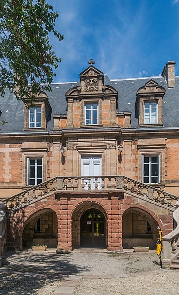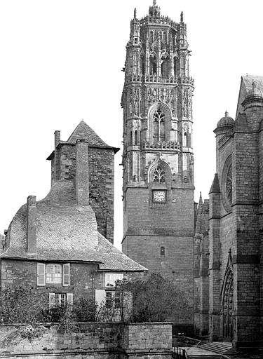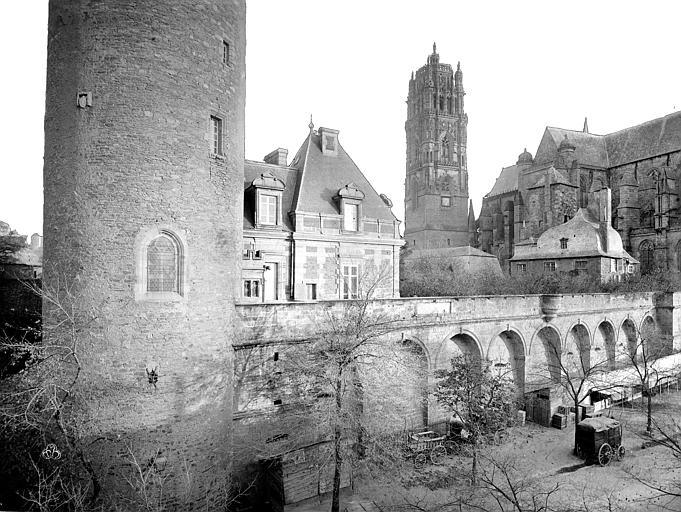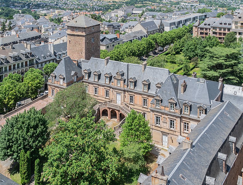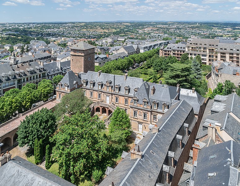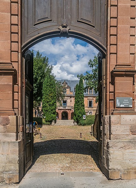 L'ancien évêché de Rodez se situe dans le centre-ville, aux adresses 1 rue Frayssinous, boulevard d'Estourmel et impasse Cambon, dans le département de l'Aveyron. Le palais épiscopal primitif, installé entre le transept de la cathédrale et le rempart médiéval, a été démoli à partir de 1474 pour permettre l'achèvement de la nef. Un nouvel édifice fut alors construit au nord de la cathédrale, adossé au rempart ; des aménagements, dont la tour de Corbières, furent acquis et aménagés au cours du XVe siècle. François d'Estaing fit édifier des appartements et une tour d'accès dite tour de Guet ou tour d'Estaing, destinée à loger ses officiers. En 1589, la population de Rodez, hostile à la décision de l'évêque François de Corneilhan d'ouvrir la ville aux Ligueurs, détruisit une partie du palais ; l'évêque fit par la suite construire une terrasse sur arcade le long du boulevard d'Estourmel. À partir de 1599, François de Corneilhan et ses successeurs entreprirent la construction d'un nouvel évêché en l'éloignant de la cathédrale, mais en 1624 le palais n'était pas encore entièrement reconstruit et l'évêque logeait chez un particulier. Nommé évêque en 1684, Paul-Louis-Philippe de Lezay de Lusignan fit édifier le palais actuel, dont la construction s'acheva en 1694 ; le bâtiment, de style Louis XIII, comporte un escalier dont la composition évoque celle du château de Fontainebleau. Vendu comme bien national, le palais servit de siège à l'administration départementale puis de préfecture ; la tour de Corbières servit notamment de prison pour le chouan Charrier. Rétabli, l'évêché reprit possession des lieux en 1822 et la préfecture s'installa à l'hôtel Le Normant d'Ayssènes. Le cardinal Joseph Bourret fit modifier le palais entre 1871 et 1875, rehaussant le corps central et ajoutant deux pavillons. Le palais épiscopal a fait l'objet d'importants travaux de restauration au XIXe siècle et il est partiellement inscrit au titre des monuments historiques depuis le 12 octobre 1942 ; sont notamment protégés la tour de Corbières et sa terrasse, l'entrée du palais sur la rue Frayssinous, ainsi que le palais et son escalier construits entre 1684 et 1694.