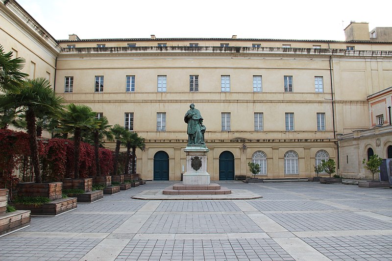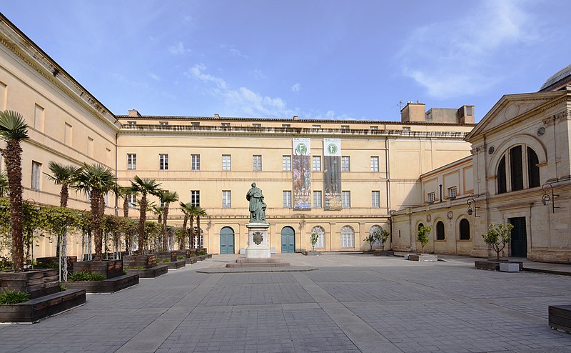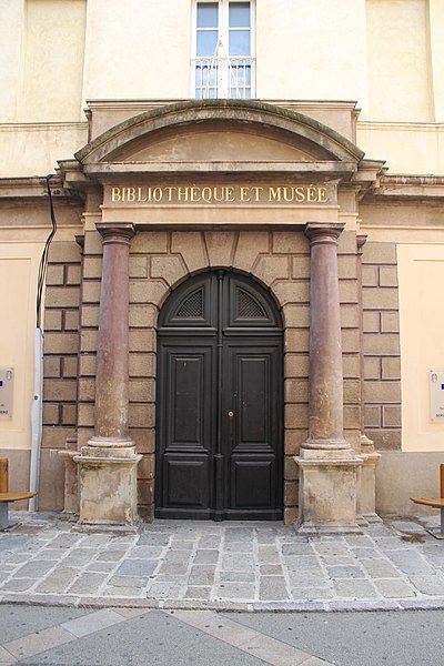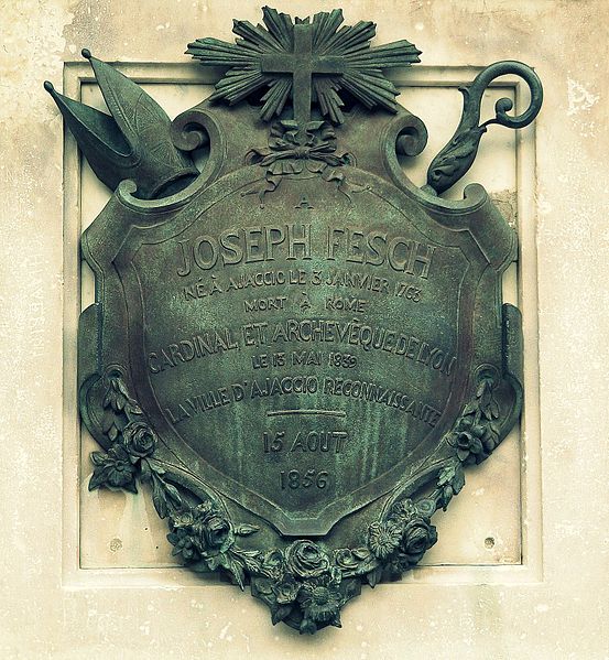 Le palais Fesch, élevé sur ordre du cardinal Fesch à partir de 1827, se compose de trois corps de bâtiments autour d'une cour centrale ; sa construction s'est déroulée par phases, les premières parties étant réalisées jusqu'en 1837 et l'ensemble achevé en 1852. La bibliothèque, aménagée dans l'aile nord, a été inaugurée le 14 mai 1850 ; fondée par Lucien Bonaparte en 1801, elle reçut à l'origine 12 310 ouvrages. Elle comprend trois salles — dont une seule est accessible au public — et se caractérise par un grand volume éclairé par seize baies, typique des bibliothèques du Second Empire, avec boiseries, rayonnages et tables en noyer. Le palais abrite le musée des Beaux-Arts d'Ajaccio, créé grâce au don du cardinal Joseph Fesch, oncle de Napoléon Ier, et situé dans le quartier du Borgu. À sa mort, la collection du cardinal comptait 17 767 œuvres et objets d'art, dont environ 16 000 tableaux ; dès 1806 il avait projeté la création d'un institut d'études artistiques à Ajaccio. Par testament enregistré en 1839, il légua à la ville mille objets d'art, bustes et sculptures — dont 843 tableaux — ainsi que sa bibliothèque, ses manuscrits, une partie de son mobilier et la statue de Napoléon Consul par Maximilien Laboureur ; son neveu Joseph Bonaparte fit modifier ce testament en 1842 pour conserver certaines pièces, en contrepartie d'attributions de tableaux à plusieurs communes corses. La base AGORAH de l'INHA recense début 2022 six cent vingt-cinq œuvres conservées en Corse, principalement à Ajaccio mais aussi à Bastia, Corte, Calvi, Vico, Sartène, Appietto et d'autres communes. Les plans et les premières parties du palais furent l'œuvre de l'architecte Frasseto jusqu'en 1837, puis Jean Caseneuve, l'architecte communal Jérôme Maglioli et Jean Exiga poursuivirent et achevèrent notamment l'aile de la bibliothèque et l'escalier d'honneur. La chapelle palatine, élevée sur le vœu testamentaire du cardinal, fut construite par Alexis Paccard avec la collaboration de Jérôme Maglioli ; elle abrite les sépultures du cardinal Fesch, de Maria Letizia Ramolino et de plusieurs membres de la famille Bonaparte, et fut consacrée en présence de l'empereur Napoléon III et de l'impératrice Eugénie. Dans la cour d'honneur se dresse la statue en bronze du monument au cardinal Fesch par Gabriel-Vital Dubray, et les collections furent enrichies par des legs, notamment celui de Félix Baciocchi qui offrit soixante-quatre peintures. Après la transformation d'une partie du bâtiment en lycée, les collections furent remisées et mal entretenues ; le musée se dégrada et ferma en juin 1979. Des travaux de rénovation et de restauration commencèrent en 1980, aboutissant à la réouverture le 9 juillet 1990, puis une nouvelle campagne de réaménagement menée à partir d'avril 2008 se conclut par une réouverture le 26 juin 2010. Aujourd'hui, le musée occupe près d'une trentaine de salles réparties sur quatre étages, expose environ 400 peintures et abrite une bibliothèque ainsi qu'un auditorium. Réparties sur quatre niveaux et vingt-sept salles, les collections sont remarquables pour une ville de province : le musée conserve 448 tableaux, dont 431 proviennent de la collection Fesch, et constitue, après le musée du Louvre, la deuxième conservation française de peintures italiennes ; la section italienne rassemble environ 486 œuvres du XIVe au XVIIIe siècle. La peinture italienne y est représentée du gothique et de la Renaissance — avec des noms tels que Sandro Botticelli, Giovanni Bellini, Lorenzo di Credi, Cosmé Tura ou Le Pérugin — aux grands maîtres du XVIe siècle comme Titien, Véronèse et Giorgio Vasari, puis aux peintres des XVIIe et XVIIIe siècles tels que Pietro de Cortone, Luca Giordano, Salvator Rosa, Andrea Pozzo, Sebastiano Ricci, Francesco Solimena, Corrado Giaquinto, Giovanni Paolo Pannini et Pompeo Batoni. Le musée présente également des écoles française et du Nord, avec des artistes comme Nicolas Poussin, Simon Vouet, Claude Joseph Vernet, Antoine van Dyck, Nicolaes Berchem ou Adam Elsheimer, ainsi qu'une importante section d'art corse des XIXe et XXe siècles illustrée par près d'un millier d'œuvres graphiques et picturales d'auteurs locaux. Une partie spécifique est enfin consacrée à la collection napoléonienne, qui regroupe environ 700 pièces — peintures, sculptures et objets d'art — comprenant des œuvres d'artistes tels qu'Antonio Canova, Lorenzo Bartolini, François-Joseph Bosio, Jean-Baptiste Carpeaux, Baron Gérard, Anne-Louis Girodet ou Alexandre Cabanel.