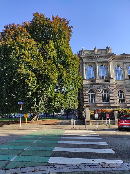 Le palais eut vocation collégiale et accueillit des disciplines ne nécessitant pas d’institut propre, comme l’histoire, la théologie, le droit et les mathématiques. Du 10 août au 8 septembre 1949, son aula reçut la première session du Conseil de l’Europe, réunissant 101 délégués de douze États. Le 21 mai 1990, le hall d’entrée, l’aula, les escaliers principaux et les galeries avec leurs décors d’origine furent classés au titre des Monuments historiques ; les façades extérieures et leurs décors sculptés firent l’objet d’une inscription.