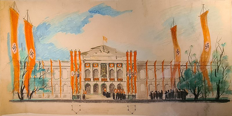 À l’occasion du 50e anniversaire du Traité de l’Élysée, l’Université de Strasbourg a replacé sur le fronton les statues de Germania et d’Argentina, disparues respectivement en 1920 et après 1940 ; ces figures, hautes de 2,5 mètres et taillées dans 3,5 tonnes de calcaire de Bourgogne, ont été reconstituées par le sculpteur Patrick Berthaud d’après une ancienne photographie et achevées fin 2013.