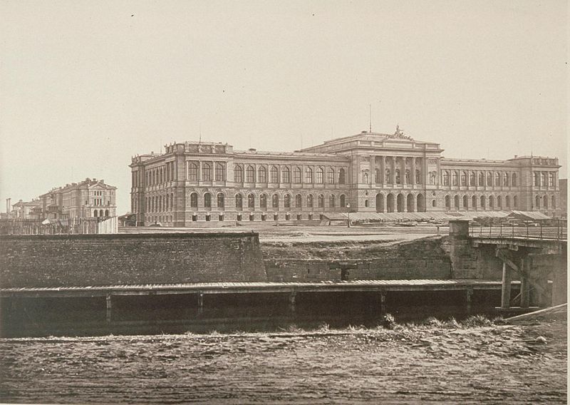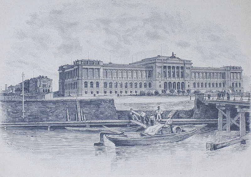 Un premier projet de Hermann Eggert ne convainquit pas pour la façade ; un concours réunit cent un architectes, dont seulement sept Alsaciens. Otto Warth remporta le concours avec un projet néo‑Renaissance d’inspiration italienne et dirigea les travaux jusqu’à leur achèvement. Autour du palais furent édifiés de nombreux instituts et facultés, le jardin botanique prit place à l’arrière et un observatoire compléta le complexe. Le bâtiment, financé pour 2 500 000 Marks, fut inauguré le 27 octobre 1884.