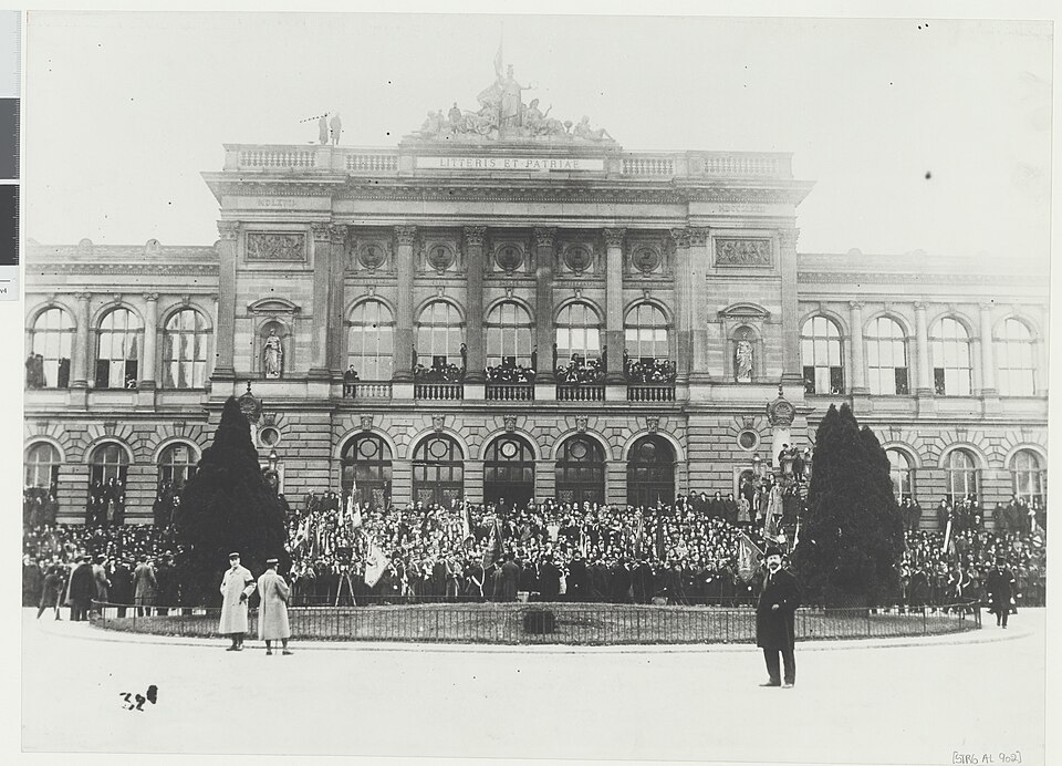 Le palais universitaire de Strasbourg, familièrement appelé « palais U », est un bâtiment de style néo‑Renaissance conçu par Otto Warth et construit entre 1879 et 1884 ; il a été inauguré en 1884 par l’empereur Guillaume Ier. Il a constitué le pôle majeur de la nouvelle université strasbourgeoise établie après l’annexion de l’Alsace‑Lorraine à l’Empire allemand, remplaçant l’université issue du Gymnase Jean‑Sturm (1538).