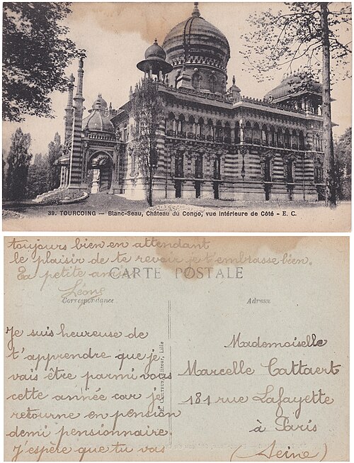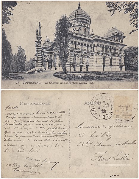 Victor Vaissier, fabricant de savon né à Roubaix en 1851 et se présentant comme « prince du Congo », souhaitait une demeure à la hauteur de ses ambitions. Ne supportant plus les murs noircis de son usine de la rue de Mouvaux, il fit appel à l'architecte Dupire-Rozan pour édifier un château somptueux d'inspiration orientale, surmonté d'un grand dôme de vitraux colorés. Le bâtiment, souvent appelé Palais Vaissier ou Palais du Congo, fut érigé en 1892 sur un parc de cinq hectares s'étendant de la rue de Mouvaux à l'avenue Grau et de la rue du Congo jusqu'au canal. L'édifice évoquait le Taj Mahal et intégrait de nombreuses références à l'art indien. Il disposait de sa propre usine d'électricité, qui permettait d'illuminer la nuit son dôme de verre haut de 35 mètres, soutenu par une structure métallique réalisée par André Michelin, alors ferronnier industriel. Pendant la Première Guerre mondiale, le château abrita l'état-major allemand. À la mort de Vaissier en 1923, sa famille proposa de vendre le domaine à la ville de Tourcoing, qui refusa. En 1925, M. Deconynck, entrepreneur de spectacles, racheta la propriété mais aucun de ses projets ne fut réalisé. Le château fut démoli en 1929 ; la propriété fut divisée entre associés, lotie et vendue en terrains à bâtir. L'écrivain Maxence Van der Meersch s'installa ensuite dans une maison construite sur les ruines du château, le long du canal au 7 quai des Alliés. Les façades et les toitures, ainsi que les grilles des pavillons d'entrée subsistants, ont été inscrites au titre des monuments historiques le 19 février 1988. L'histoire de l'édifice a été retracée par Gilles Maury dans un ouvrage paru en 2013 ; une exposition permanente lui est consacrée au musée de la piscine de Roubaix et, en 2015, une reconstitution en carton a été tentée lors du festival Pile au Rendez-vous.
