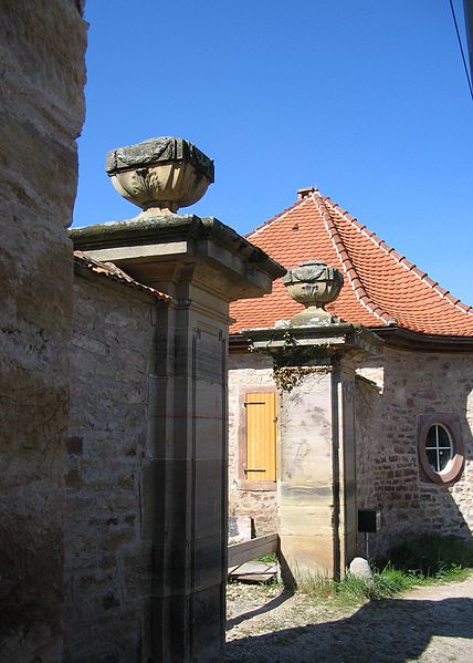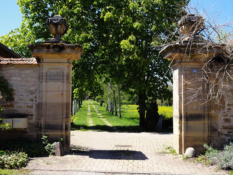Pavillons d'entrée (façades et toitures). Maison d'habitation du directeur (façades et toitures, à l'exception de l'escalier postérieur) ; mur de clôture de la cour et escalier latéral ; à l'intérieur au rez-de-chaussée : boiseries du salon et de la chambre avec alcôve, escalier principal ; au premier étage : grand salon central avec ses boiseries et ses peintures panoramiques. Bâtiment d'habitation et pigeonnier au Sud de la propriété (façades et toitures). Ancienne papeterie et ancien moulin de part et d'autre de la Mossig (façades et toitures). Bâtiment d'exploitation avec sa cheminée de briques et bâtiment administratif au Nord de la propriété (façades et toitures). Une briqueterie-tuilerie au Nord-Est de la propriété (façades et toitures). Four en zig-zag dans la briqueterie-tuilerie ruinée, au Nord-Est de la propriété. Four à chaux au Nord-Ouest de la propriété (façades et toitures). Jardin dans l'îlot central, avec les éléments suivants : fontaine, bancs, arceaux de roseraie, statue de nymphe. Au Nord de la maison du directeur : deux vases en pierre et un banc semi-circulaire. Au Sud de la maison du directeur : un socle de cadran solaire daté 1716, une vasque godronnée et une fontaine. Jardin Sud avec sa clôture en briques, bancs de pierre et fontaine (cad. 15 23) : inscription par arrêté du 20 décembre 1988