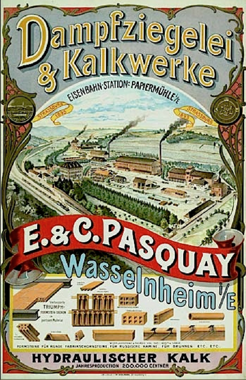 Le site de l’ancienne papeterie Pasquay, à Wasselonne (Bas-Rhin), a été aménagé par Benjamin Bury au début du XVIIIe siècle et a rapidement accueilli une papeterie exploitant la force motrice de la Mossig. Par mariage, la propriété passa au cours du XVIIIe siècle à la famille Pasquay, qui diversifia les activités industrielles sur le domaine : moulins à farine et à huile, moulin à tabac, fabrication de papiers et de papiers peints, production d’indiennes, filature et autres ateliers. Vers 1740 Charles Pasquay hérita du moulin créé par les Bury et y ajouta un moulin à tabac ; vers 1770 son fils fit bâtir la maison de maître et développa une fabrique de papier peint, une fabrique d’indiennes et un moulin à garance. Au début du XIXe siècle apparut une blanchisserie de toiles, puis, à partir des années 1820–1830, l’activité évolua vers la production de briques et tuiles, une filature de laine, une fabrique de chaux et, en 1861, une usine de tissus calorifuges destinée à isoler les tuyaux de vapeur. Une société fut constituée en 1856 pour exploiter la filature nouvellement reconstruite, mais un incendie en 1881 mit fin à l’activité textile sur une partie du site. La production de calorifuges connut son apogée au début du XXe siècle jusqu’aux environs de 1920 ; ensuite ne subsistèrent que la tuilerie-briqueterie et l’usine à chaux, jusqu’à la fermeture générale de l’usine en 1954.