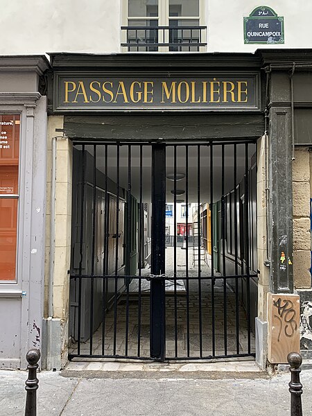 Ouvert vers 1791, le passage Molière a été inscrit au titre des monuments historiques en 1984. Propriété du bailleur social Paris Habitat, il a fait l'objet d'une rénovation lourde entre 2017 et 2022 visant à « créer un lieu attractif ouvert sur le quartier » ; le lieu accueille désormais 34 logements sociaux et neuf commerces, dont la Maison de la Poésie, qui a ouvert en 2022 son restaurant, Le Café de la Poésie. En 2024, plusieurs commerces ont cependant déclaré des difficultés et l'un d'eux a fermé.