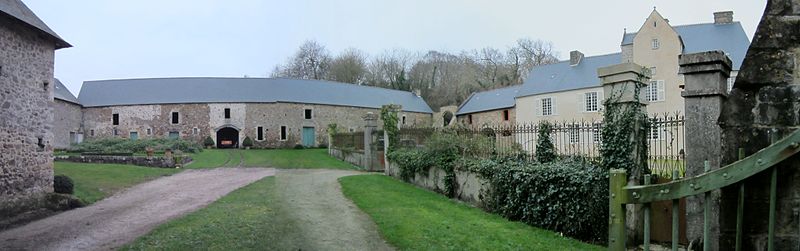 Le pavillon de Grenneville, situé sur la commune de Crasville (Manche, Normandie), se trouve à 250 mètres au nord-est et en contrebas de l'église Notre-Dame de Grenneville. Il a été édifié à la fin du XVe siècle ou au début du XVIe siècle ; son escalier à vis témoigne de cette période. Des modifications ont été apportées au début du XVIIe siècle, notamment la cheminée, puis d'autres remaniements ont eu lieu au XVIIIe siècle. La tour et la partie gauche du logis auraient été construites au XVe siècle par Guillaume Murdrac (Meurdrac), qui est signalé en 1463 comme résidant au manoir et marié à Robinette de Grimouville. Nicolas de Murdrac, époux de Madeleine Kadot (ou Cadot), serait le constructeur de la partie droite ; leurs armes figurent sur le manteau d'une cheminée. En 1710, Madeleine obtint l'autorisation d'y faire bâtir une chapelle aujourd'hui disparue. Le dernier Meurdac seigneur de Grenneville mentionné est Félix, tué à la guerre en 1760 ; en 1763, Marie-Françoise Murdrac épousa le marquis Pierre-Raymond de Pierrepont. Daté globalement du XVIe siècle, le manoir présente des ouvertures plus récentes et un pavillon en avancé. Une double porte ornée donne accès au logis et une autre arcade s'ouvre côté campagne. Situé à 25 mètres d'altitude, il offre depuis sa cour d'honneur une vue sur la mer. La cour, entourée de communs, a conservé deux portes charretières. L'édifice est partiellement inscrit au titre des monuments historiques par arrêté du 26 octobre 1994 : sont inscrits les façades et toitures du logis, son escalier à vis, la cheminée en granit du rez-de-chaussée, les ruines du colombier et les portes charretières.