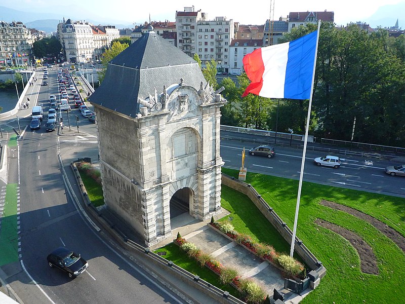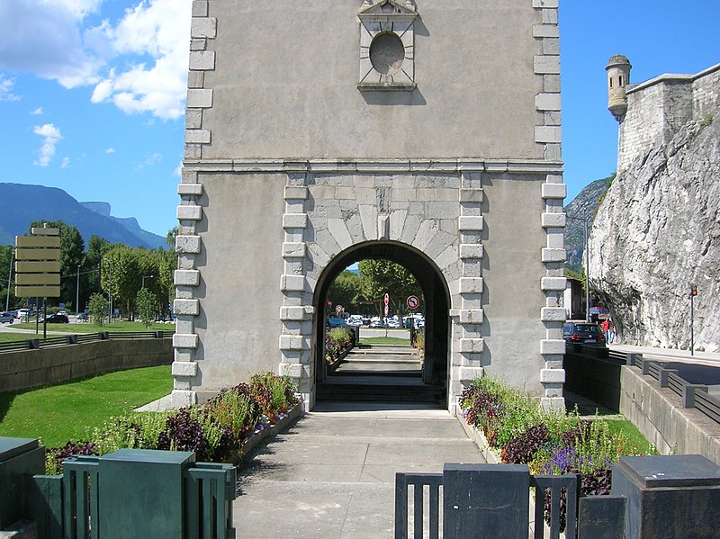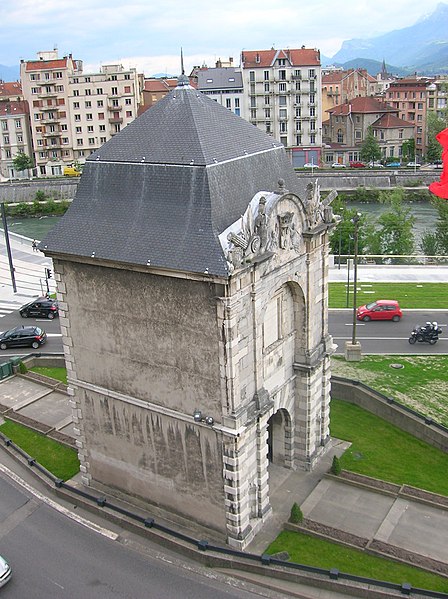 La Porte de France est une porte de ville située à l'entrée ouest de Grenoble, à proximité immédiate de l'Esplanade, à l'angle du quai de France et de la route de Lyon, près du parking de l'Esplanade. Elle succède à la porte Perrière, construite en 1533, et a été érigée en 1620 lors de la fortification de la colline de la Bastille par le duc de Lesdiguières. Le roi Louis XIII est passé sous cette porte à plusieurs reprises entre 1622 et 1630. Sa fonction défensive a pris fin en 1880, avec la construction de la dernière enceinte fermant la partie nord de la ville, limitrophe du village de Saint-Martin-le-Vinoux. La façade extérieure est ornée de bas-reliefs représentant des trophées militaires, réalisés par Jacob Richier, sculpteur favori de Lesdiguières. La porte est classée au titre des monuments historiques depuis le 18 septembre 1925. Elle est officiellement le monument aux morts de la ville depuis 1935 pour la période 1914–1926, le monument totalisant 1 722 noms ; il a été rénové dans les années 1970. Une ancienne carrière voisine a fourni les pierres calcaires à patine blanche, de teinte plutôt sombre, utilisées pour sa construction ; cette carrière a été exploitée depuis l'époque gallo-romaine et a également approvisionné d'autres édifices grenoblois, comme la cathédrale Notre-Dame de Grenoble. L'autoroute A48 achève son parcours à quelques mètres de la Porte de France depuis 1968. La Porte de France a été dessinée en 1802 par William Turner dans son Grenoble Sketchbook ; ce dessin entre aujourd'hui dans les collections de la Tate Britain. On trouve des références à la porte dans les listes et ressources consacrées aux monuments historiques de Grenoble et de l'Isère ainsi qu'aux monuments aux morts protégés.