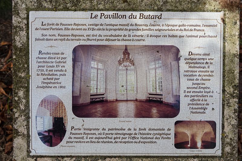 Le pavillon du Butard est un ancien rendez‑vous de chasse situé dans la forêt domaniale de Fausses‑Reposes, à La Celle‑Saint‑Cloud (Yvelines, Île‑de‑France). Construit pour Louis XV dans les années 1750 par l'architecte Ange‑Jacques Gabriel, il faisait partie d'une série de pavillons de chasse réalisés pour le roi. À partir de 1752, des dépendances furent ajoutées, notamment une laiterie, une vacherie, une écurie et un pavillon de garde. Le pavillon accueillit également Louis XVI lors de parties de chasse. Saisi pendant la Révolution, il fut vendu à François‑Nicolas Périgon puis acquis par Joséphine de Beauharnais avant de revenir à l'État lors de leur divorce. Peu utilisé sous la Restauration, il retrouva l'attention sous le Second Empire lorsque l'architecte Charles‑Auguste Questel, en 1860, supprima la plupart des dépendances et construisit un deuxième logement de garde sur le modèle du premier. Durant la guerre de 1870, occupé par les troupes prussiennes, le pavillon fut saccagé et ses boiseries brûlées. Après la Commune, la gestion revint à l'administration des Eaux et Forêts puis à l'Office national des forêts, et le bâtiment connut une longue période d'abandon avant d'être de nouveau loué à partir des années 1900. Diverses personnalités se succédèrent comme locataires : Edmond Blanc, Paul Poiret qui y entreprit d'importants travaux et organisa fêtes et concerts entre 1911 et 1917, puis Maurice Métayer. En 1933 la société du Vieux Marly y installa un musée, mais l'édifice fut endommagé par l'explosion d'une bombe dans la nuit du 16 juin 1944. Après la Libération, le pavillon servit de refuge à certaines personnalités et fut mis à la disposition des présidents de l'Assemblée nationale ; il fut également impliqué dans l'affaire dite « des ballets roses » en 1959. L'État resta propriétaire ; en 2015 la SPPEF a contesté un décret de cession visant la vente du pavillon et de deux maisons forestières, et en 2019 le Centre des monuments nationaux s'est montré intéressé. L'accès se fait par le chemin du Butard via l'avenue des Puits (RD 173), qui marque la limite communale avec Vaucresson. Architectoniquement, le pavillon présente une façade sobre : un perron mène à une porte vitrée surmontée d'un fronton triangulaire sculpté en haut‑relief représentant la chasse au sanglier, motif rare parmi ces pavillons, tandis que des portes latérales sont ornées de têtes de cerf en médaillon. Un ancien portail encadré de pilastres conduisait à une cour pavée ; à droite, un escalier extérieur dessert l'entresol et les caves. À l'intérieur, le vestibule conserve un sol en carreaux damiers noir et blanc et ses proportions anciennes, sauf l'ouverture d'une porte de service percée en 1860. À gauche du vestibule, le cabinet de chaise, équipé d'un parquet, d'une table d'écriture et de fauteuils, comportait une chaise d'aisances en palissandre et fut transformé en cuisine lors des travaux de 1860 ; à droite, le réchauffoir, simple et carrelé, servait à réchauffer les mets et devint un petit salon à la même époque. Le salon principal est une pièce circulaire au parquet en point de Hongrie, dotée de fenêtres alternant avec des portes, d'une cheminée et d'un plafond bleu orné d'une frise d'amours ; ses balcons offrent une vue dégagée sur les bois. L'entresol comprend une suite de trois pièces basses de plafond éclairées par des fenêtres rasantes, dont deux portent aujourd'hui les noms de Salon vert et Salon fleuri. Le pavillon a été classé au titre des monuments historiques dans son ensemble par arrêté du 29 août 1927, et certaines parties intérieures ont fait l'objet d'un classement le 24 mai 2024.