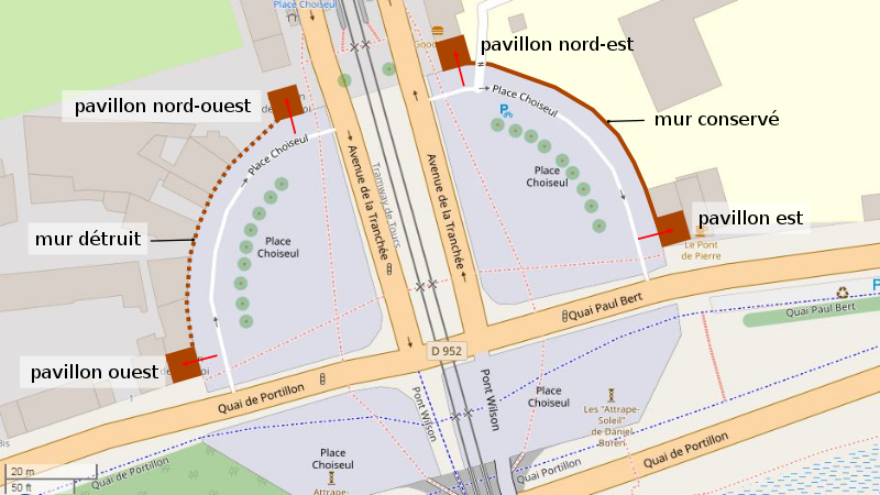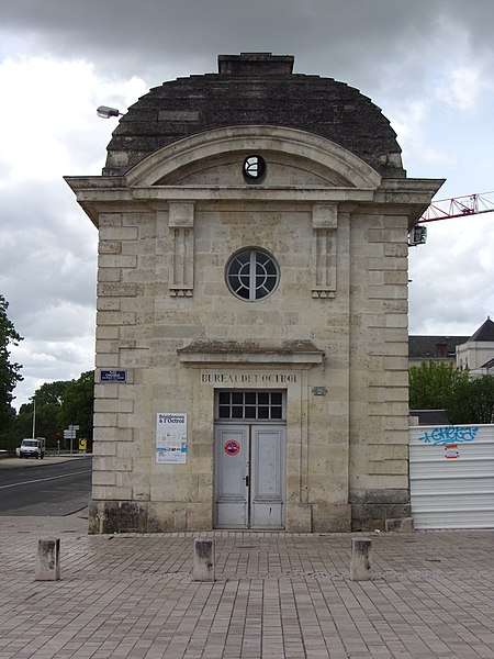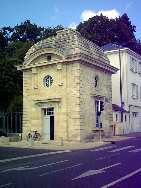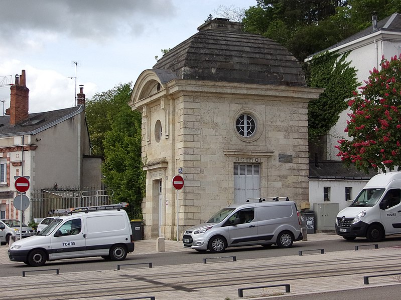 Les pavillons d'octroi sont quatre édicules en pierre de taille (tuffeau) situés en bord de Loire, place Choiseul à Tours. Ils ont été construits en 1779 d'après des plans de Mathieu Bayeux lors de l'aménagement de la place, consécutif à la percée de la nouvelle voie nord‑sud et à l'achèvement du pont Wilson, et figurent sur un dessin de 1781. De plan carré, ils présentent un rez‑de‑chaussée et un étage coiffés d'un dôme et reflètent le style Louis XVI, inspiré des réalisations d'Ange‑Jacques Gabriel. La pierre constitue l'unique matériau des murs et du dôme. Côté intérieur de la place, chaque pavillon est percé d'une porte au rez‑de‑chaussée ; un fronton courbe, soutenu par des pilastres, marque la base du dôme, deux oculus au‑dessus des baies du rez‑de‑chaussée éclairent l'étage et une fenêtre s'ouvre vers l'ancienne grille d'octroi. La place Choiseul, de plan semi‑circulaire, comportait originellement ces quatre pavillons reliés deux à deux par des murs en arc de cercle formant l'arrière de la place, dispositif qui permettait des points de contrôle au nord et en bordure de Loire. Un des murs fut détruit avant 1914 ; seul subsiste le mur oriental, qui constitue aujourd'hui la limite de propriété d'un établissement scolaire. Les pavillons formaient la barrière de la Tranchée, pourvue de trois accès à la limite nord de la commune : deux d'entre eux sont disposés de part et d'autre de l'avenue de la Tranchée, l'occidental longe le quai de Portillon et l'oriental le quai Paul‑Bert. Conçus pour percevoir l'octroi aux portes nord de la ville, ils furent désaffectés en 1930 lors de la suppression de cet impôt à Tours. Les quatre bâtiments appartiennent à la ville ; ils ont été classés monuments historiques par arrêté du 12 avril 1951, après l'annulation d'une précédente inscription du 29 décembre 1927, et ont fait l'objet d'une restauration en 2000. Après cette restauration, le pavillon nord‑ouest accueille le siège d'une association culturelle et le pavillon nord‑est a été transformé en galerie d'art, tandis que les autres pavillons conservent leur vocation patrimoniale. Avant la construction de ces édicules en pierre, les bureaux d'octroi à Tours avaient d'abord été de simples cabanes en bois, puis reconstruits en maçonnerie avec une architecture différente de celle de la barrière de la Tranchée.