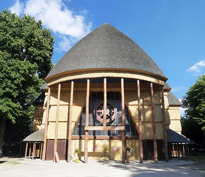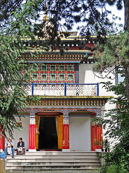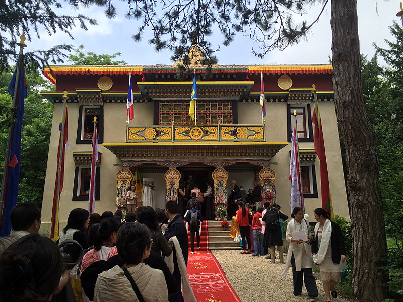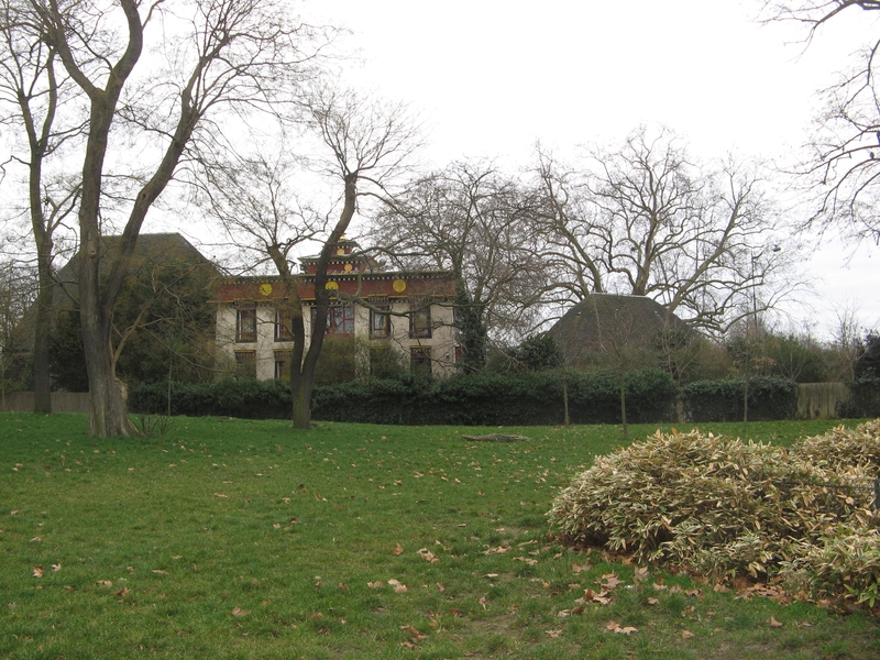 L'ancien pavillon du Togo et du Cameroun, à charpente en bois, a été construit en 1930 par Louis-Hippolyte Boileau et Charles Carrière pour accueillir les représentations du Togo et du Cameroun lors de l'Exposition coloniale internationale de 1931. Affecté au Musée du Bois en 1933, il abrita jusqu'en 1971 les collections des industries du bois de la ville de Paris. Restauré et transformé en pagode destinée à l'exercice du culte bouddhique en 1975, il fut investi par l'Institut international bouddhique, association fondée en 1969 par Jean Sainteny. Ancien résistant et Commissaire de la République pour le Protectorat français du Tonkin en 1945, Jean Sainteny souhaitait créer en France un centre cultuel bouddhique interconfessionnel, ouvert aux visiteurs comme aux pratiquants et tourné vers la promotion de la culture extrême-orientale. Malgré des difficultés financières, l'association permit la création de la Pagode de Vincennes, inaugurée le 28 octobre 1977 par Jacques Chirac; les statues « Unsui Gunzo » y furent officiellement remises par le comité japonais de soutien à l'Institut international bouddhique. Après un enseignement de Kalou Rinpoché en 1980, une rencontre entre celui-ci et Jean Ober, secrétaire général de l'Institut, aboutit au projet puis à la construction du temple tibétain Kagyu-Dzong, édifié en 1985. L'Institut s'auto-dissout en 2003 et la pagode du bois de Vincennes est alors reprise par l'Union bouddhiste de France.