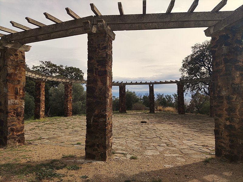 La pergola ronde du Pateck et l'escalier fleuri font partie de l'ensemble paysager du Rayol. Il s'agit d'un escalier public conçu par un architecte non encore identifié et réalisé en 1925 lors de la création du lotissement qu'il dessert, offrant un accès à la plage. Les marches sont bordées de murs bas en schiste du massif des Maures et ponctuées de vases en terre cuite, qui leur valent l'appellation d'"escaliers fleuris". L'ensemble comporte également une pergola en béton armé, portée sur des colonnes en pierre. Pergola et escalier ont été construits au même moment que le lotissement du Rayol en 1925. Ces aménagements s'insèrent dans le Domaine du Rayol — Le Jardin des Méditerranées, jardin paysager situé sur la corniche des Maures, face aux îles d'Hyères, sur la commune du Rayol-Canadel-sur-Mer, dans le Var. Le domaine présente des essences représentatives du biome méditerranéen mondial. L'histoire du site commence au début du XXe siècle avec l'acquisition de terrains et la création d'un jardin d'agrément par Alfred-Théodore Courmes et son épouse, dont le jardin s'articulait autour d'une pergola monumentale. Le domaine a ensuite été complété par des villas et développé par des propriétaires successifs, avant de connaître une période de délaissement puis d'être acquis et protégé par le Conservatoire du littoral. La réhabilitation du site a été confiée au paysagiste Gilles Clément, qui a redessiné le jardin selon le principe du jardin planétaire et organisé des paysages méditerranéens divers. La pergola et l'escalier constituent des éléments architecturaux et décoratifs notables du parc, par leur matérialité — schiste, terre cuite, béton armé et pierre — et par leur fonction d'accès et d'ornementation au sein du Domaine.